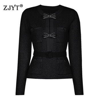 ZJYT Elegant Women’s Woolen Jackets Coats Autumn Winter Fashion Korean Style Casual Blazers Feminino Turn Down Collar Outerwears
