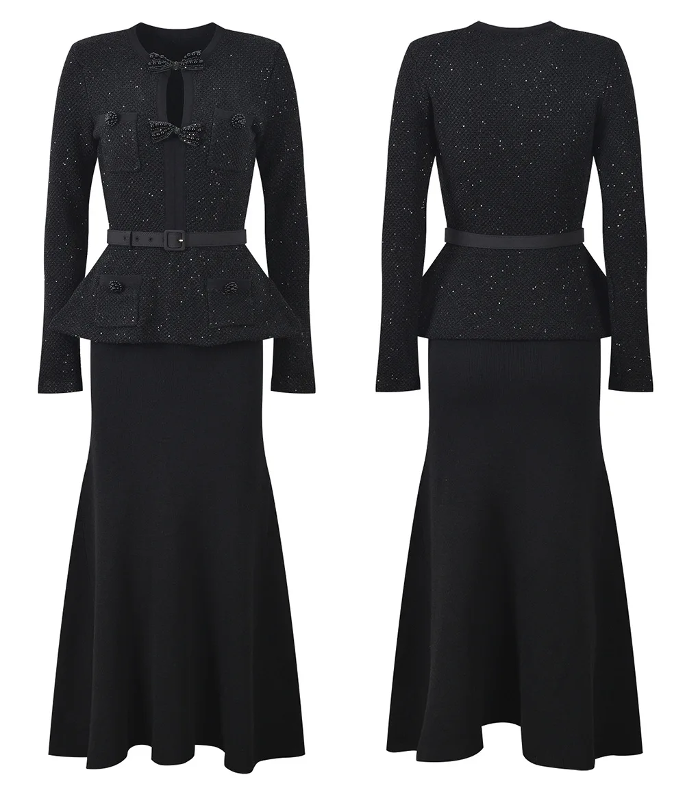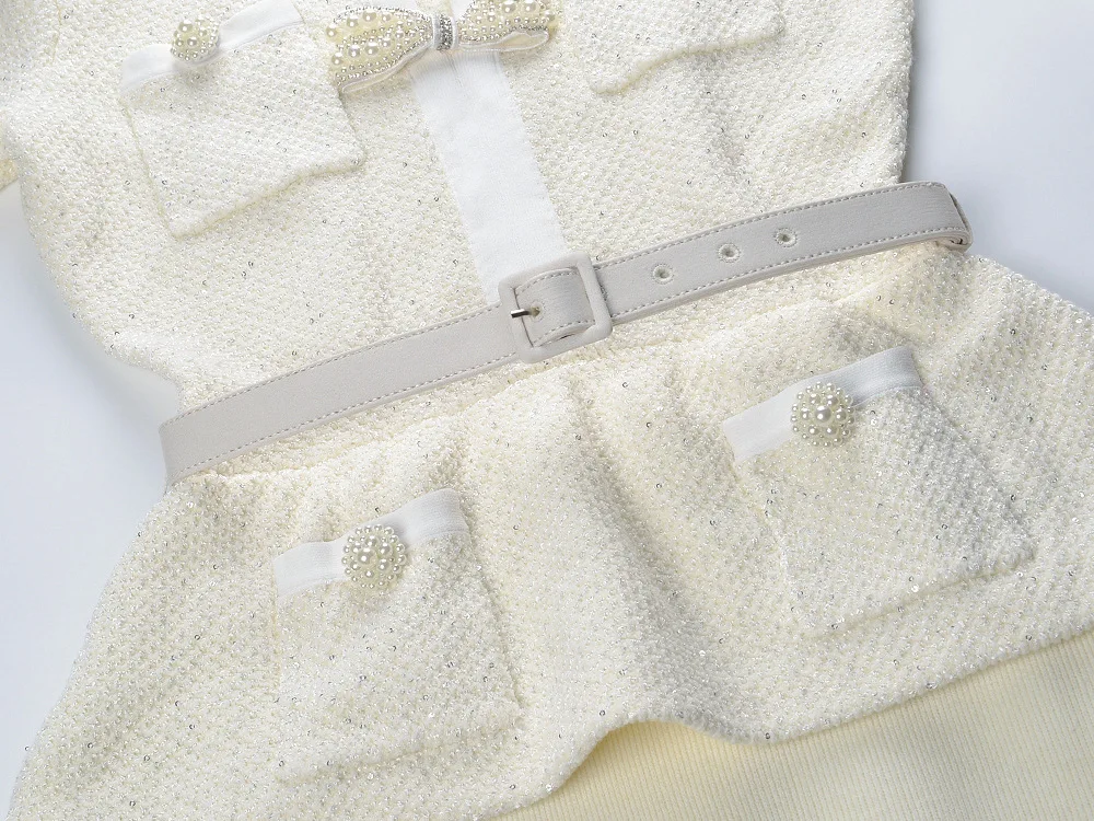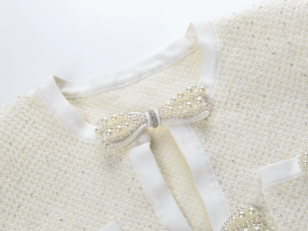 ZJYT Fall Winter Long Sleeve Knitting Sweater Dresses for Women 2026 Elegant Beaded Bowknot Evening Party Dress White Black Robe