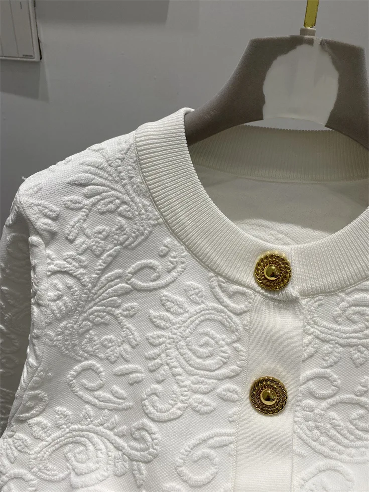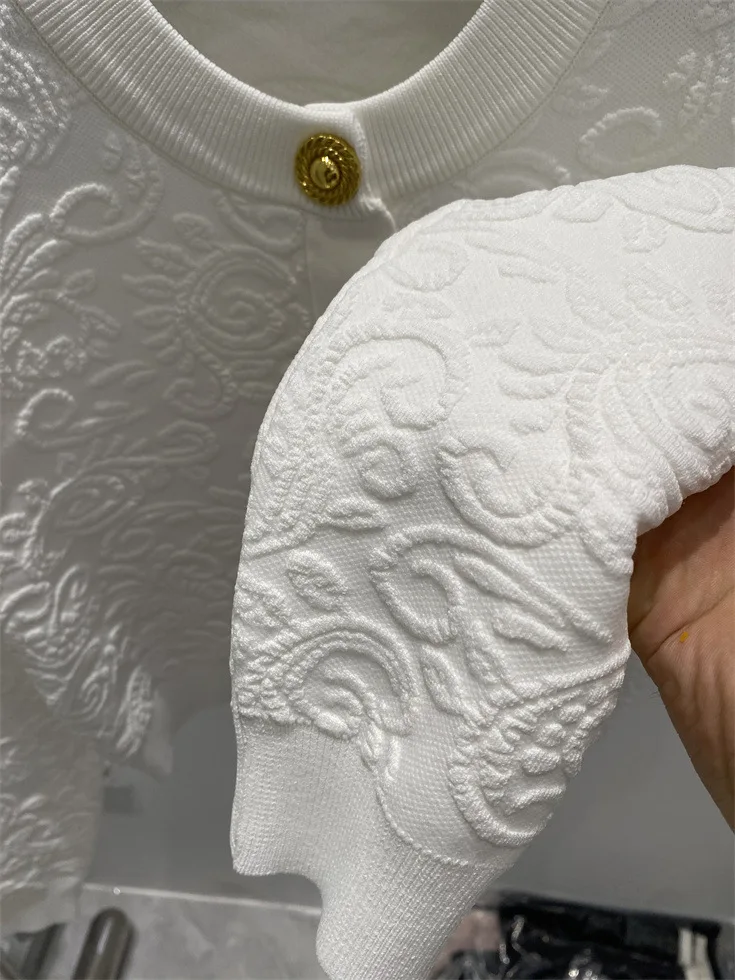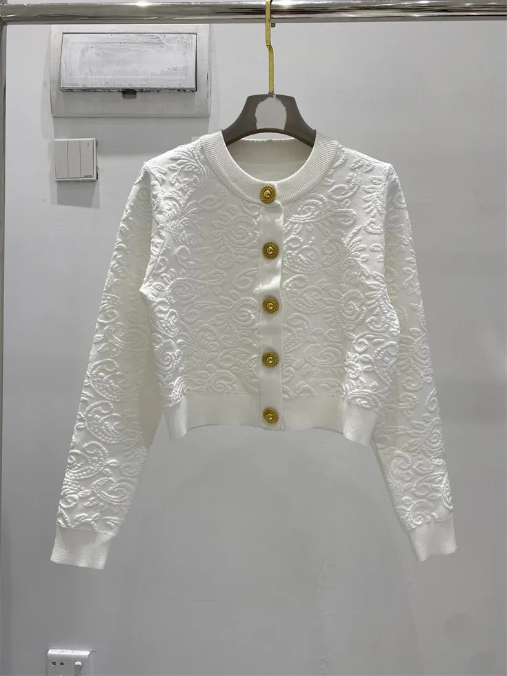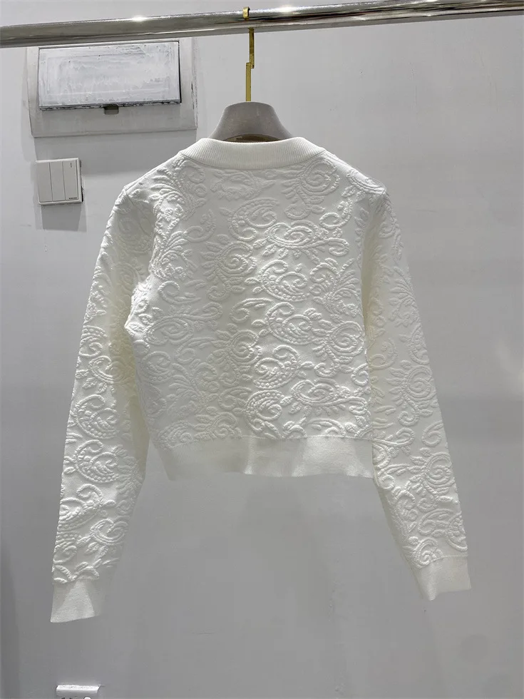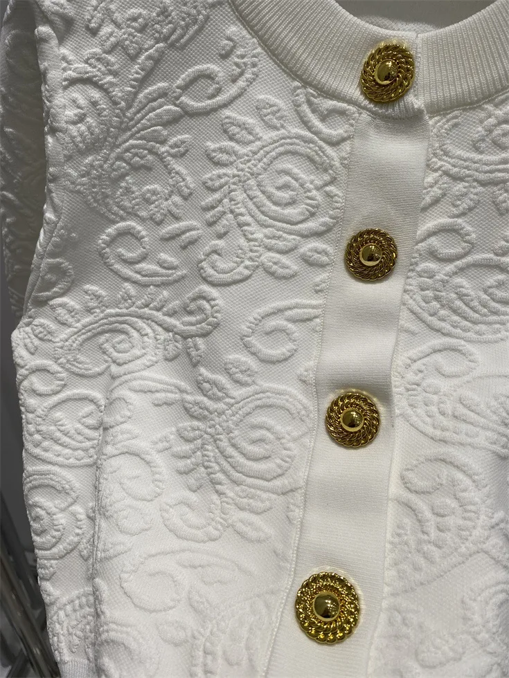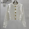 ZJYT Fashion Autumn Winter Women’s Jacquard Knitting Vest Cardigans Sweaters Long Sleeve Elegant Designer White Black Jersey