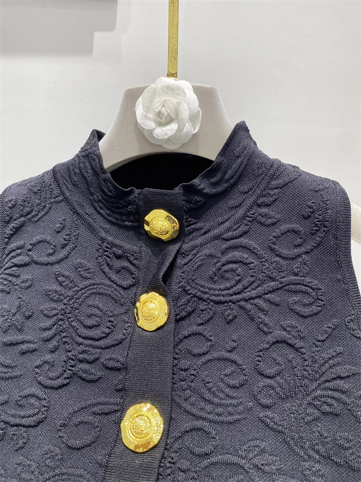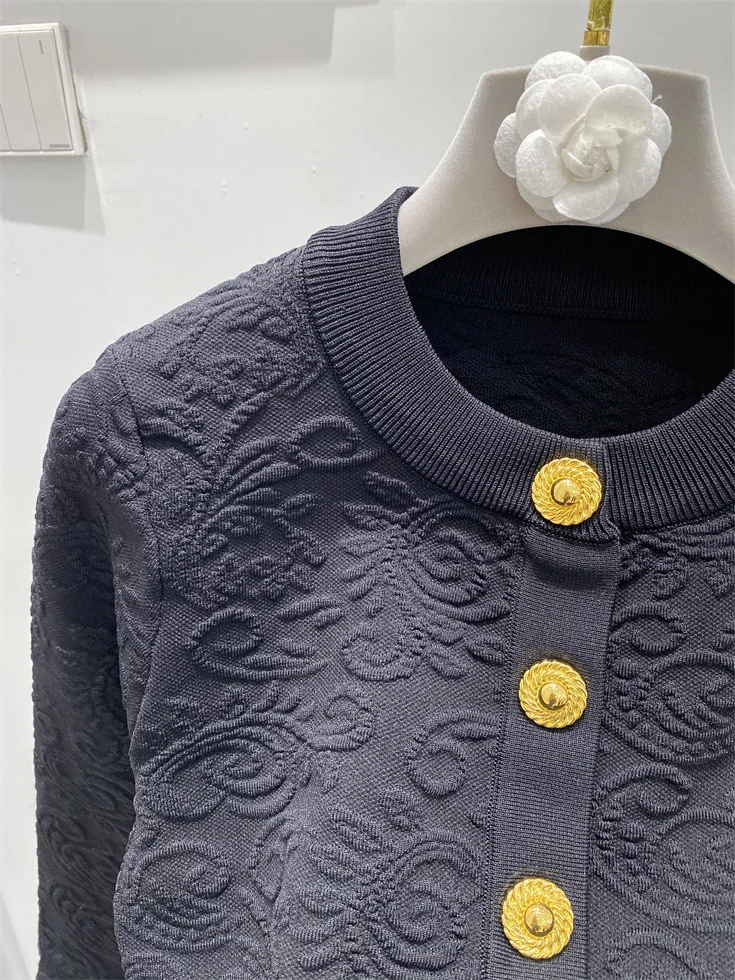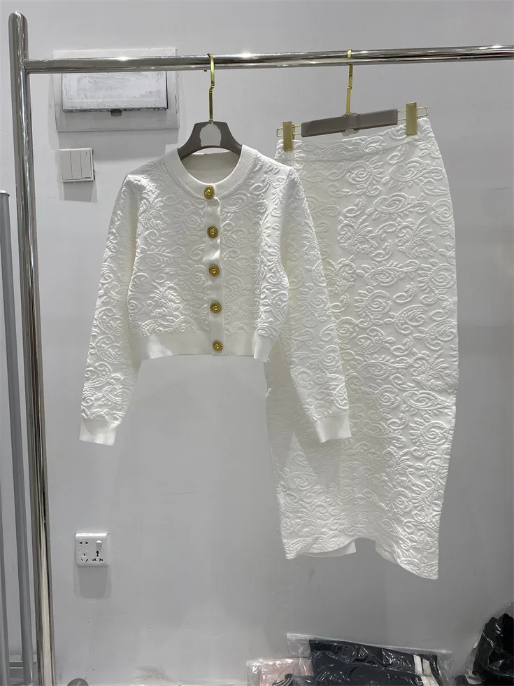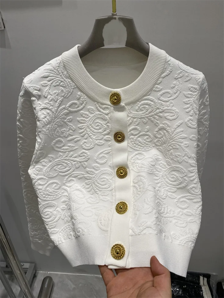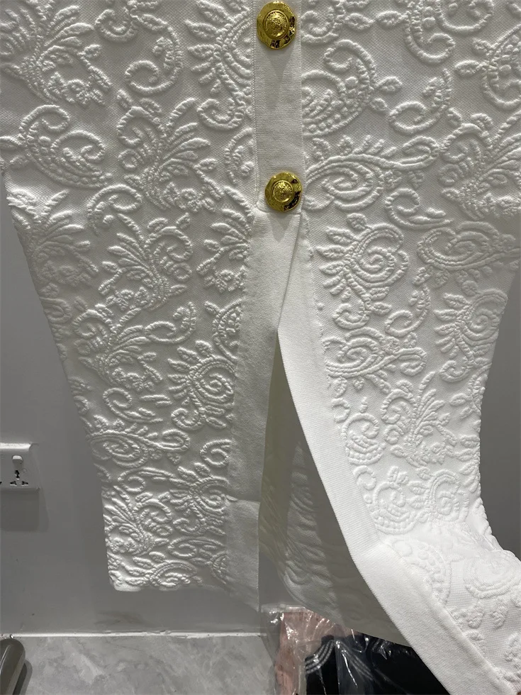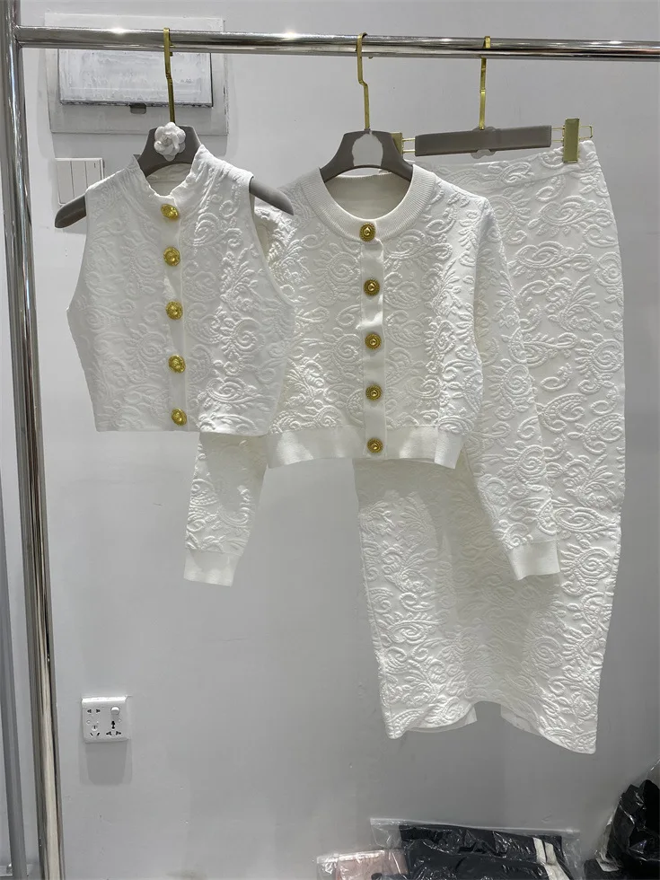 ZJYT Fashion Autumn Winter Women’s Jacquard Knitting Vest Cardigans Sweaters Long Sleeve Elegant Designer White Black Jersey