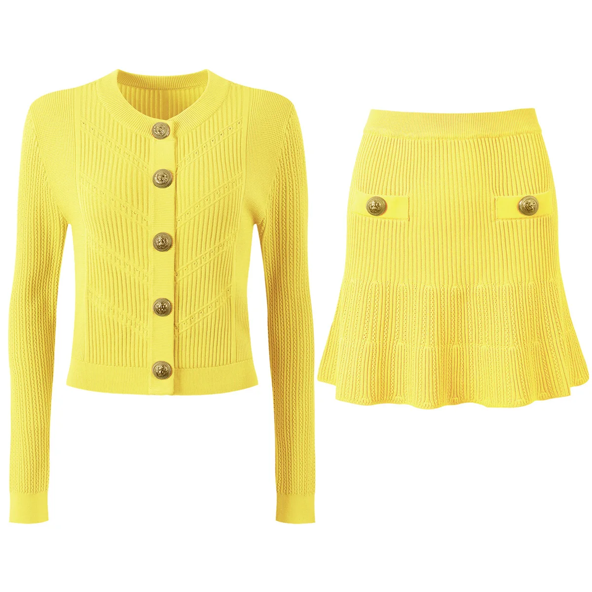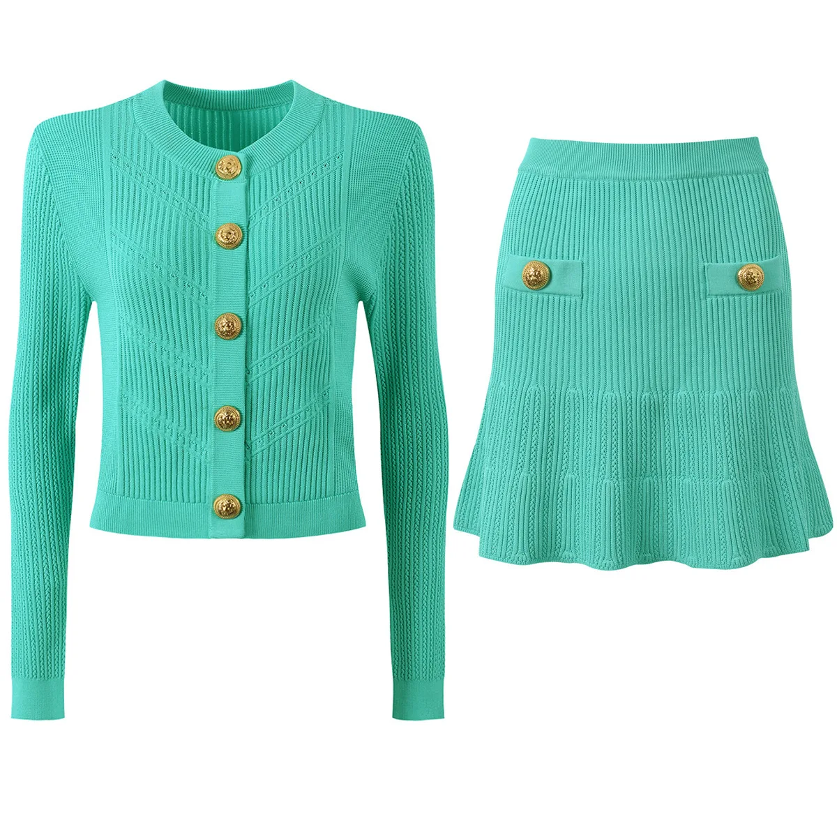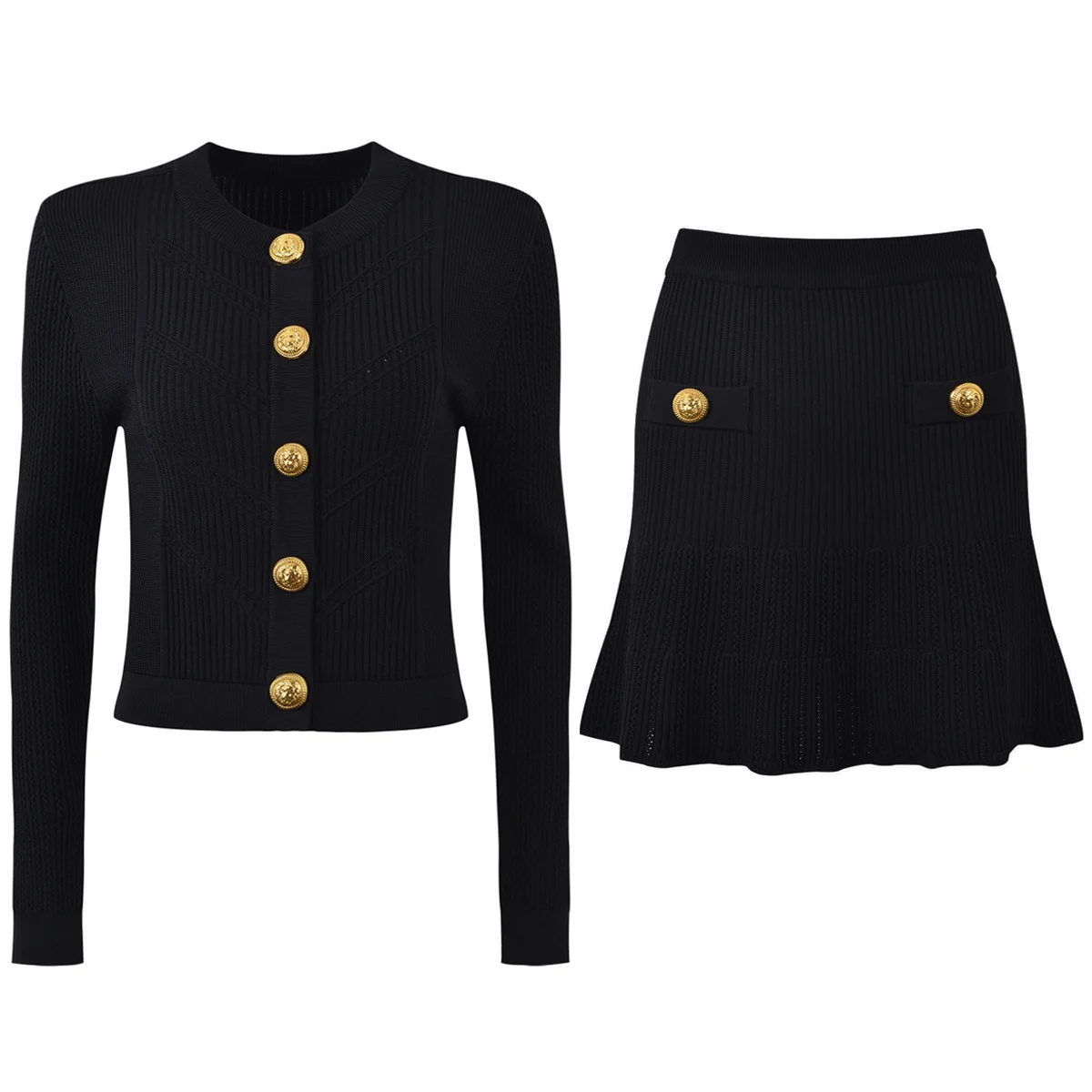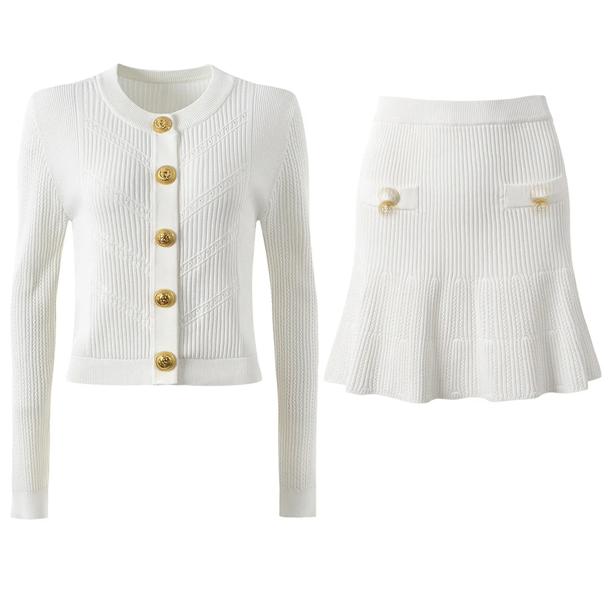 ZJYT Fashion Spring 2025 Long Sleeve Cardigan Sweater Skirt Set 2 Pieces Womens Outfit Knitting Dress Sets Casual Party Suits