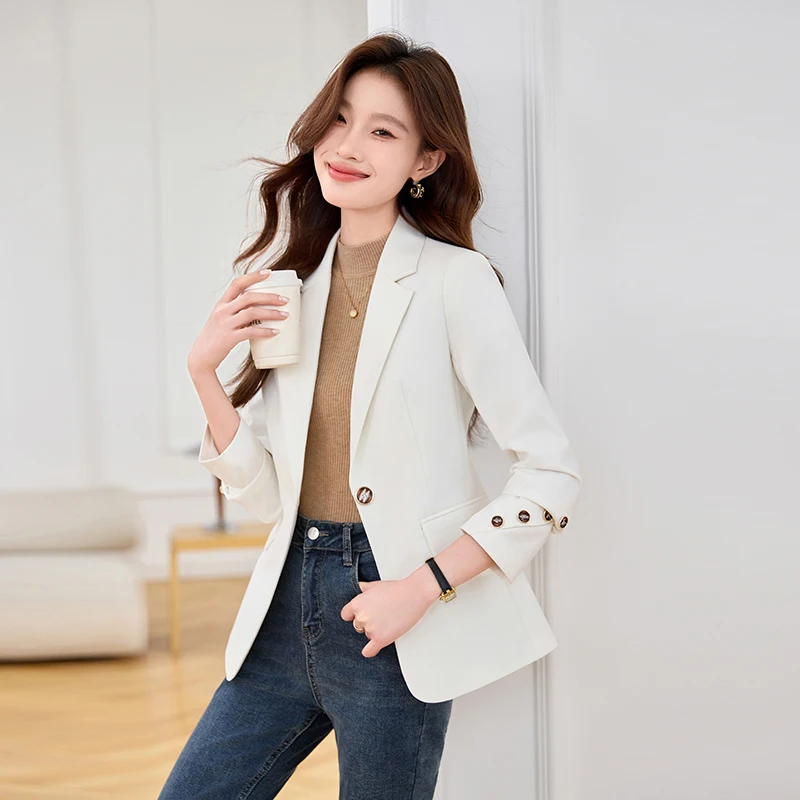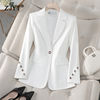 ZJYT Fashion Spring Outerwears Business Chic Formal White Women’s Blazer One Button Casual Jacket Coat Plus Size Veste Femme