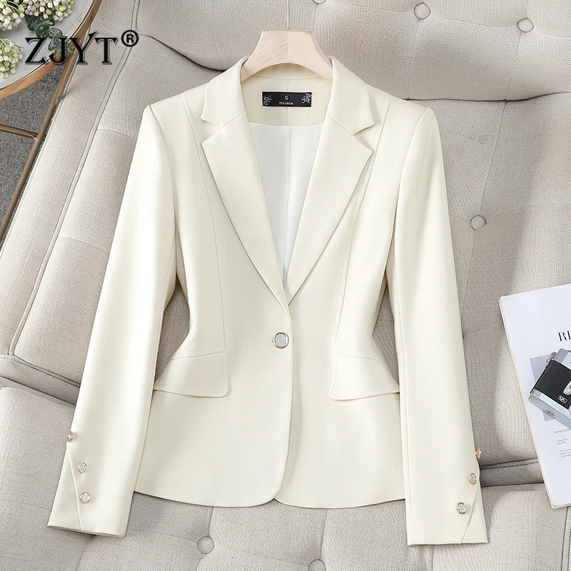 ZJYT Korean Fashion Blazers for Woman Long Sleeve Lapel Collar Casual Slim Fit Jackets Coats Office Ladies Plus Size Outerwear