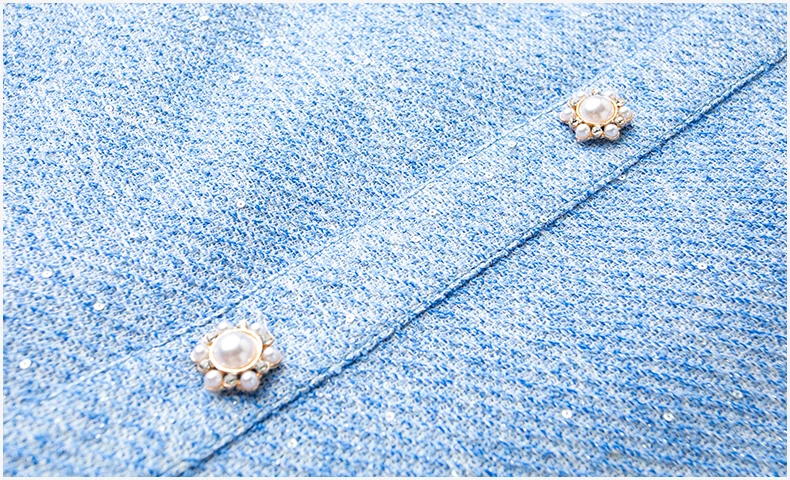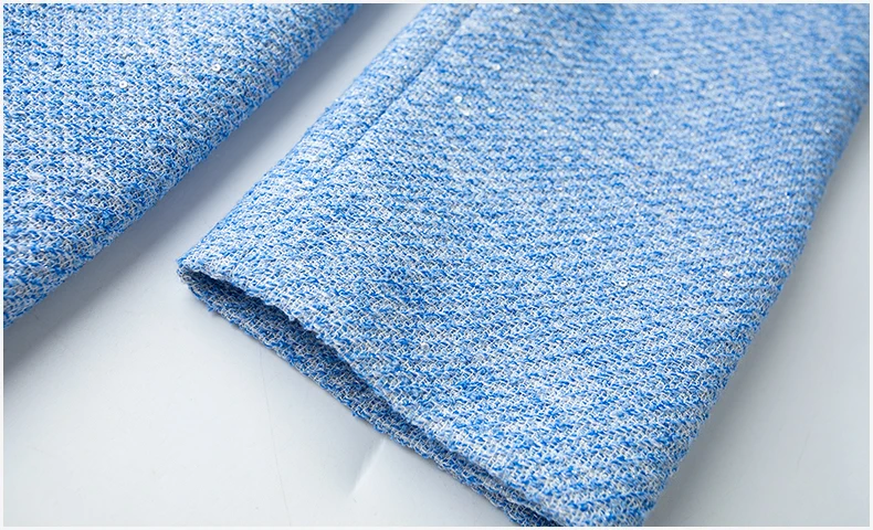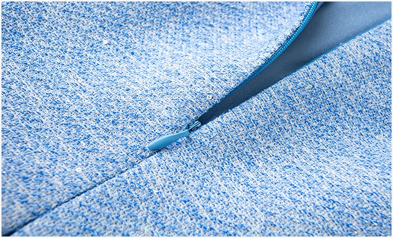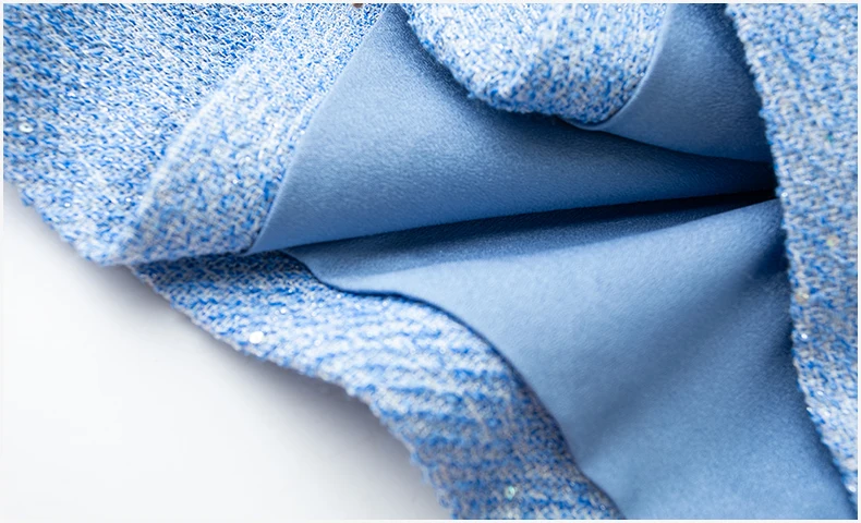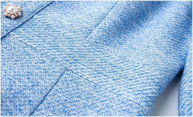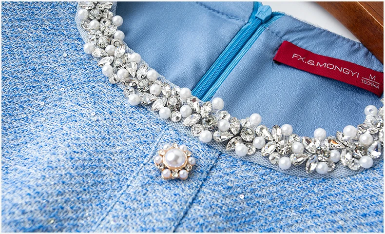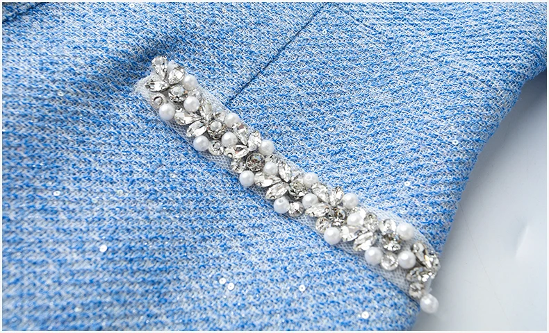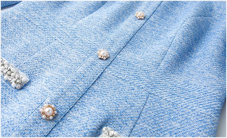 ZJYT Luxury Elegant Beading Midi Tweed Woolen Dresses for Women 2025 New Autumn Winter Long Sleeve Party Office Lady Dress Blue