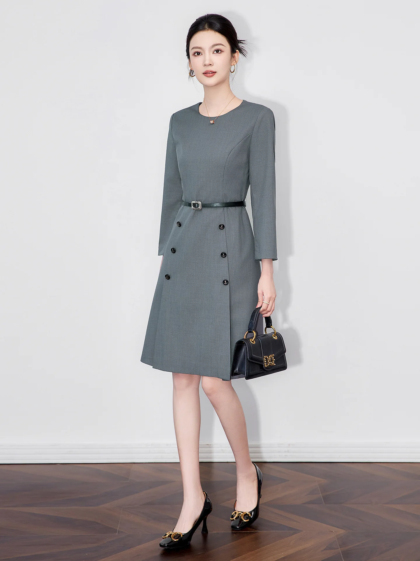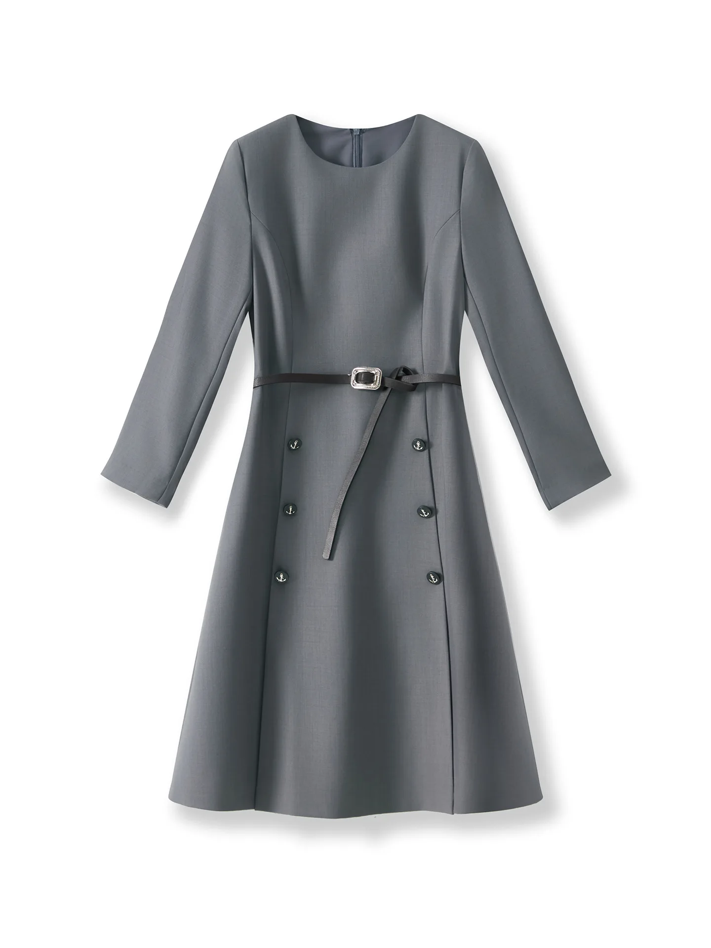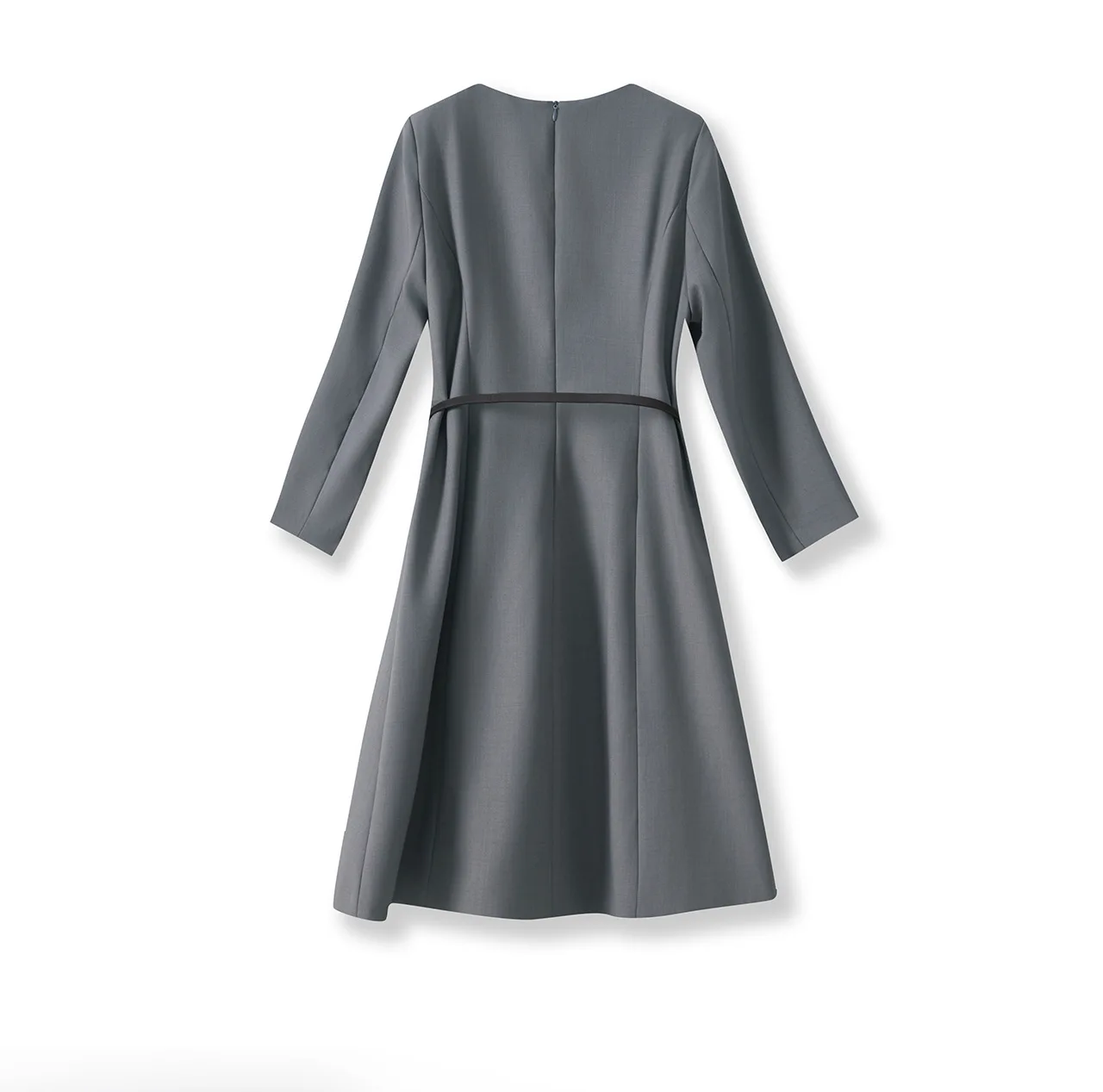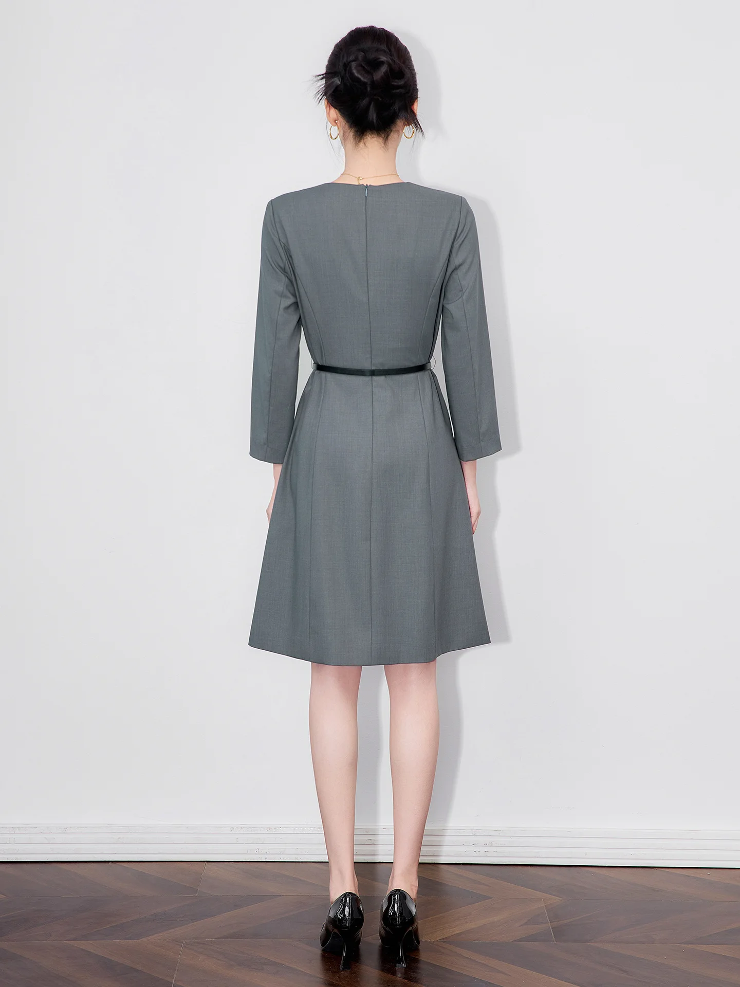 ZJYT New Arrivals Ladies Commuter Office Dress Women 2025 Autumn Designer Solid Grey Brief Knee Length Dresses with Belt Vestido