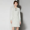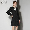 ZJYT New Fashion Women’s Autumn Tweed Dress Long Sleeve Beading Bowknot Vintage Casual Vintage Dresses Knee Length Vestidos