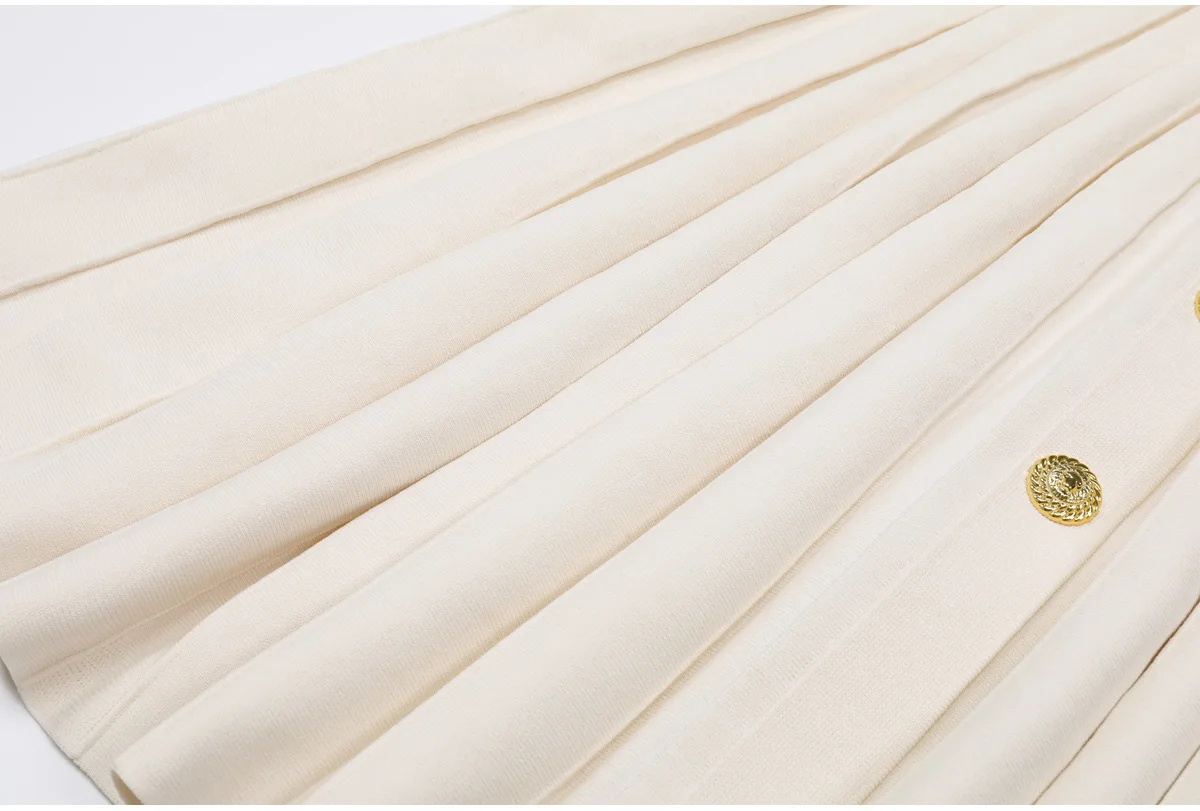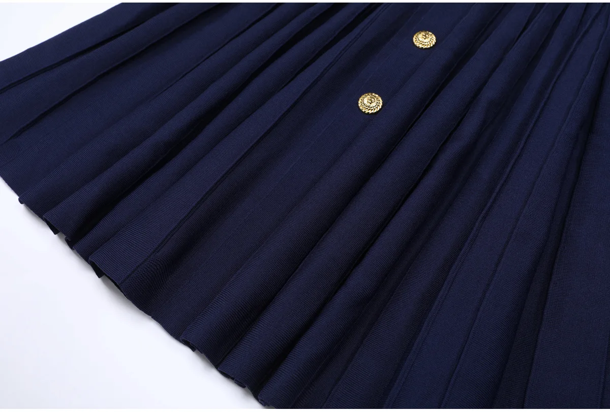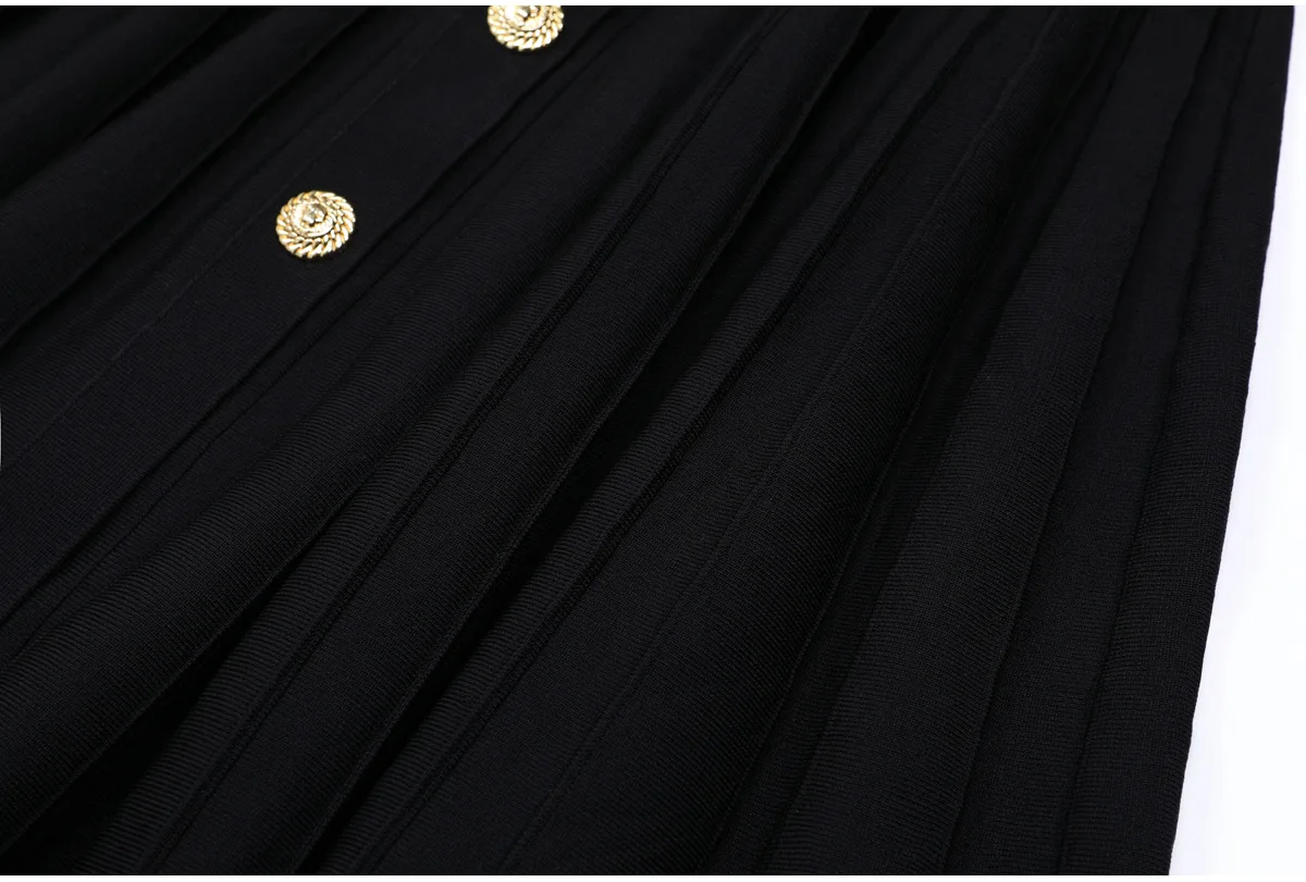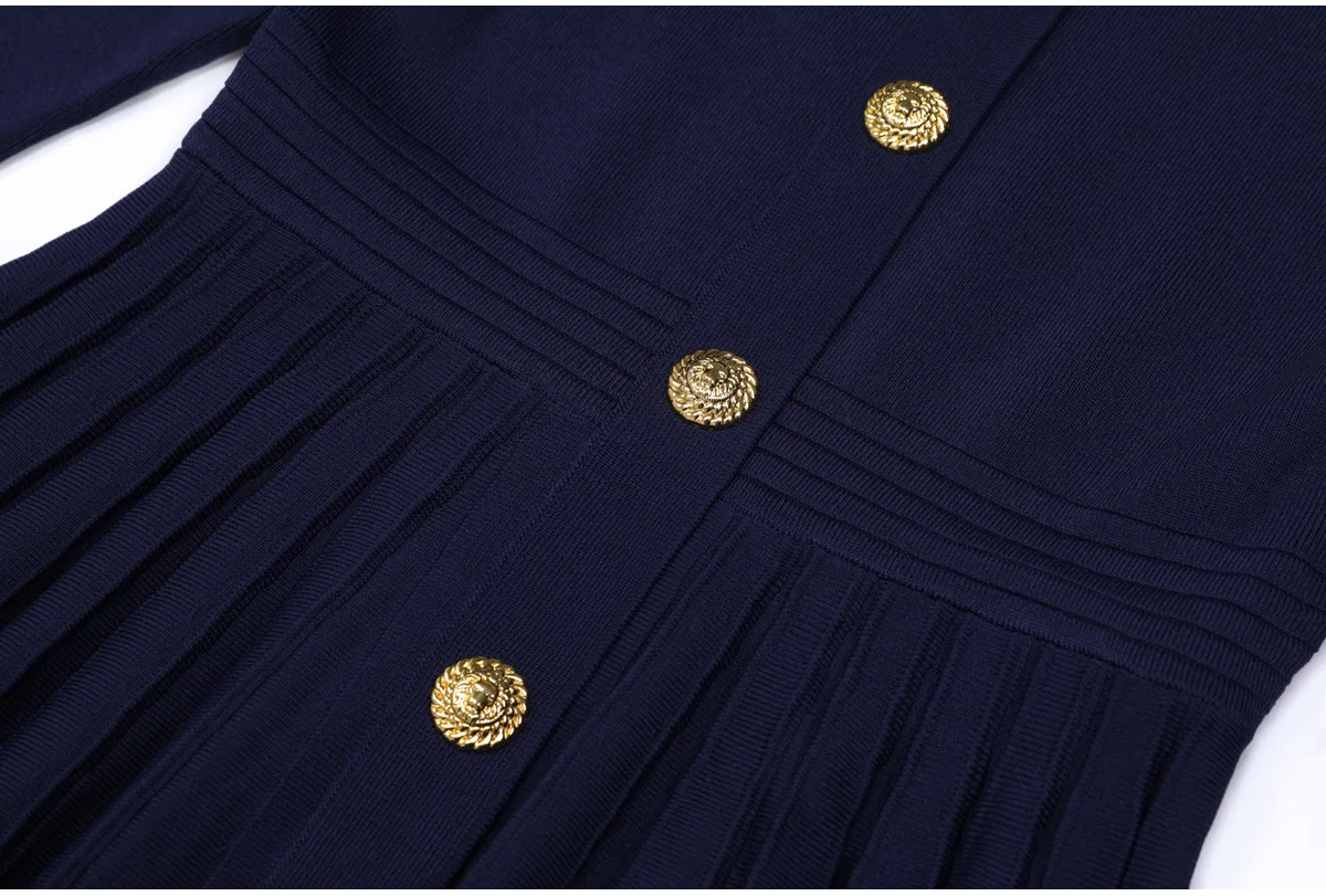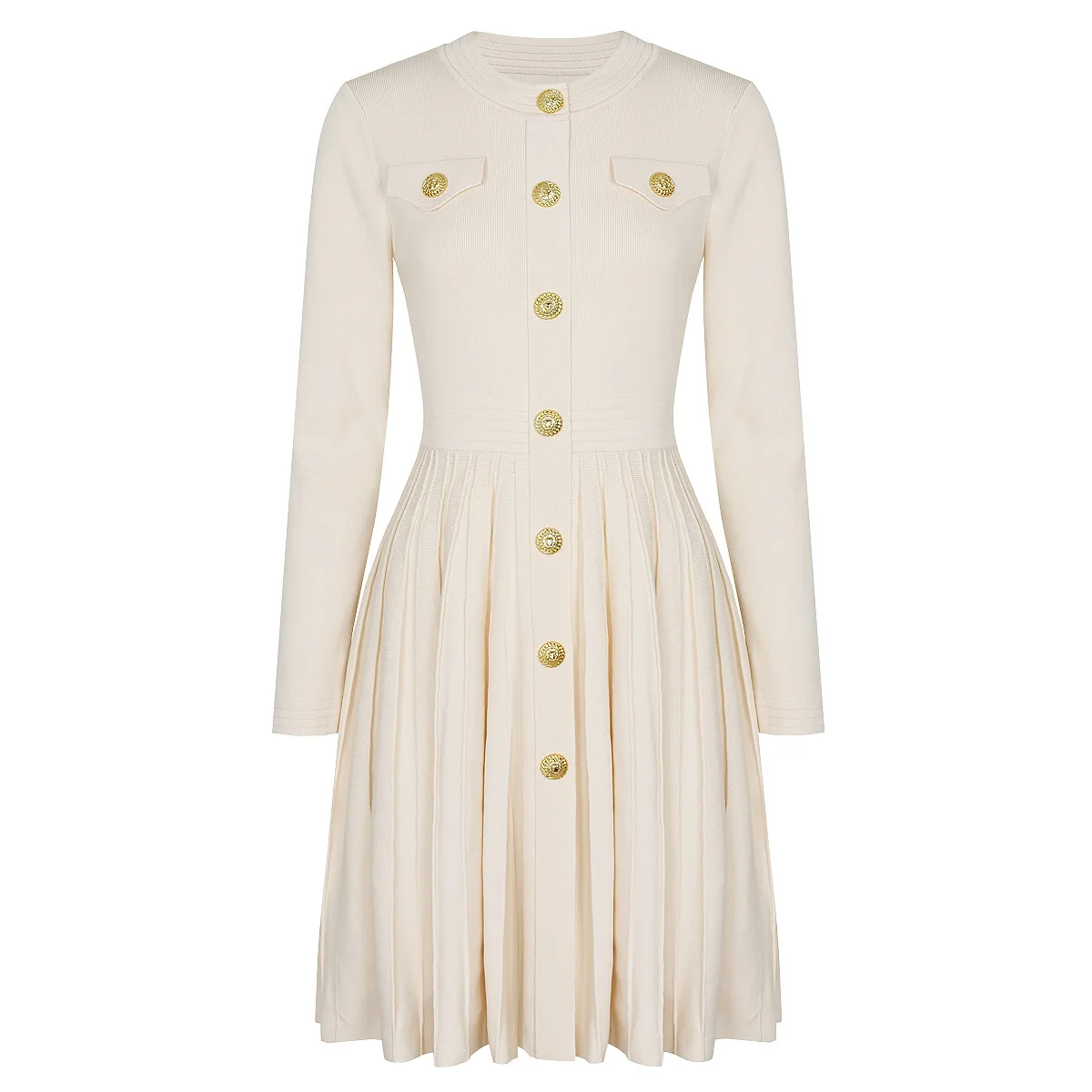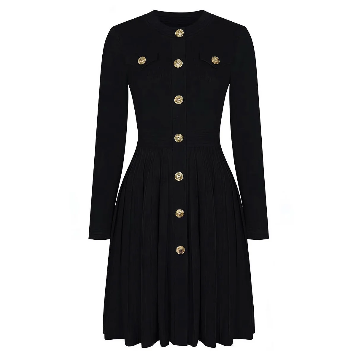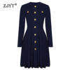 ZJYT New Spring Autumn Knitting Sweater Dresses for Women 2026 Elegant O Neck Buttons Pleated Knee Length Casual Basics Dress