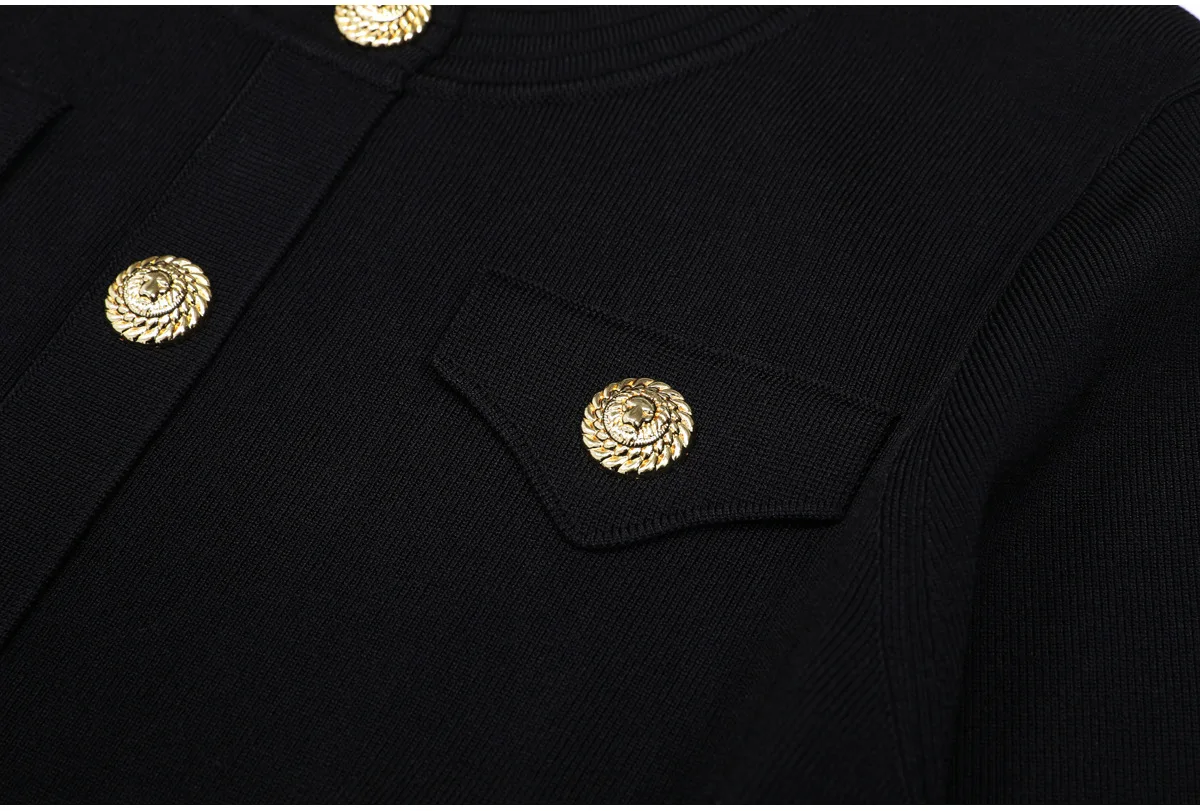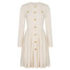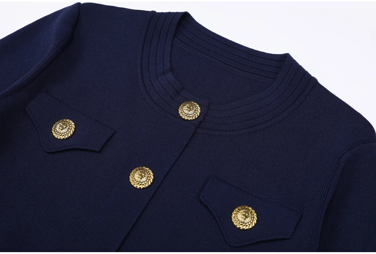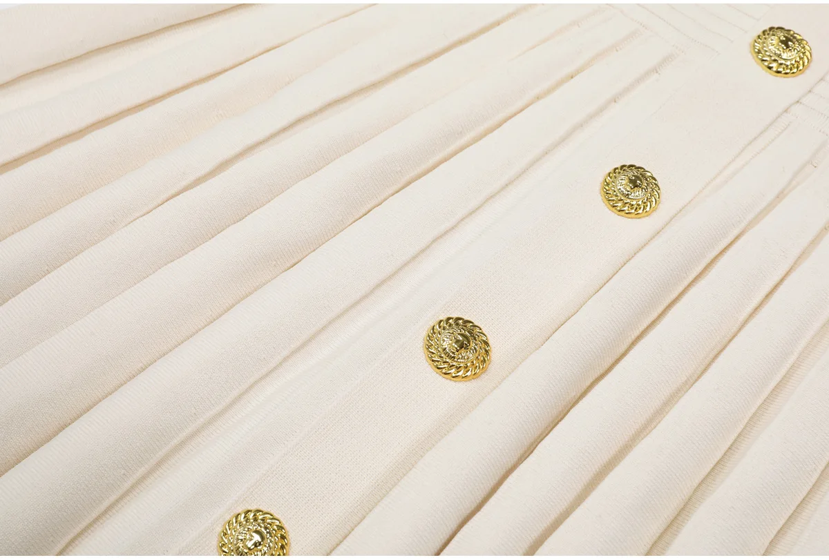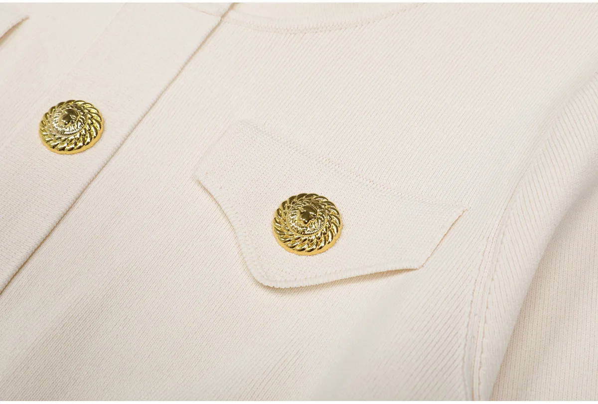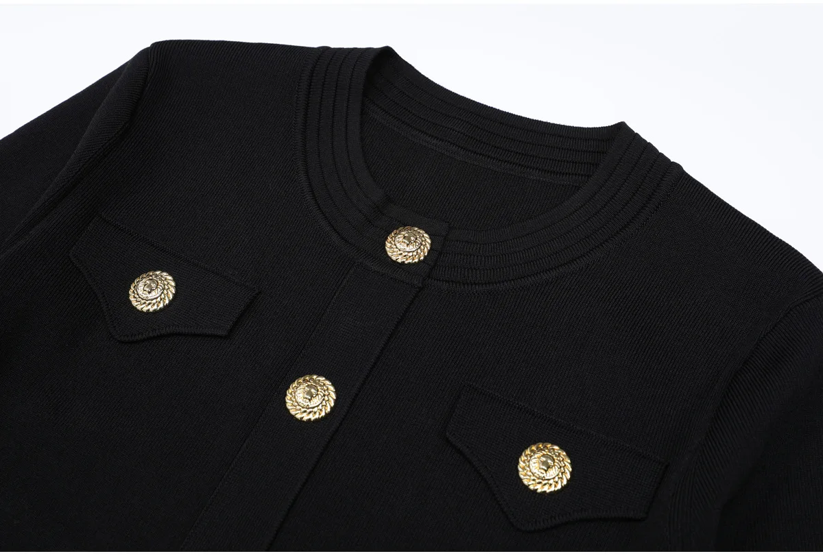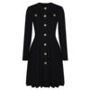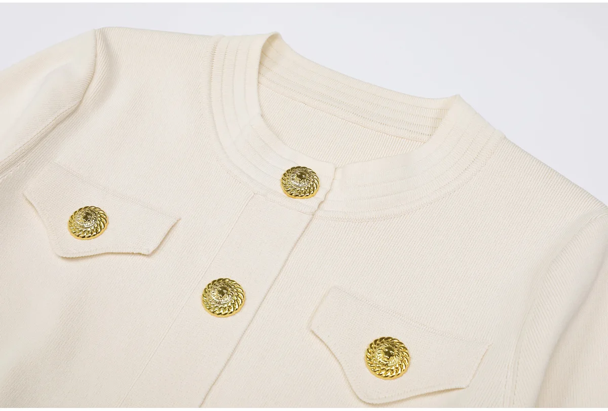 ZJYT New Spring Autumn Knitting Sweater Dresses for Women 2026 Elegant O Neck Buttons Pleated Knee Length Casual Basics Dress