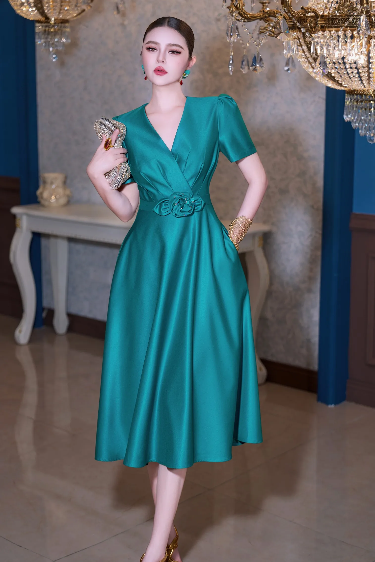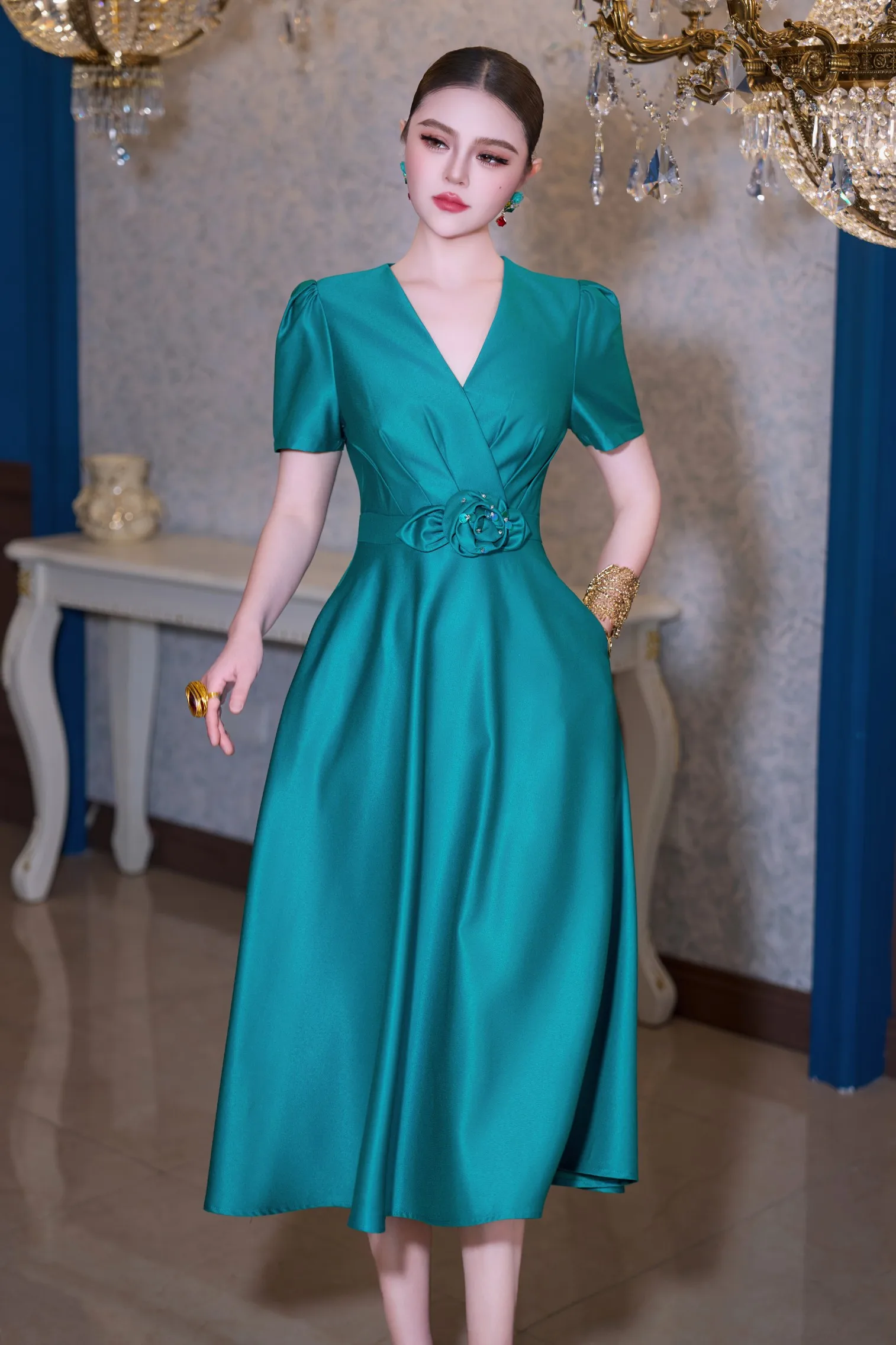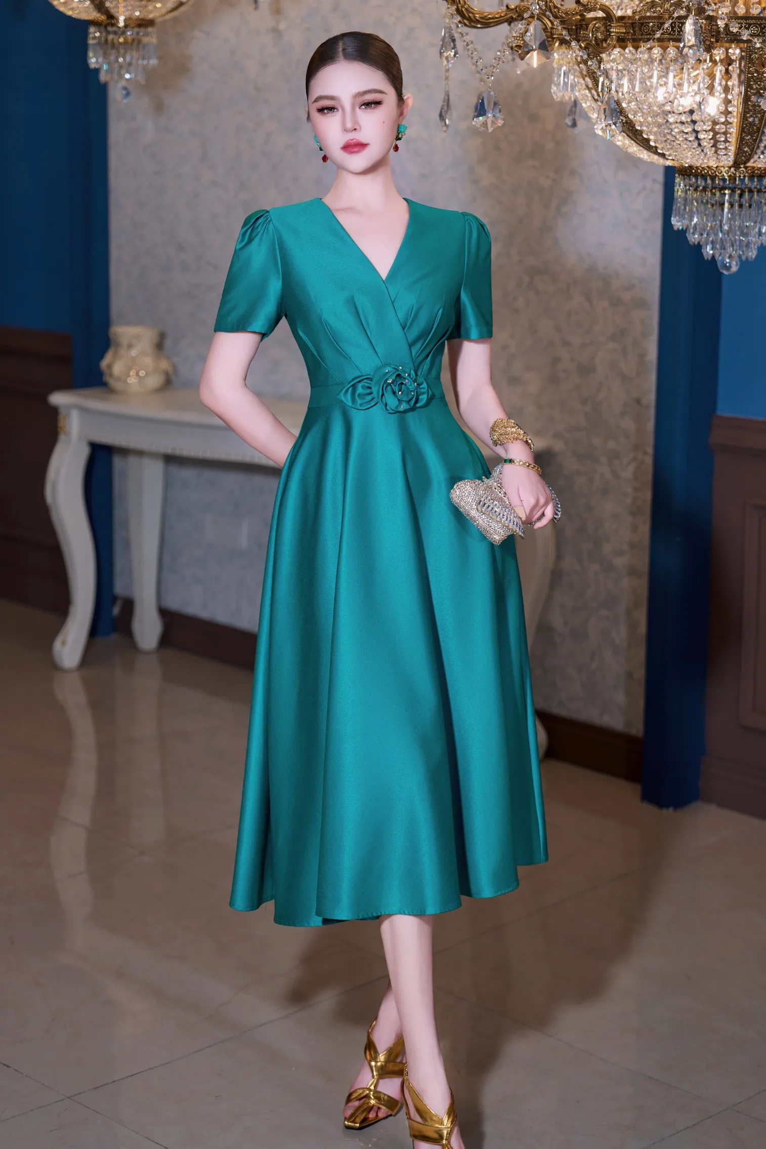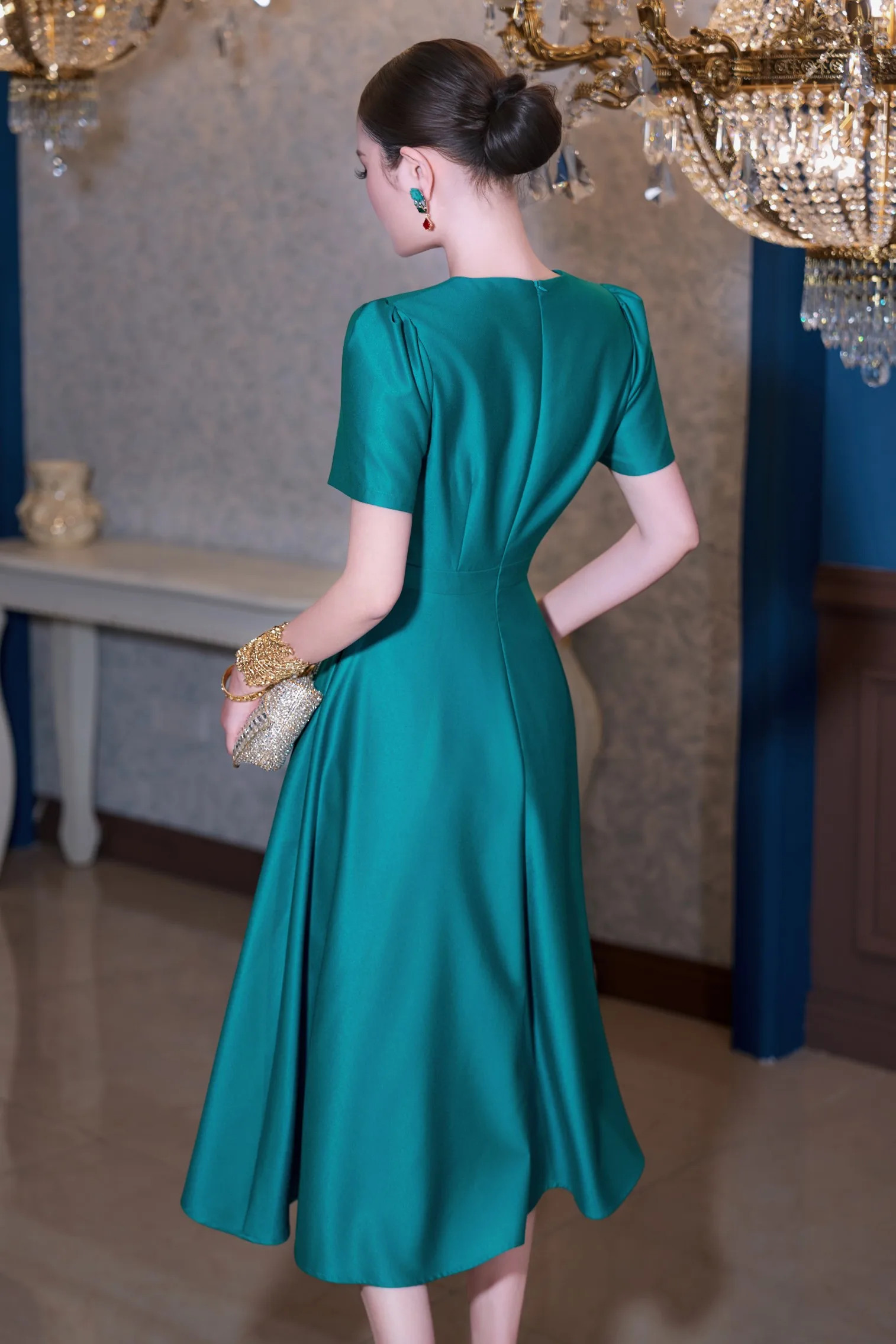 ZJYT New Spring Summer Elegant Dresses for Women 2026 Fashion Short Sleeve Formal Special Occasion Party Dress Midi Green Robes