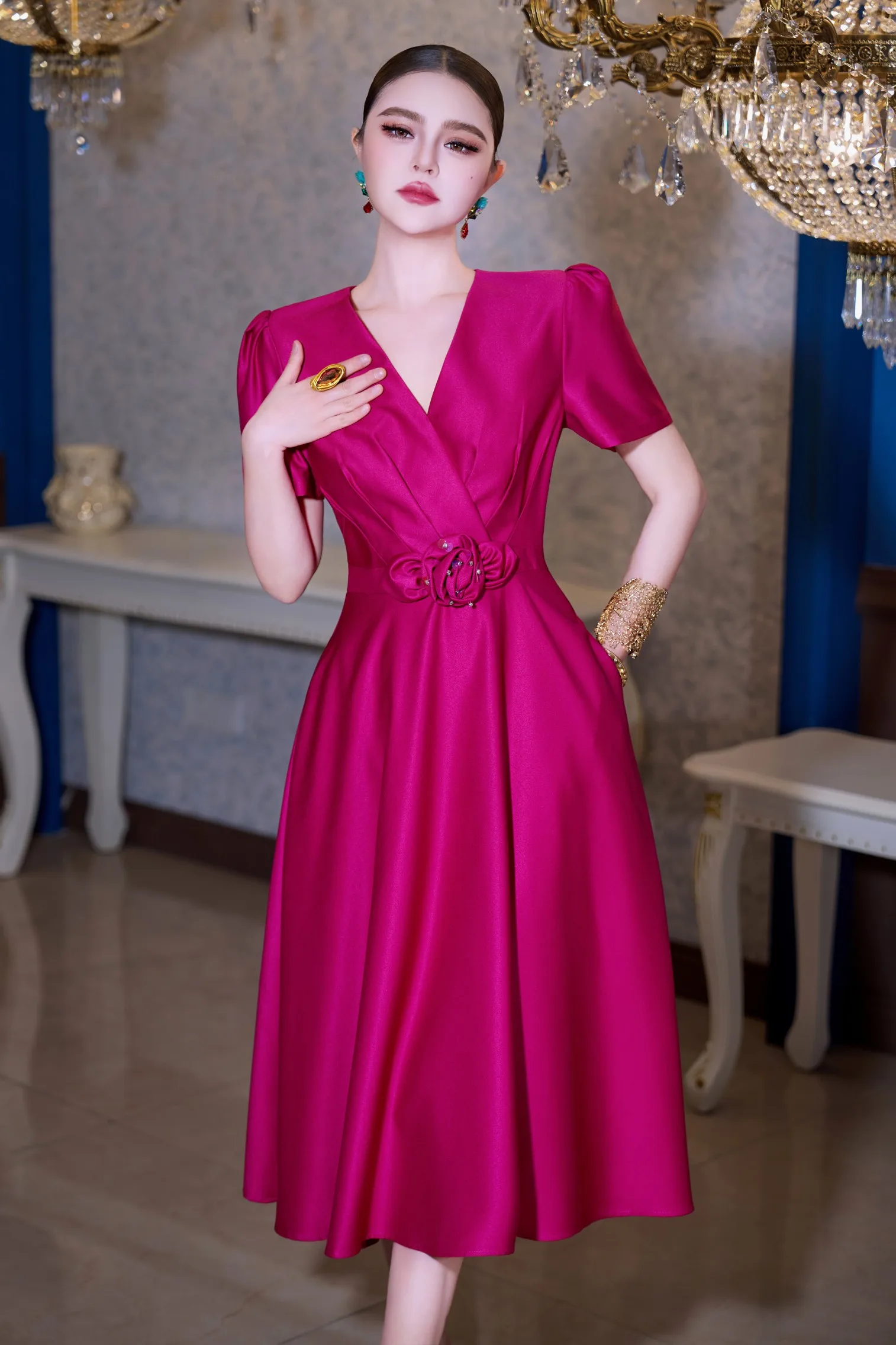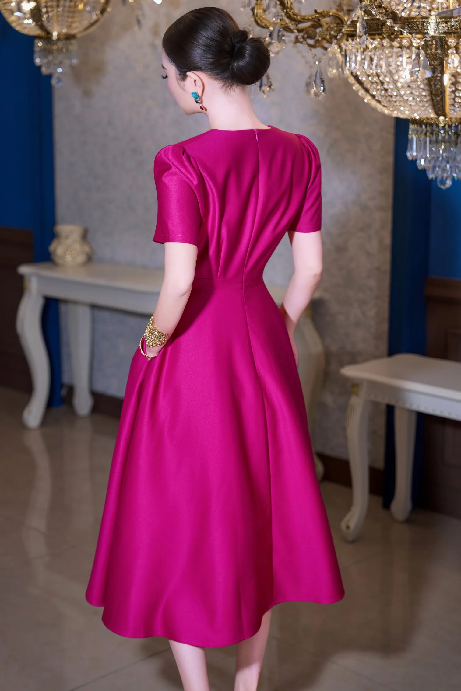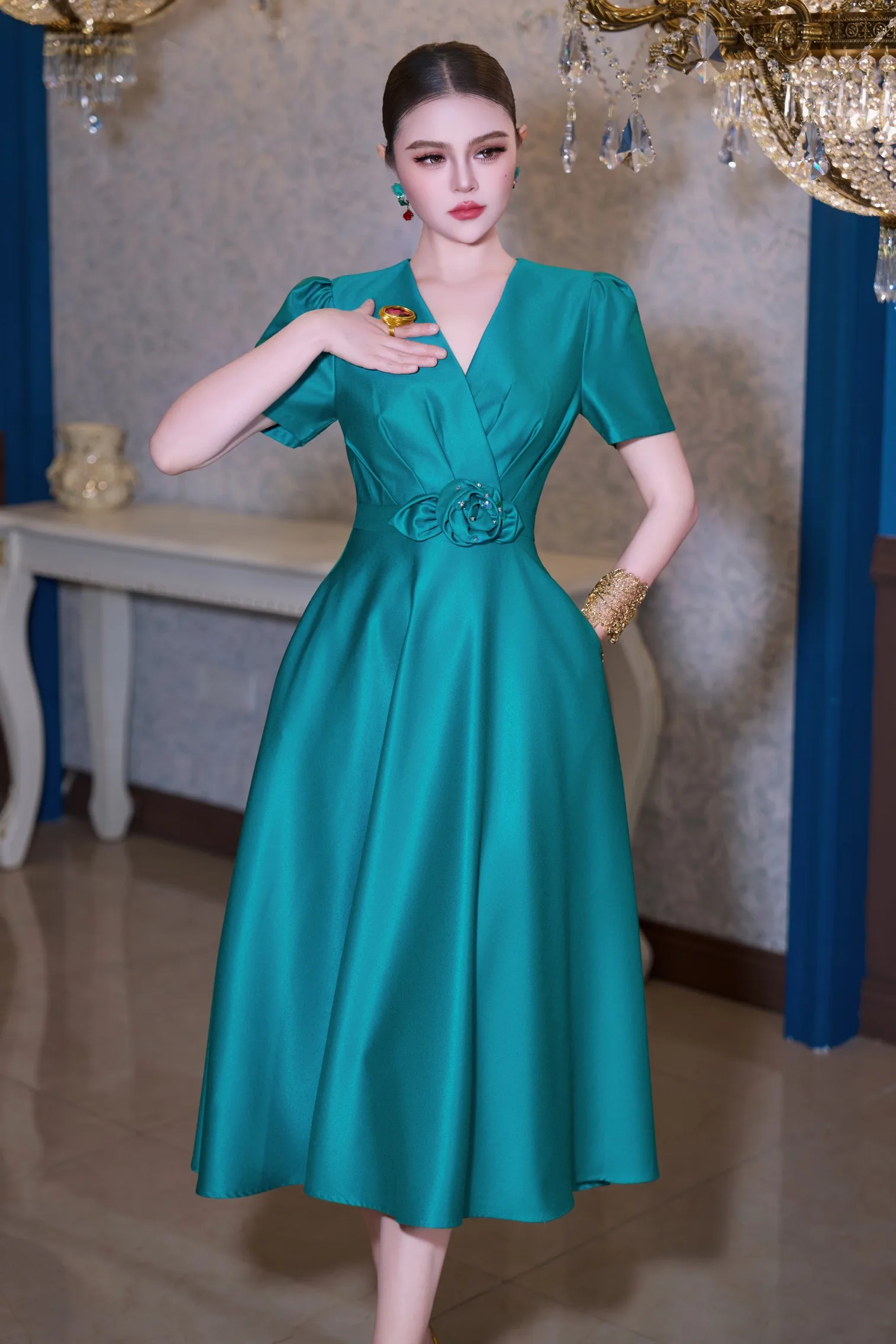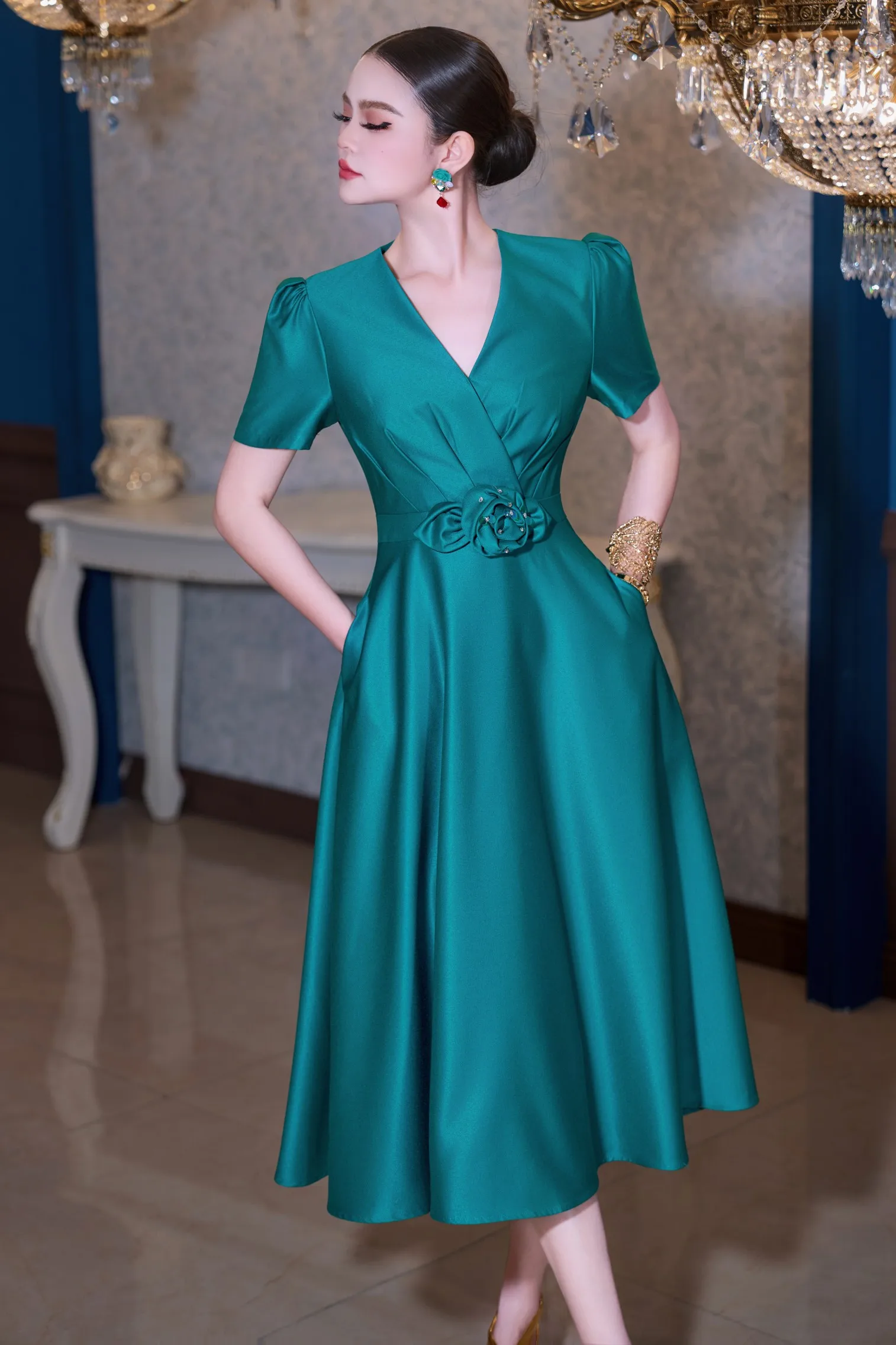 ZJYT New Spring Summer Elegant Dresses for Women 2026 Fashion Short Sleeve Formal Special Occasion Party Dress Midi Green Robes