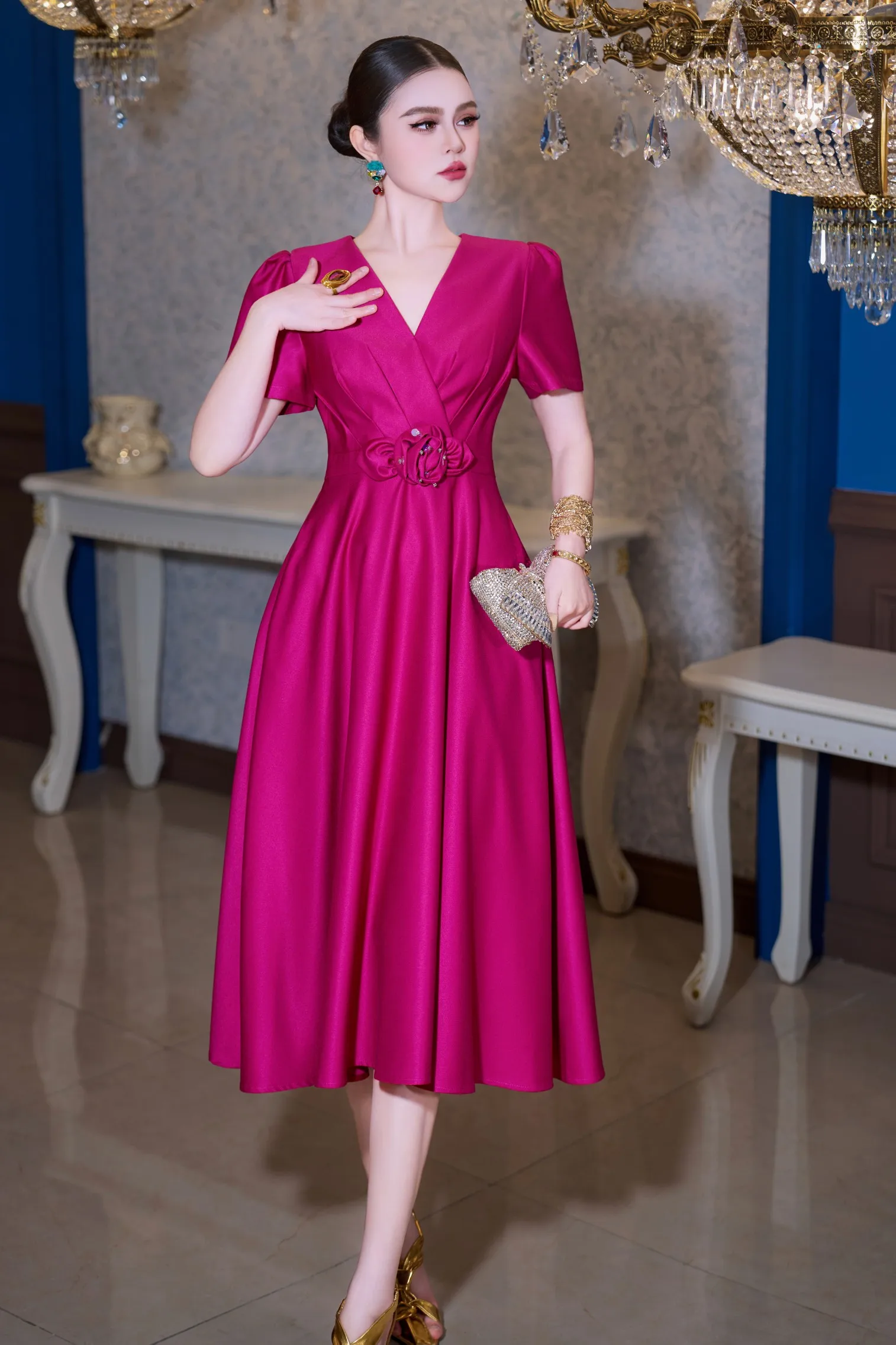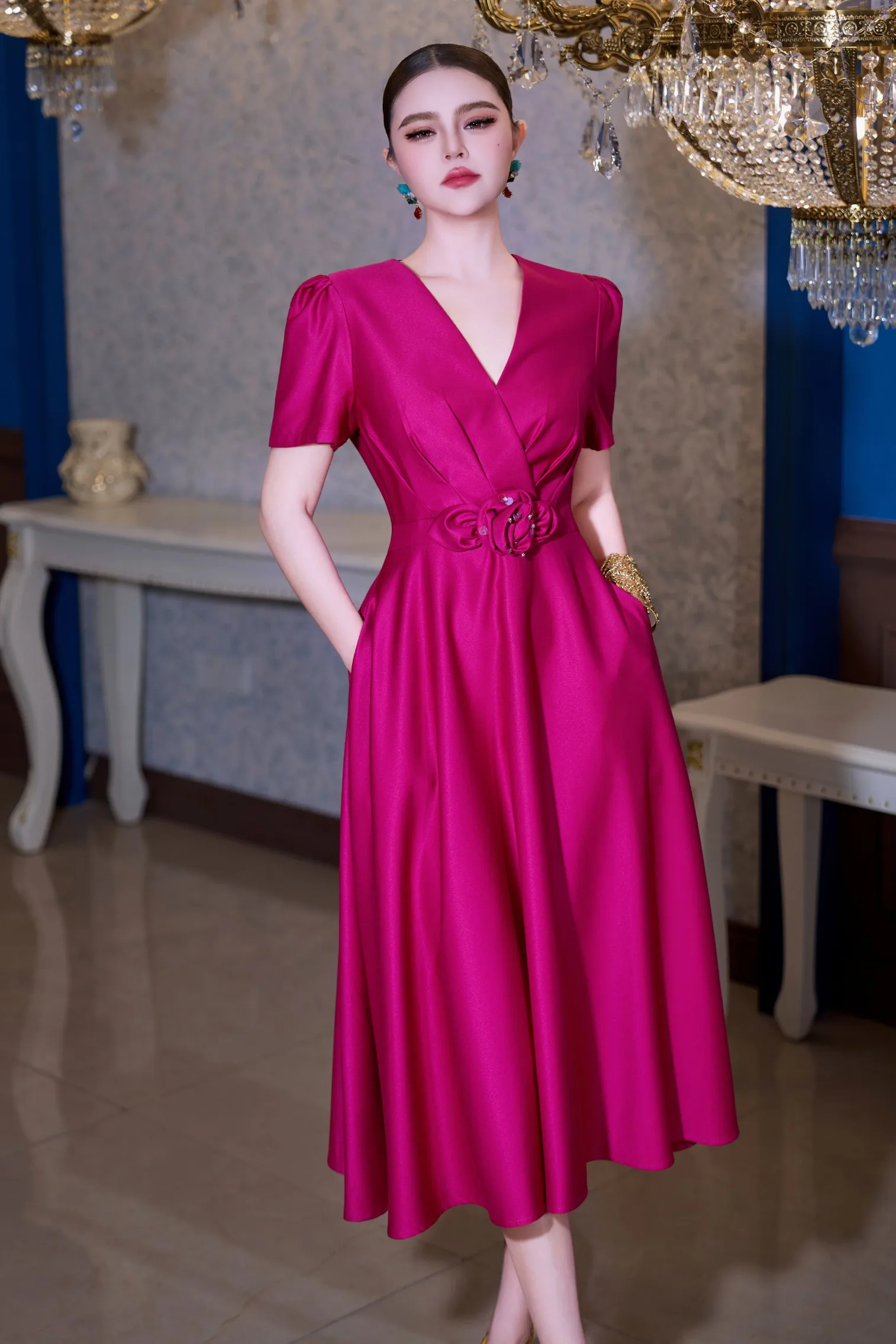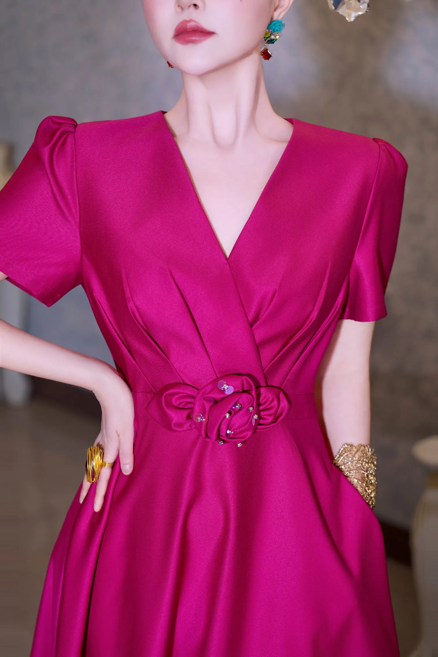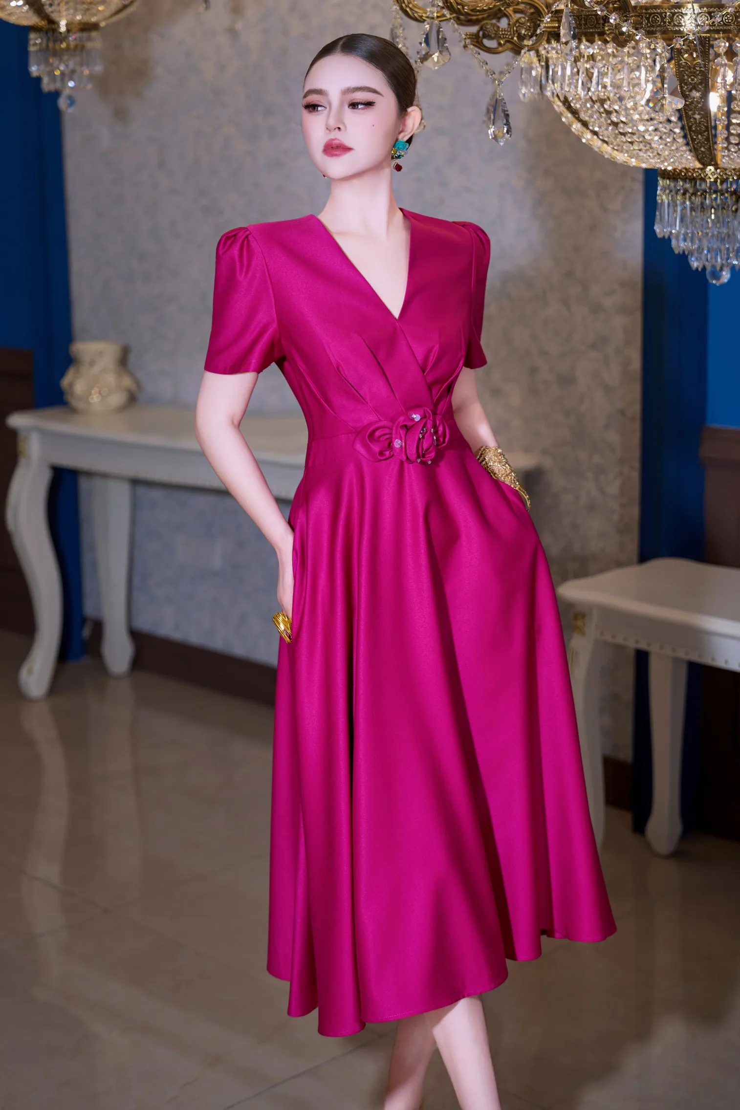 ZJYT New Spring Summer Elegant Dresses for Women 2026 Fashion Short Sleeve Formal Special Occasion Party Dress Midi Green Robes