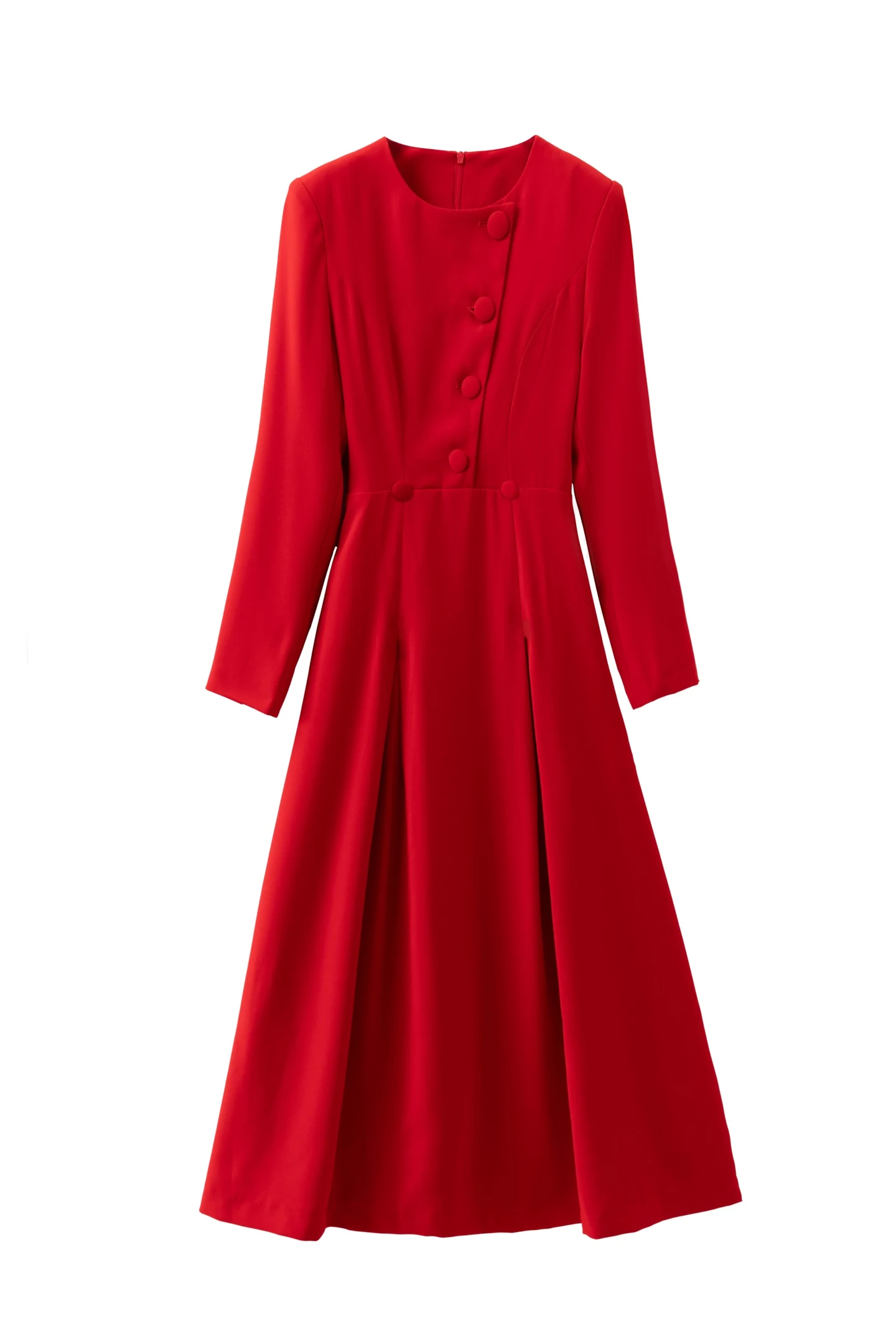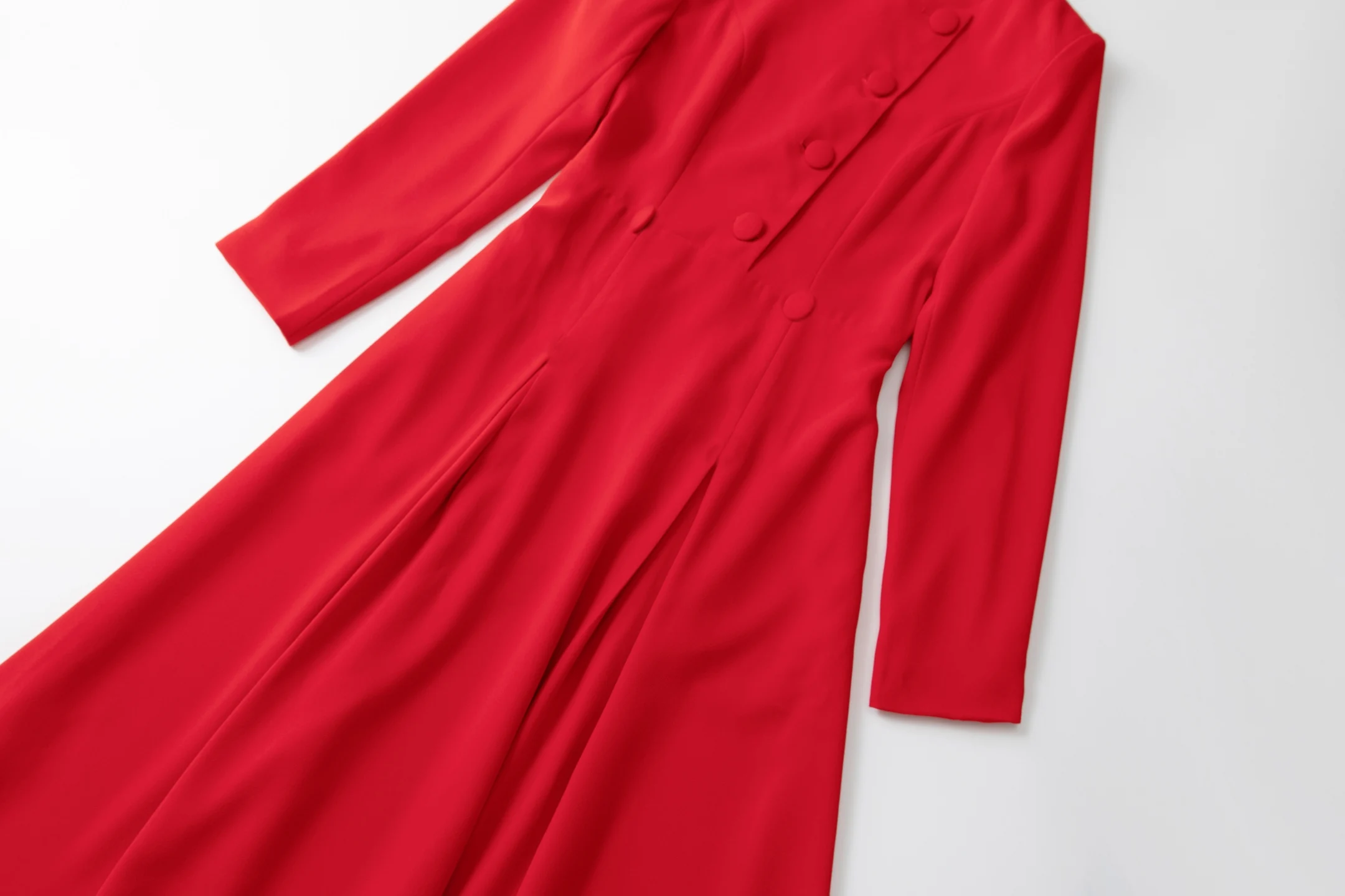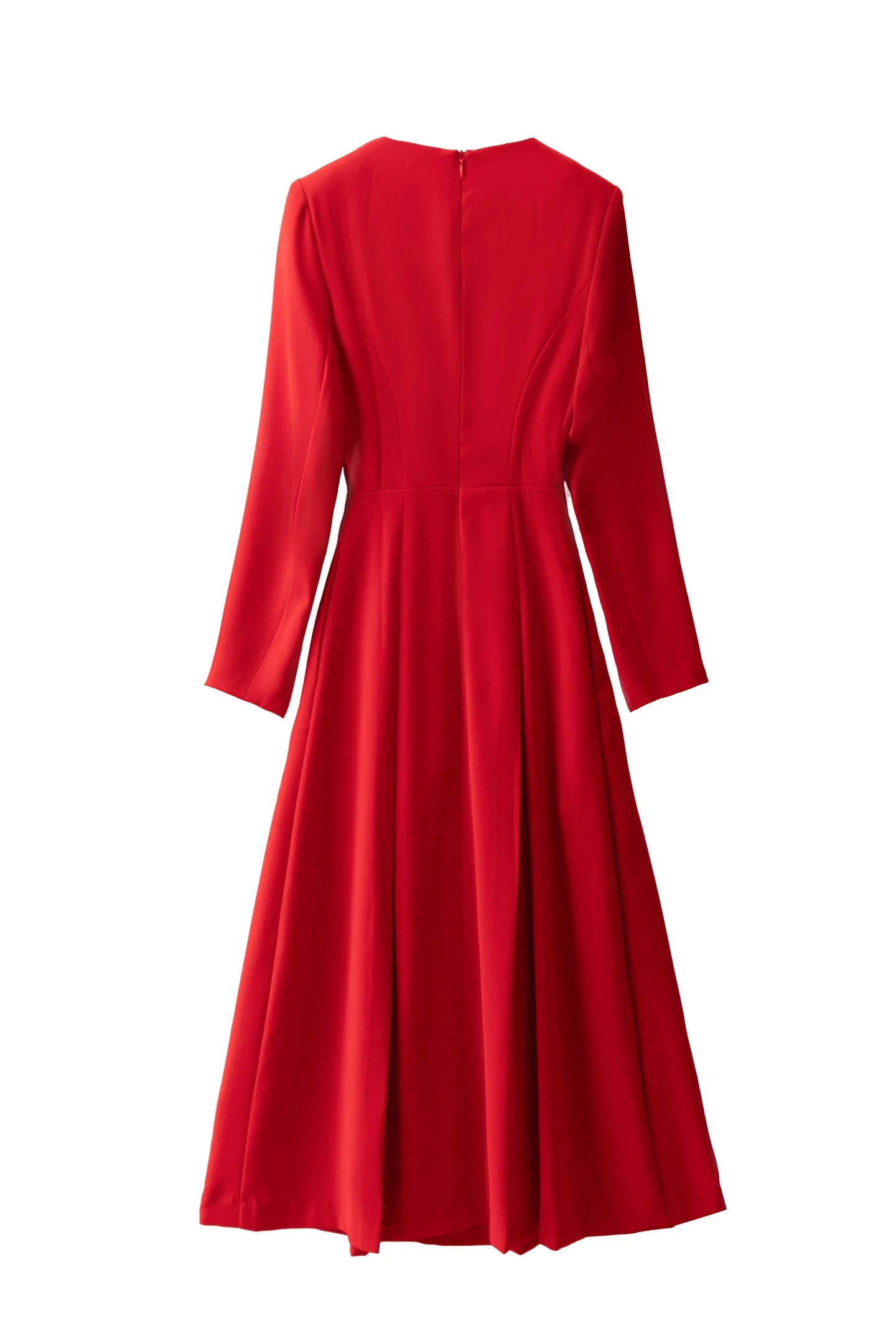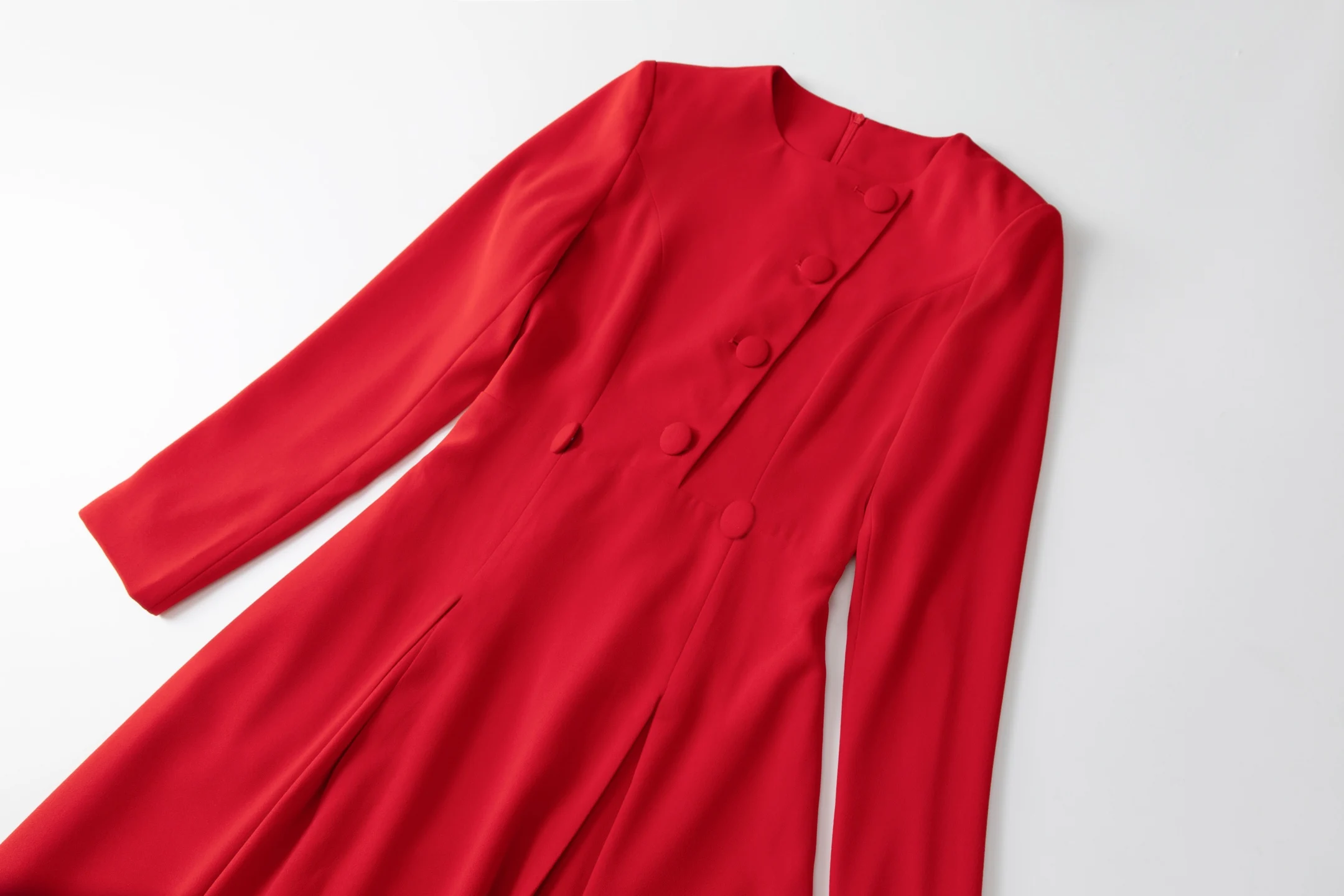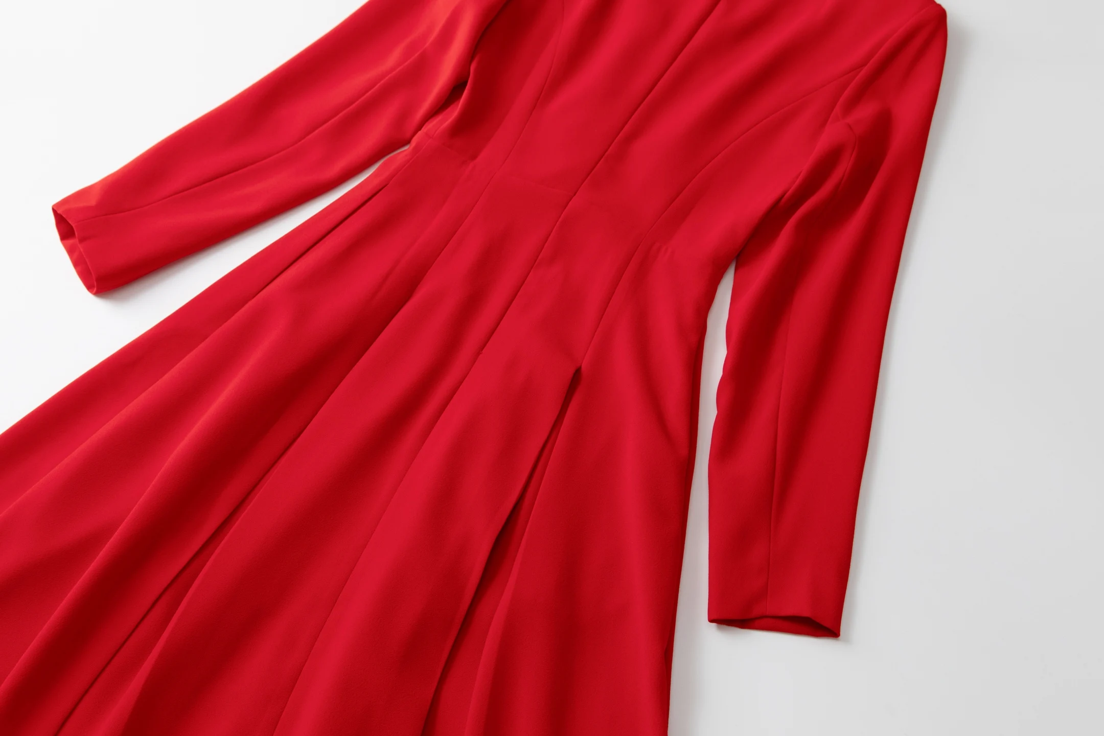 ZJYT Runway 2025 New Fashion Autumn Dresses for Women Elegant Long Sleeve Red Midi Party Casual Dress Vestidos Para Mujer