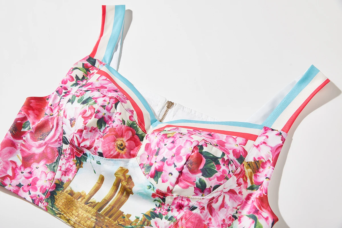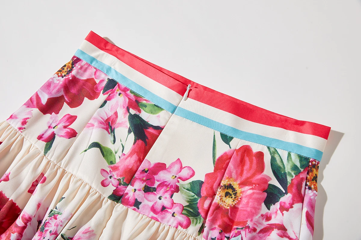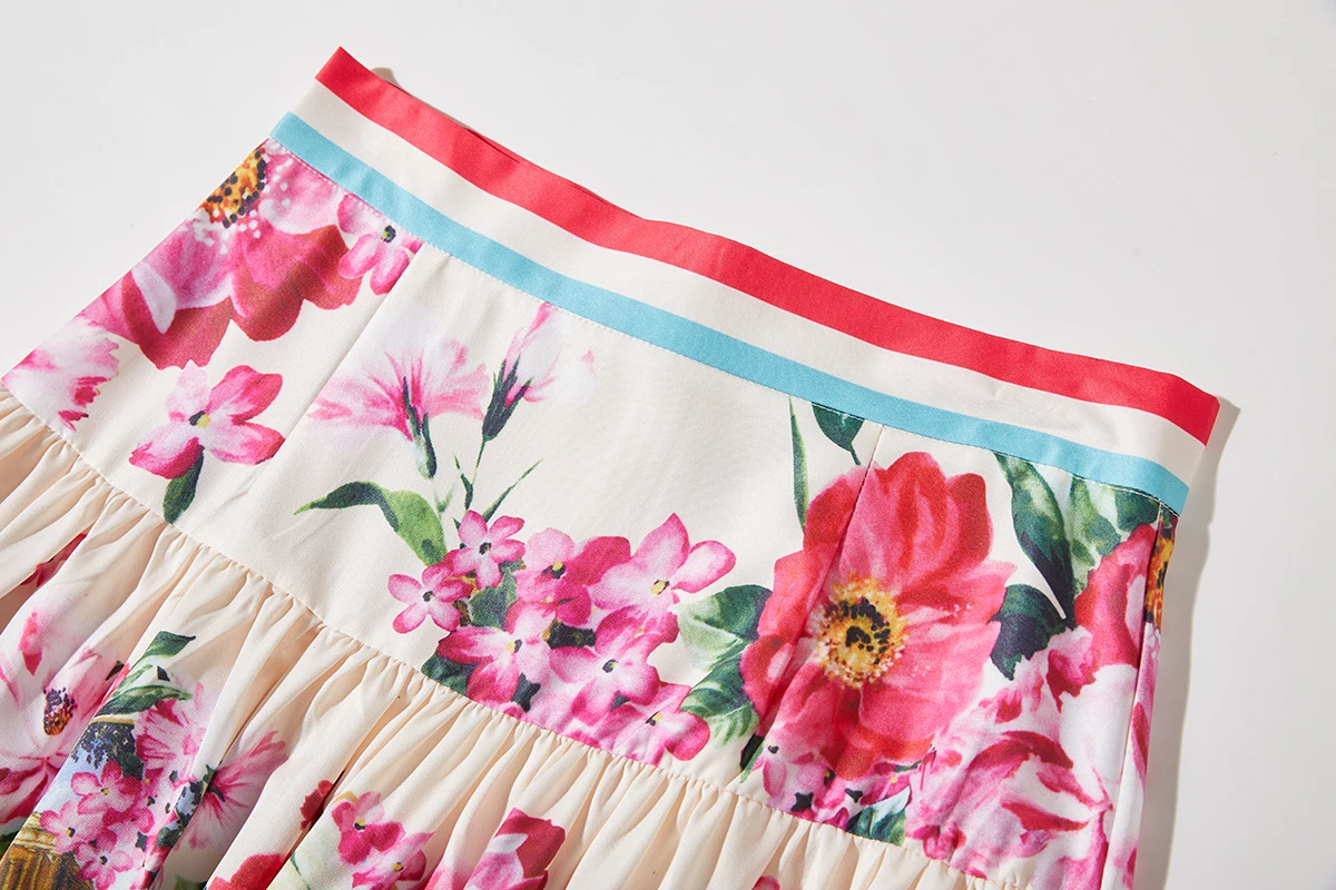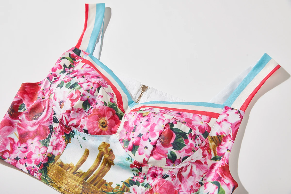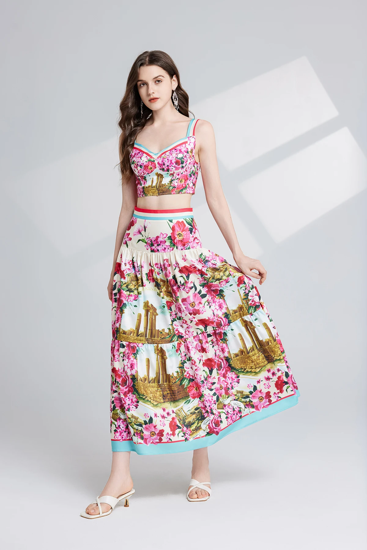 ZJYT Runway 2025 Summer Floral Print Sleeveless Top and Skirt Sets Two Pieces Womens Outfit Fashion Holiday Beach Suit Female
