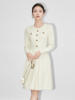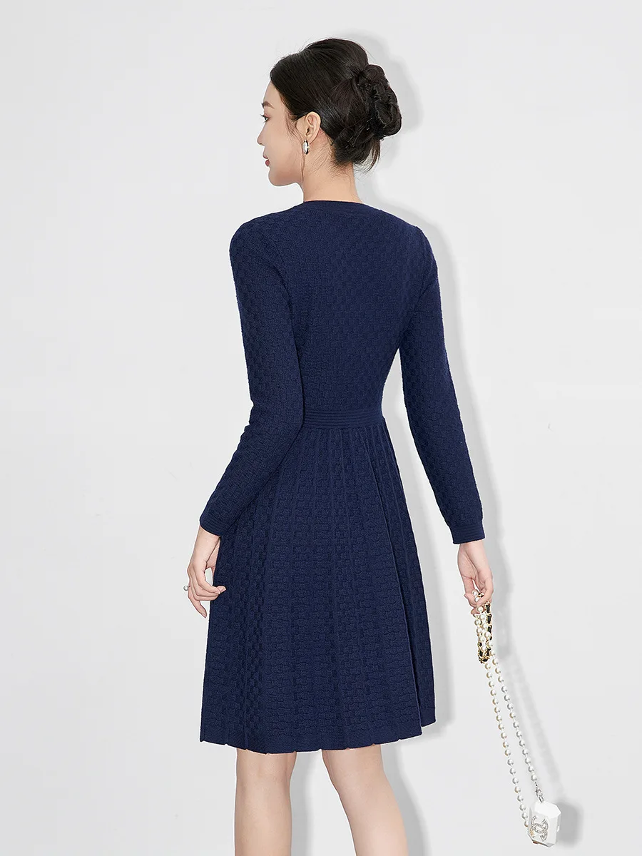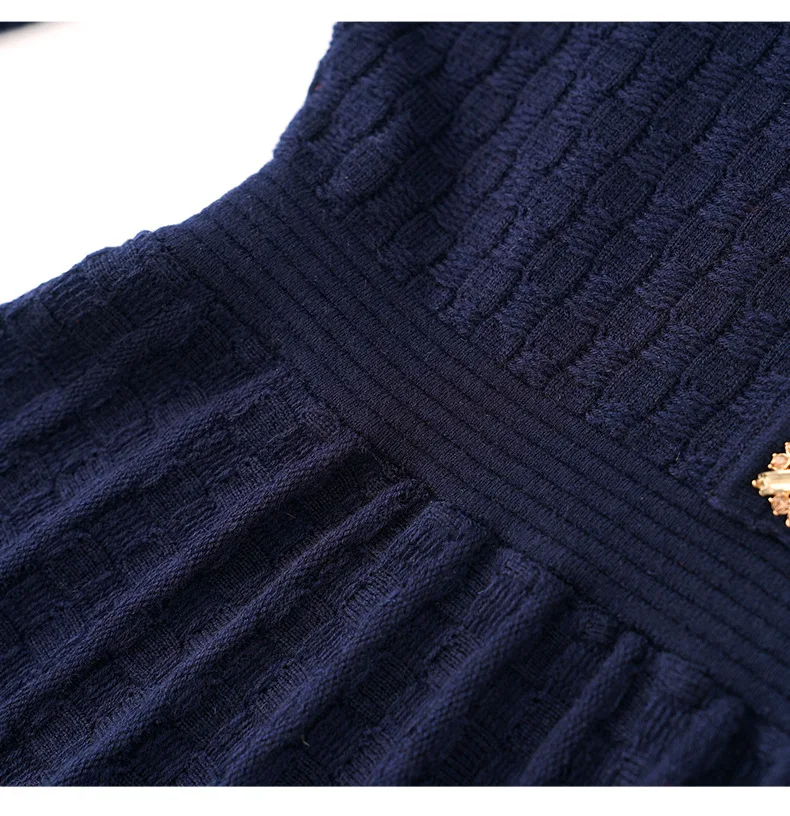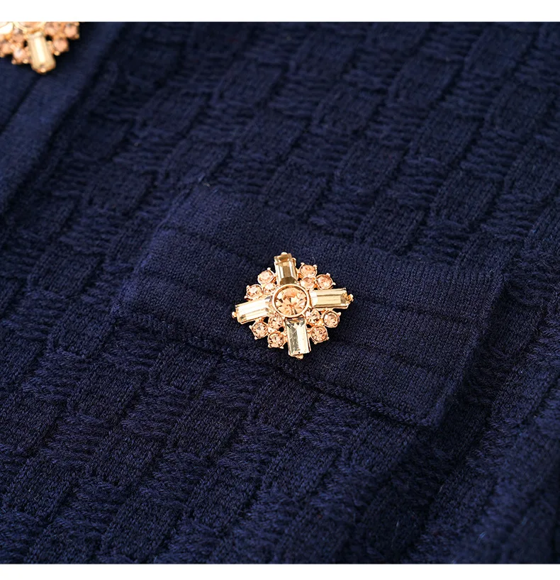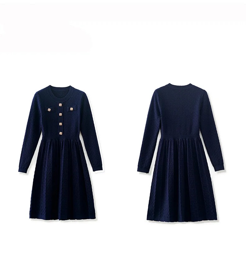 ZJYT Runway Designer Elegant Women’s Knitted Sweater Dresses for Autumn Winter 2024 Long Sleeve Crystal Buttons Pleated Dress