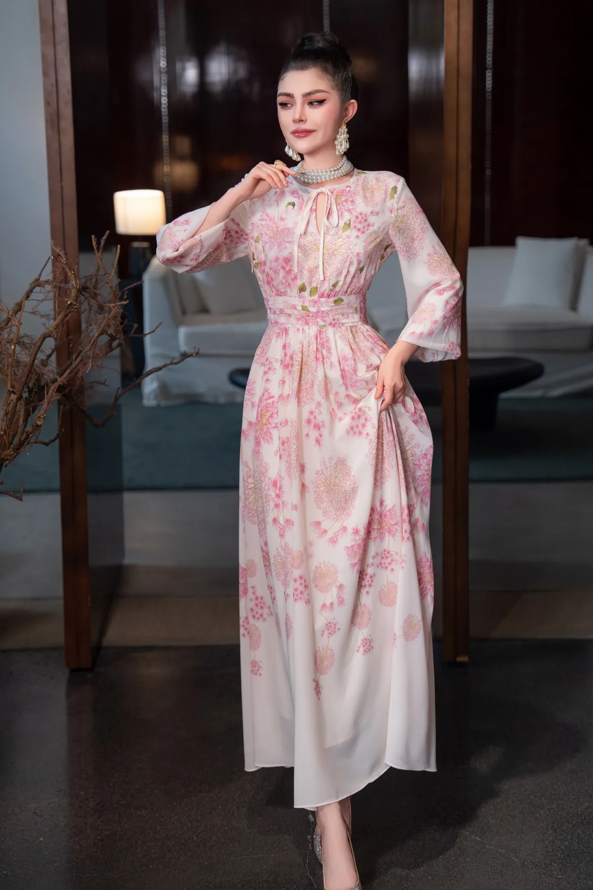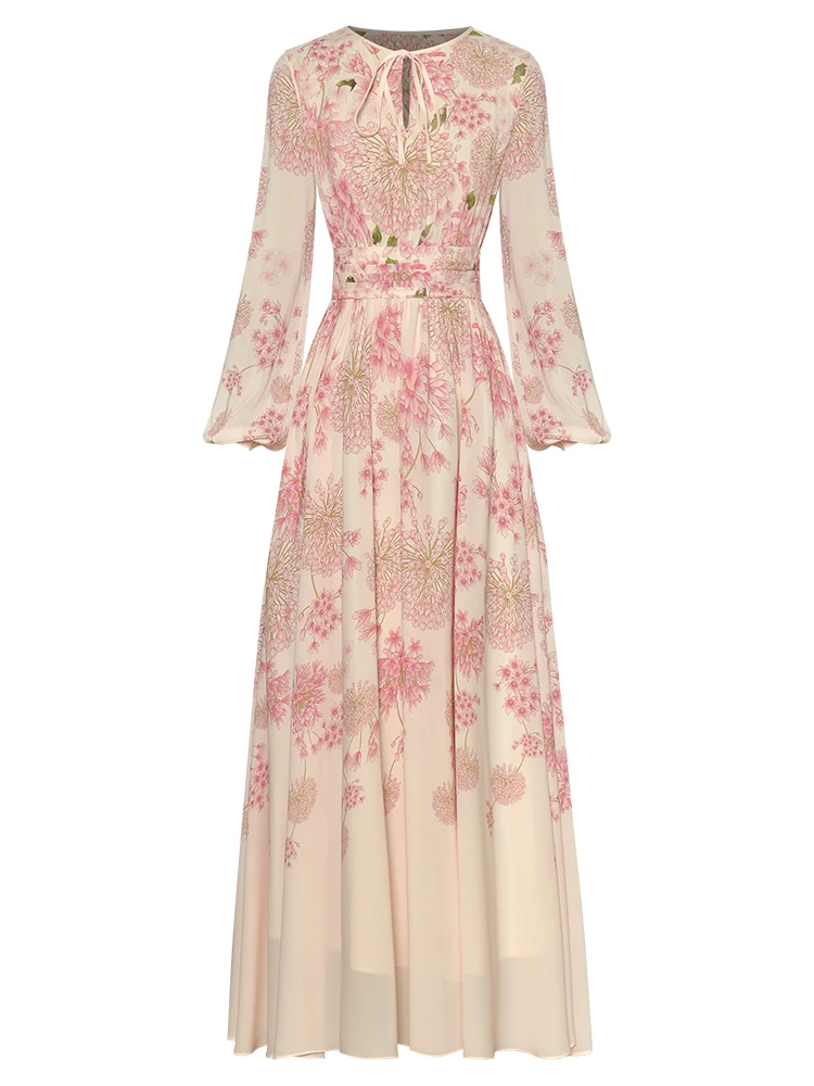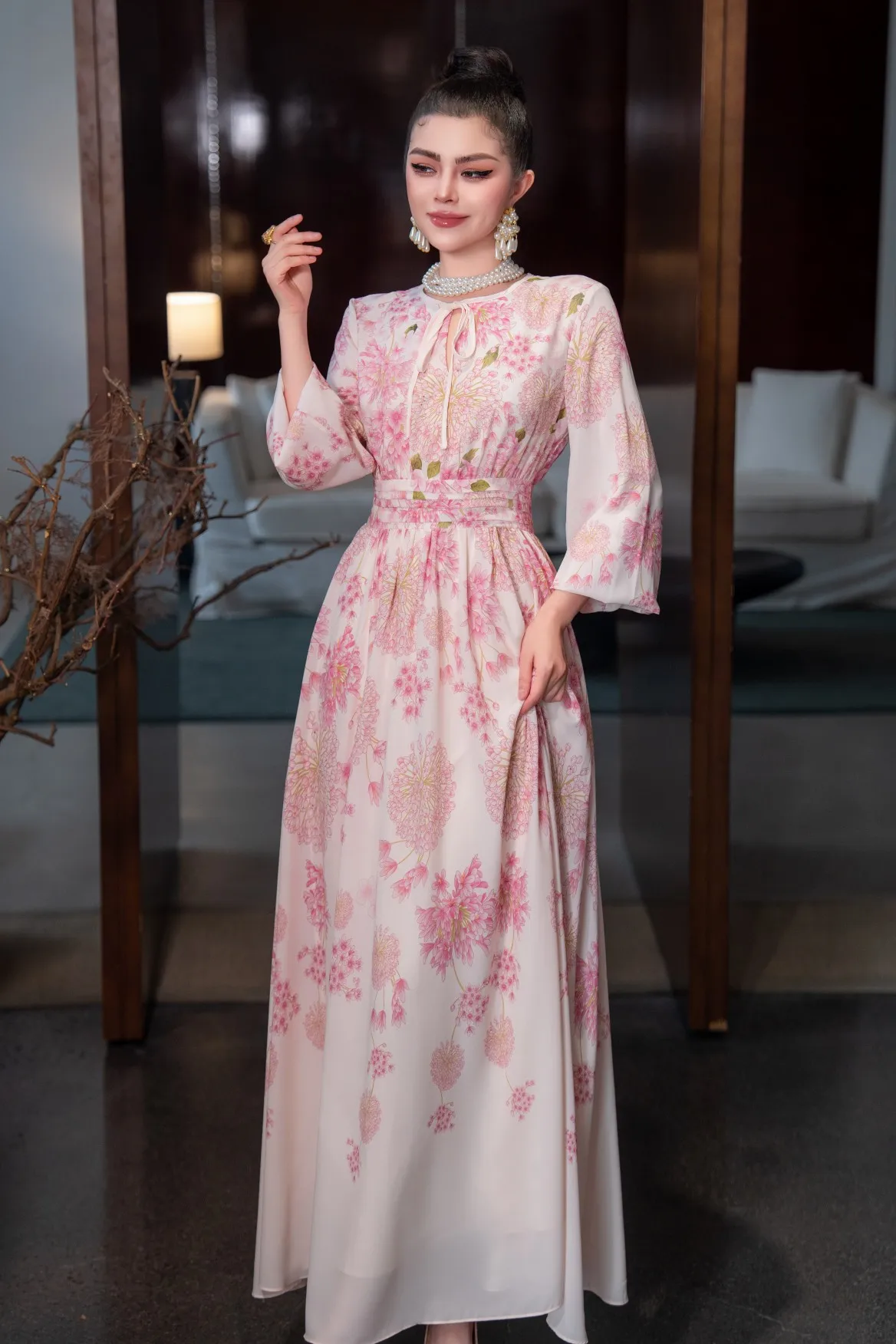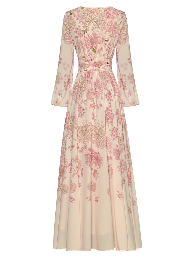ZJYT Runway Fashion Spring Women’s Maxi Dresses Long Sleeve Floral Print Elegant Holiday Party Dress Vestidos Para Mujer Female