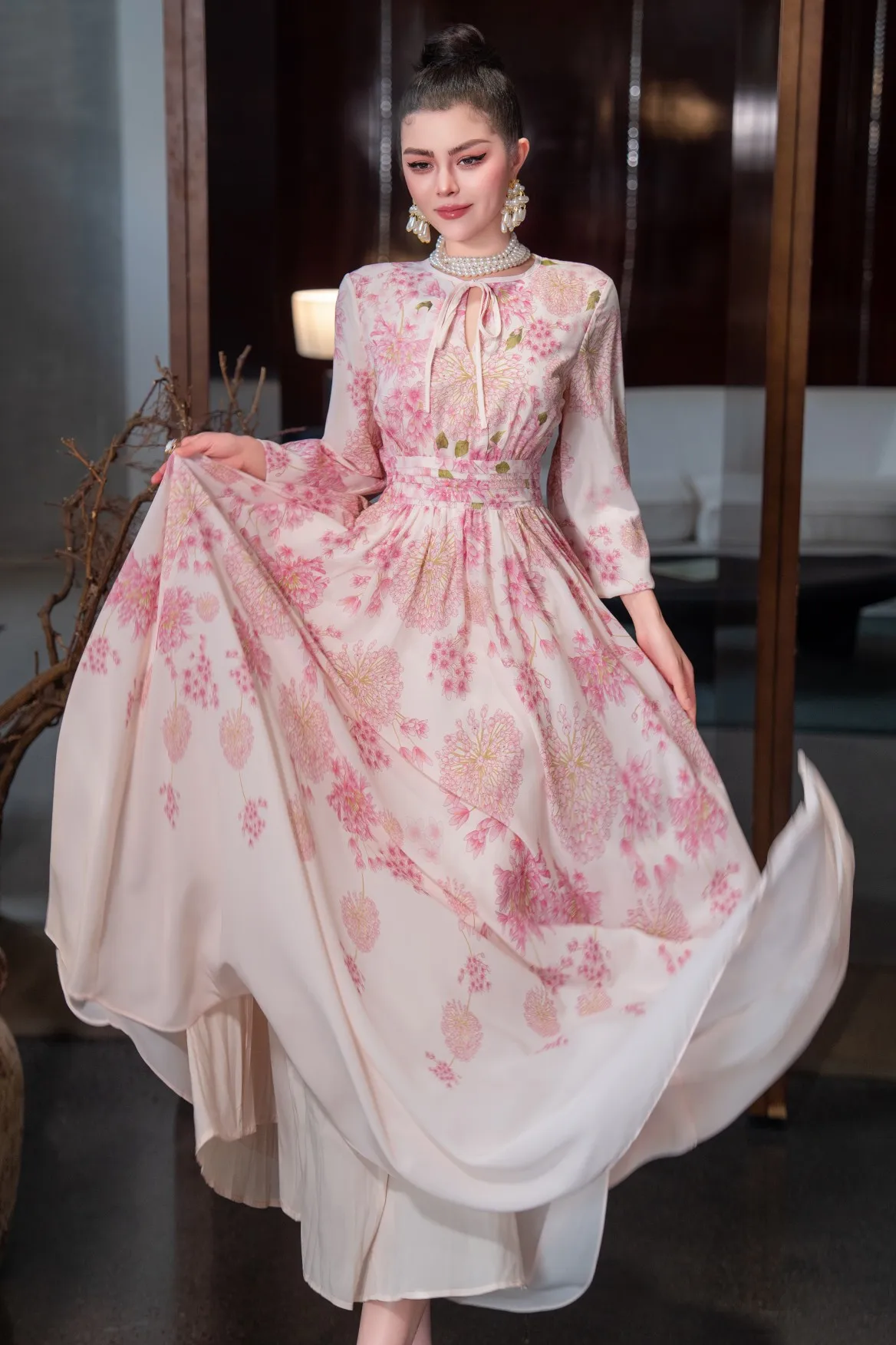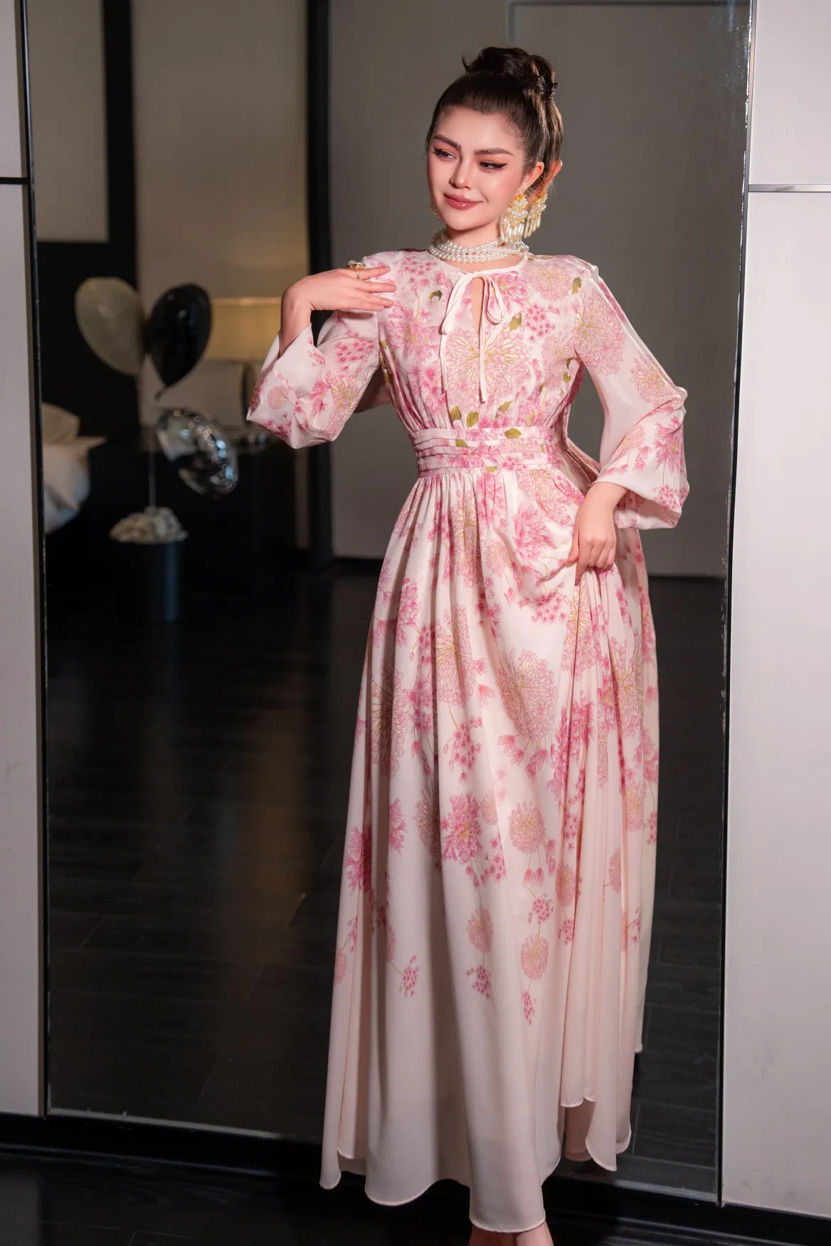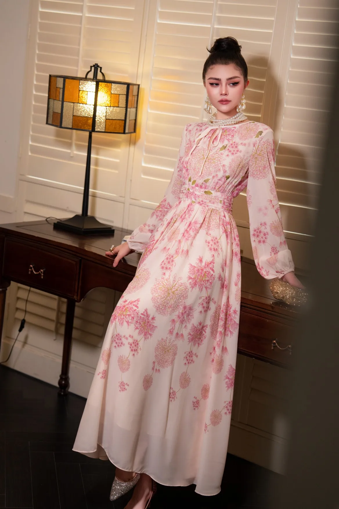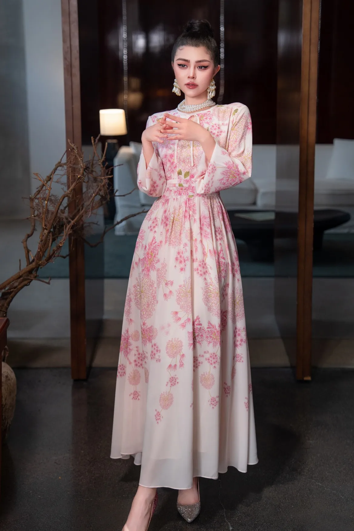 ZJYT Runway Fashion Spring Women’s Maxi Dresses Long Sleeve Floral Print Elegant Holiday Party Dress Vestidos Para Mujer Female