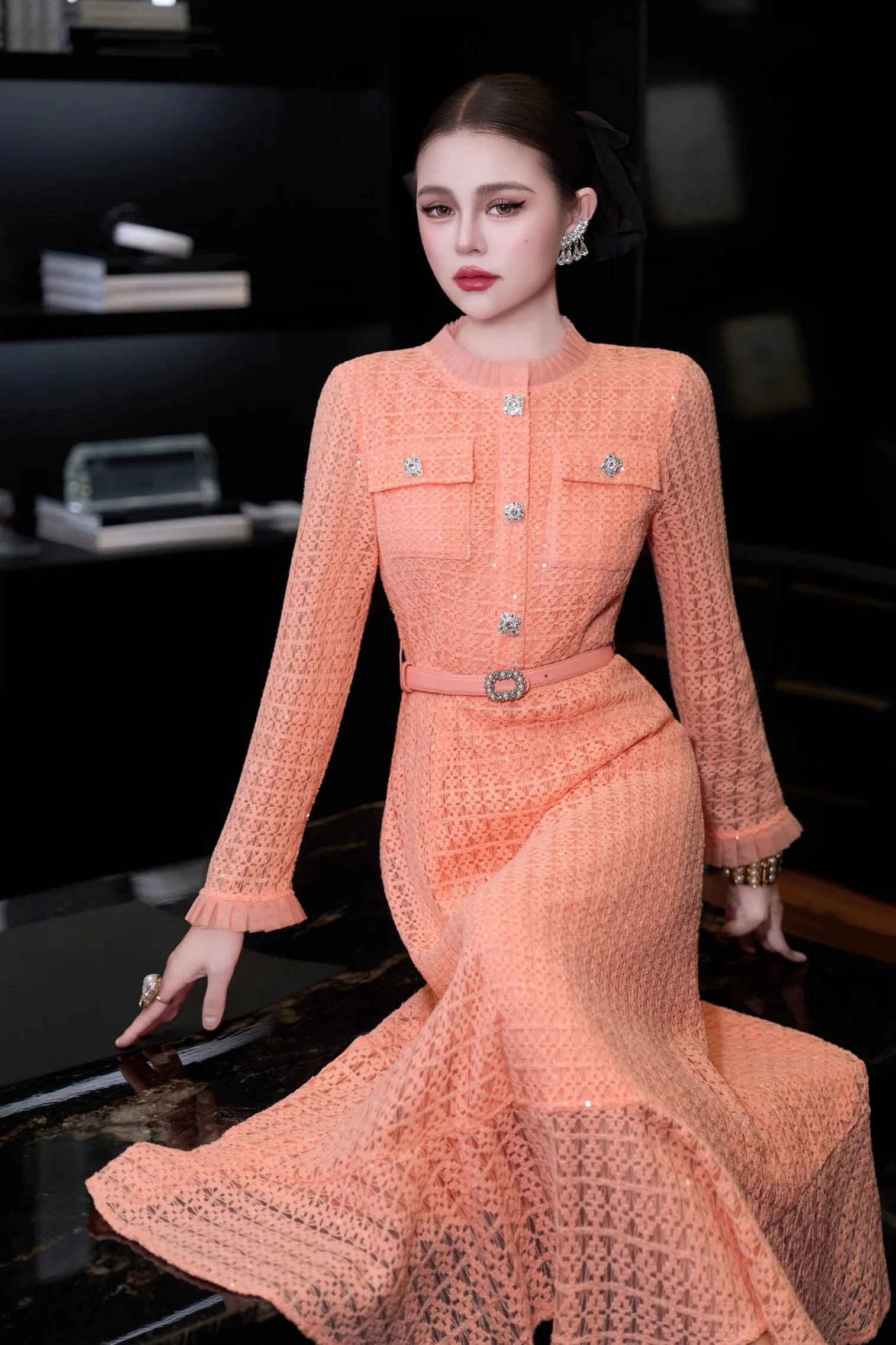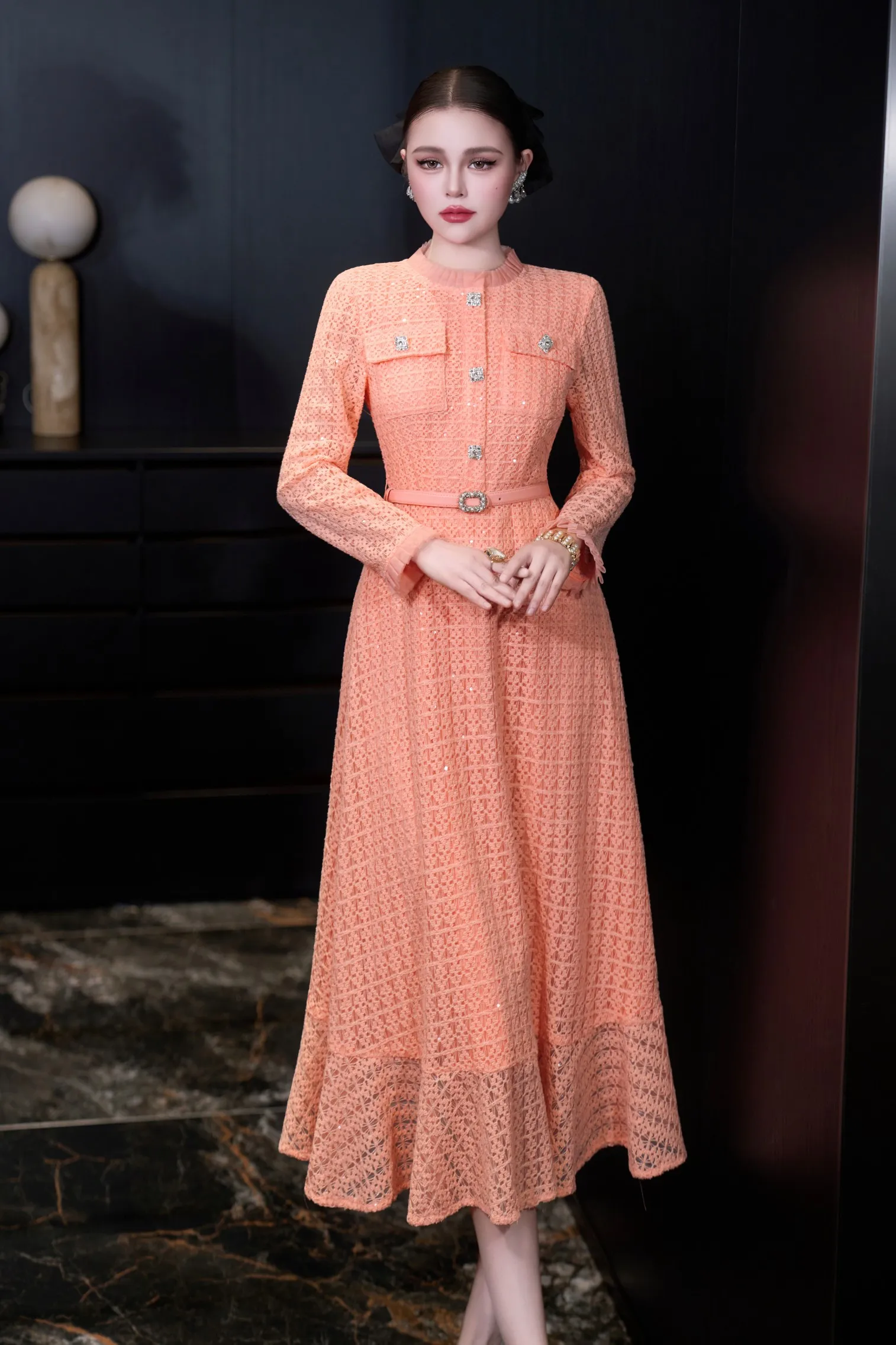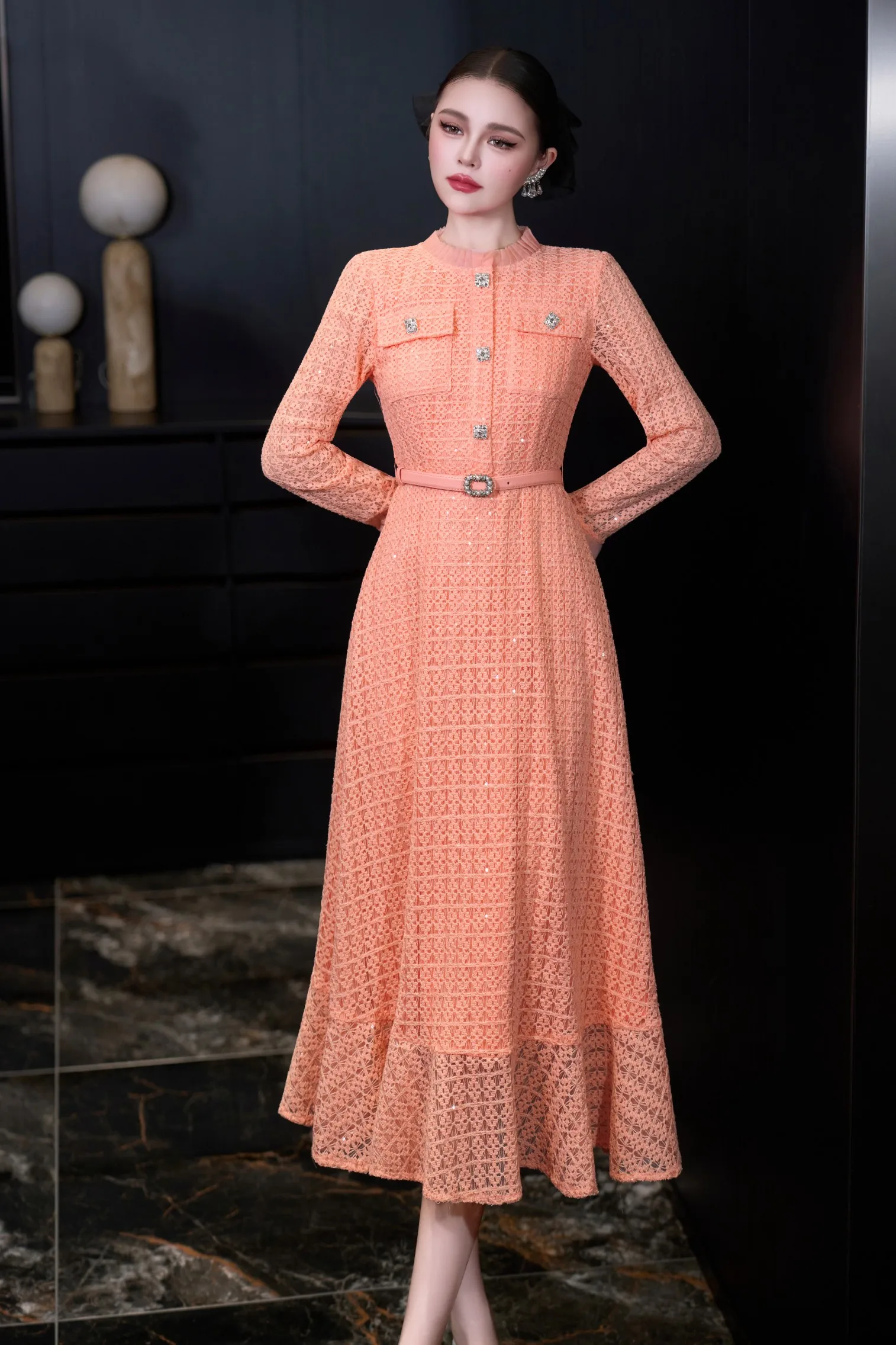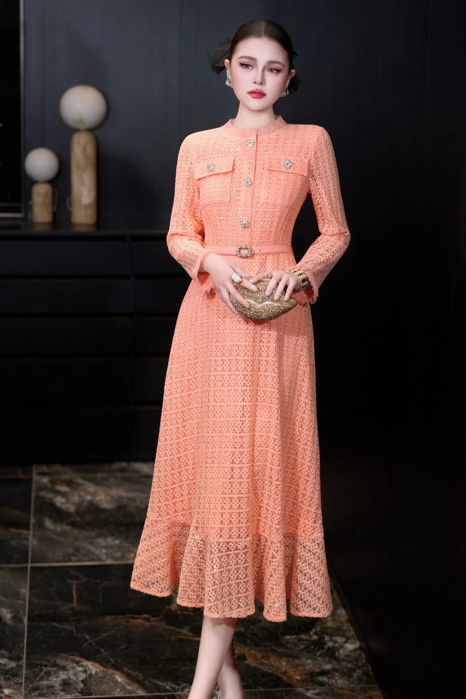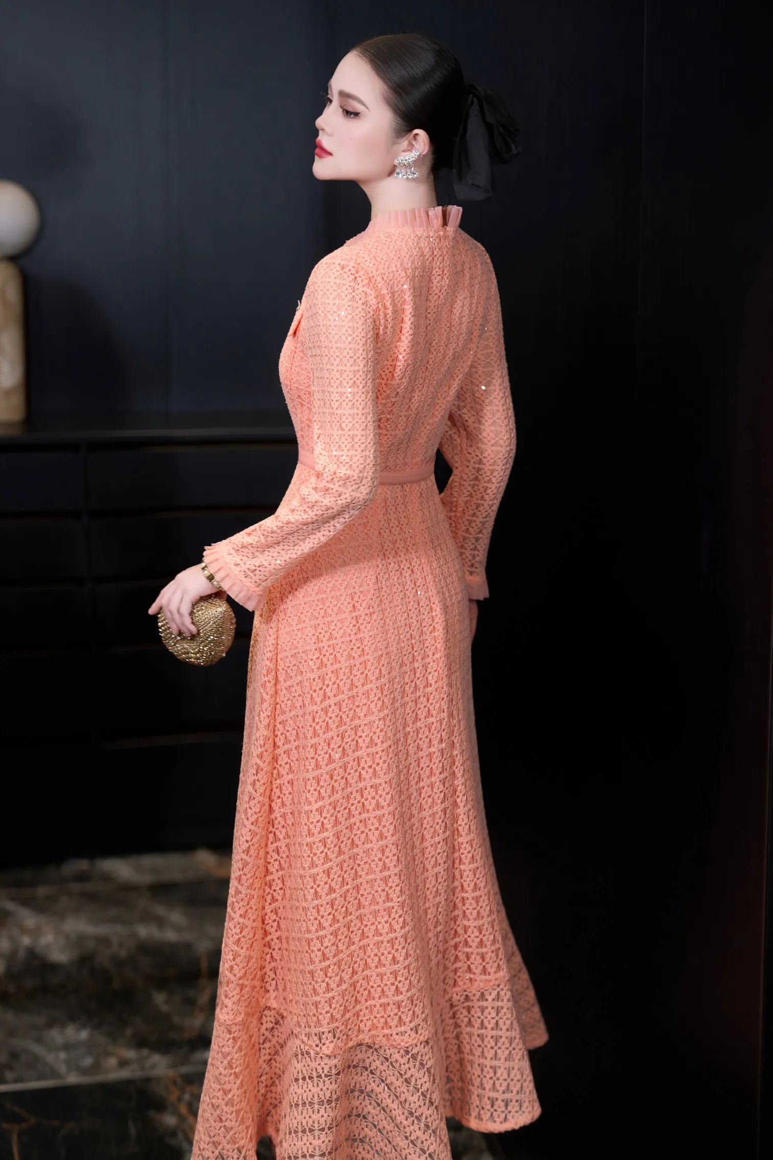 ZJYT Runway Fashion Women’s Sequined Lace Dresses Autumn 2025 New Designer Long Sleeve Elegant Midi Party Evening Dress White