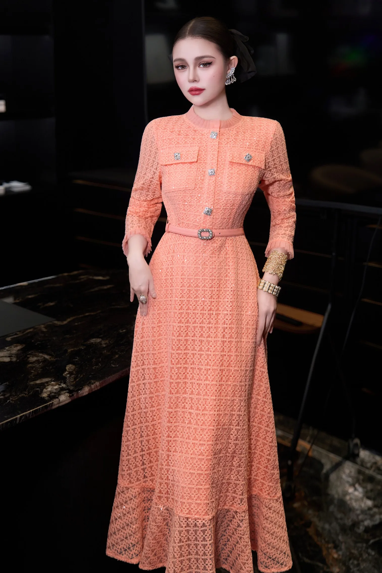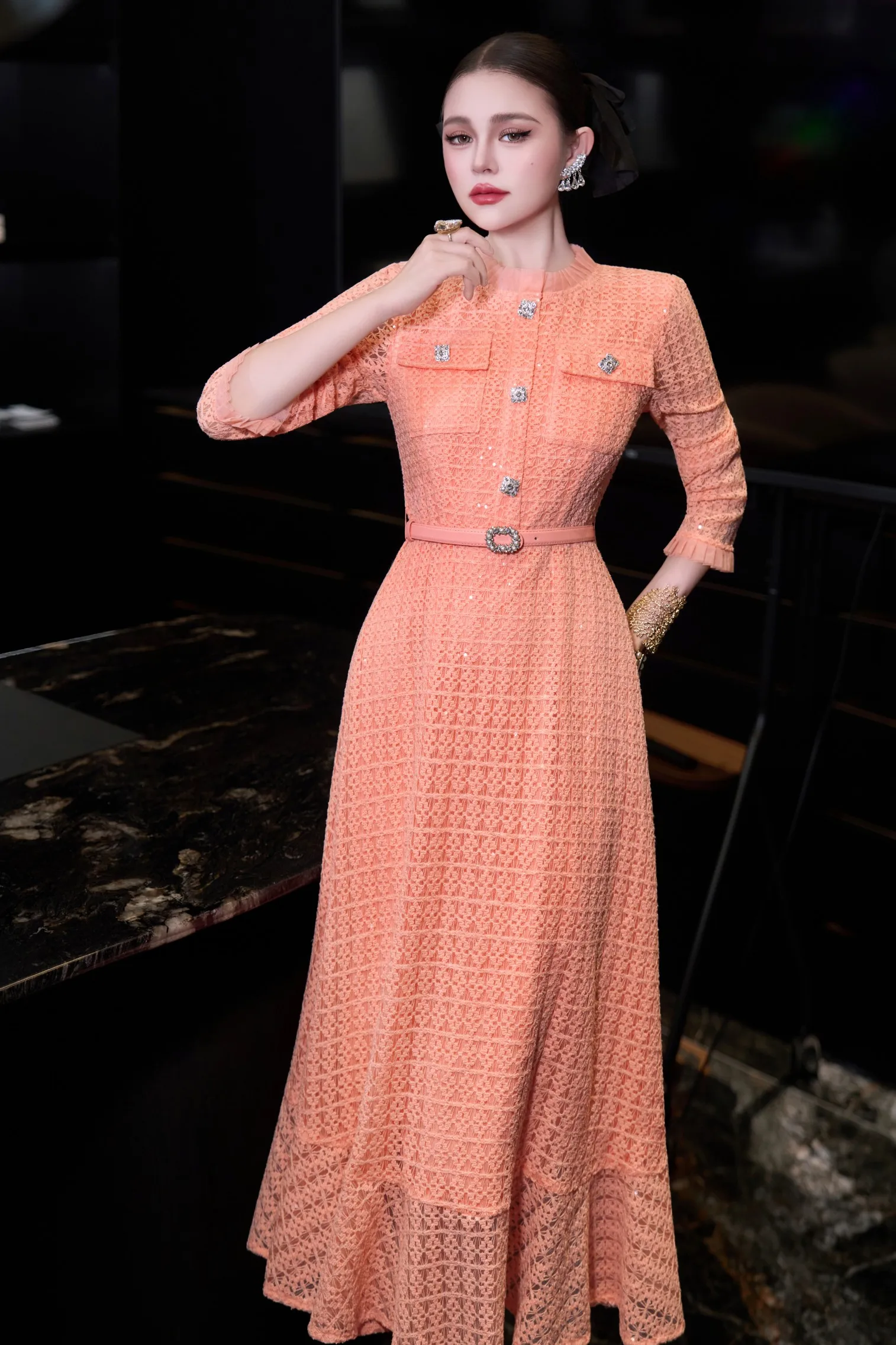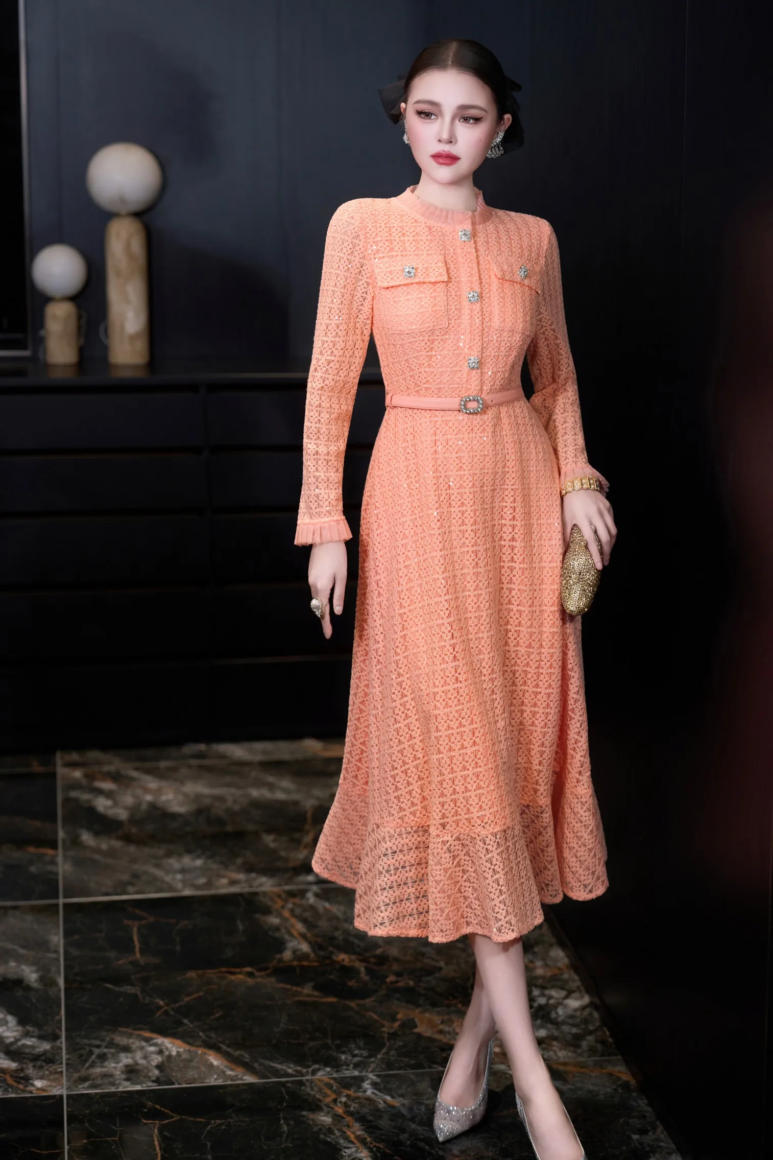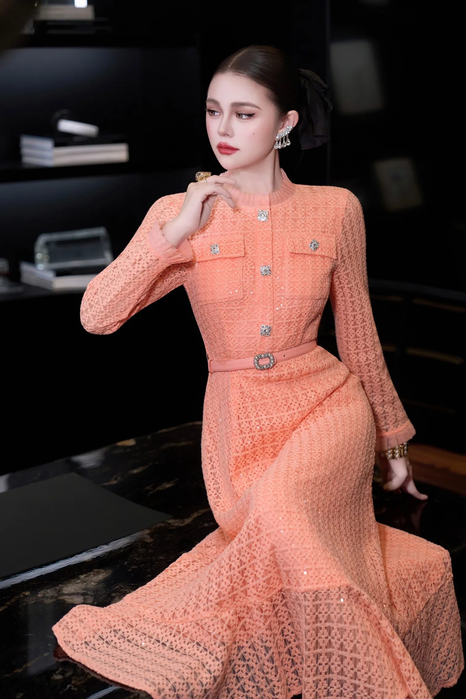ZJYT Runway Fashion Women’s Sequined Lace Dresses Autumn 2025 New Designer Long Sleeve Elegant Midi Party Evening Dress White
