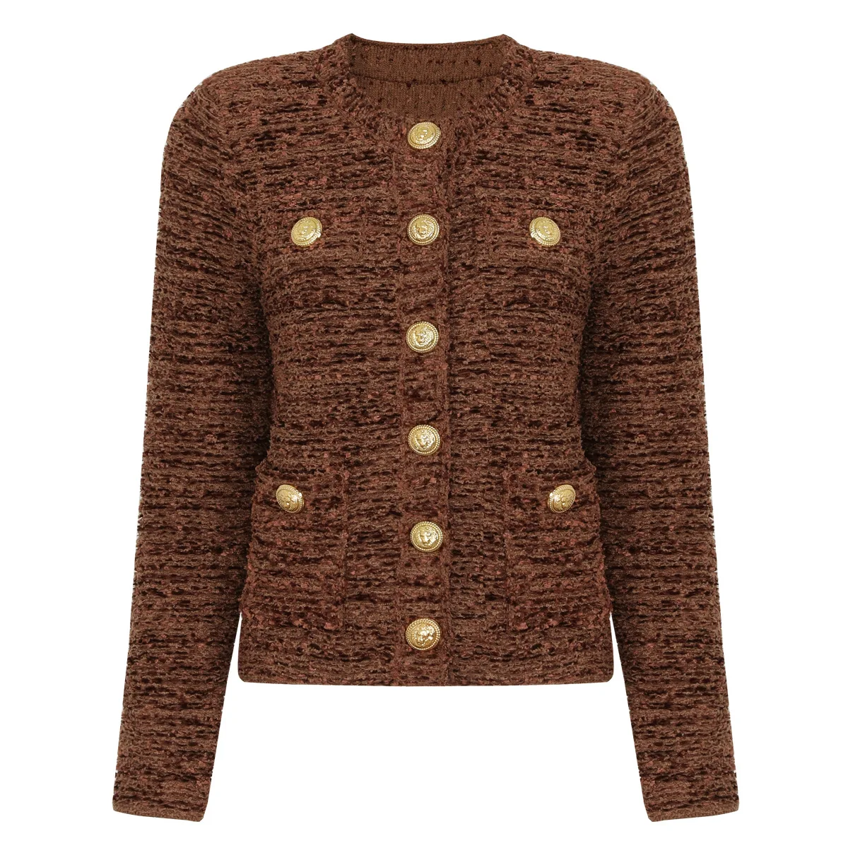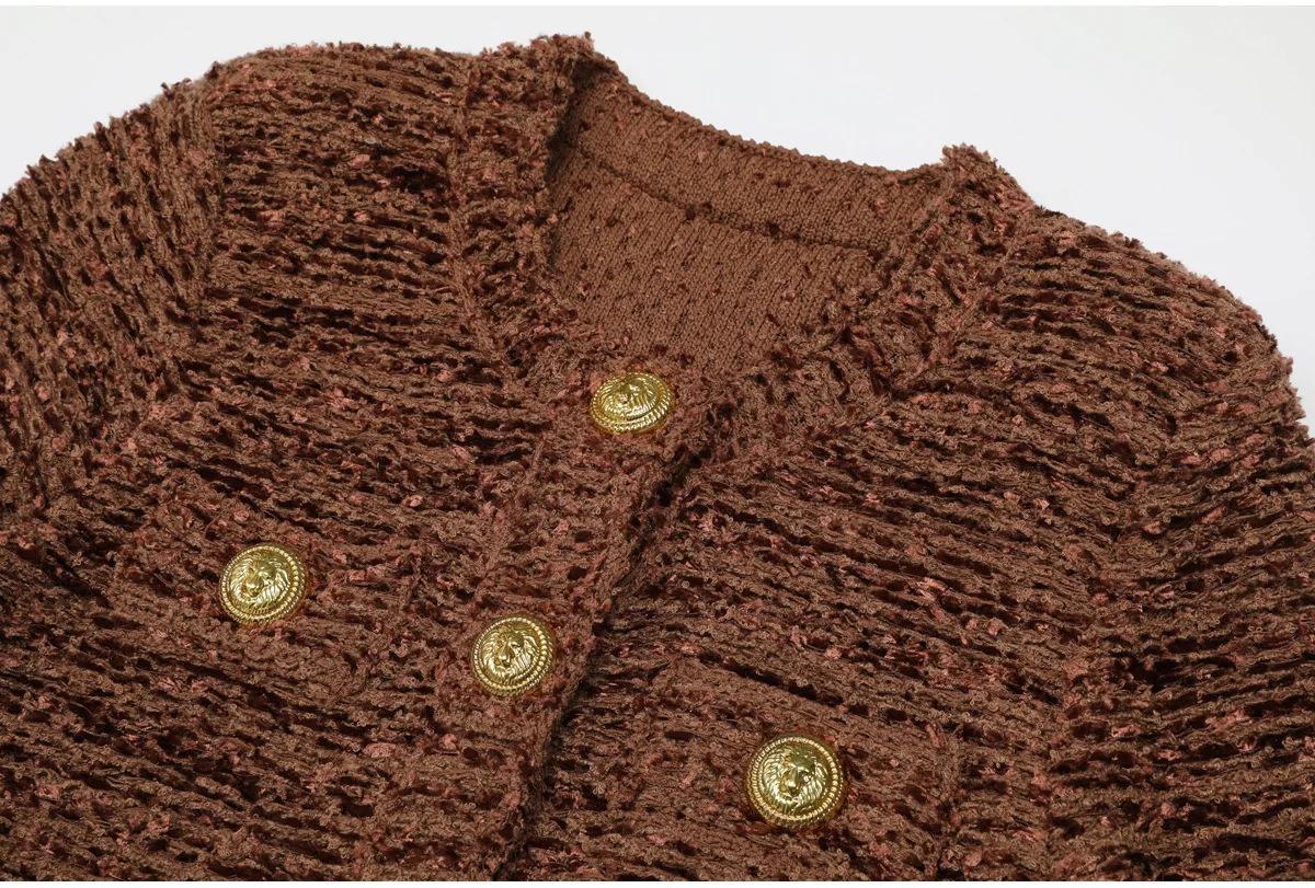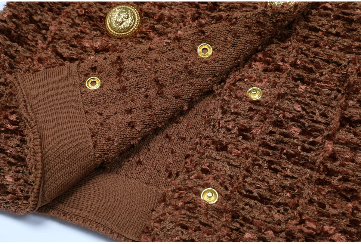 ZJYT Spring Autumn Women’s Knit Tops Long Sleeve Vintage Cardigan Sweaters Coat Fashion Knitwears Brown Jumper Jersey Mujer Lady