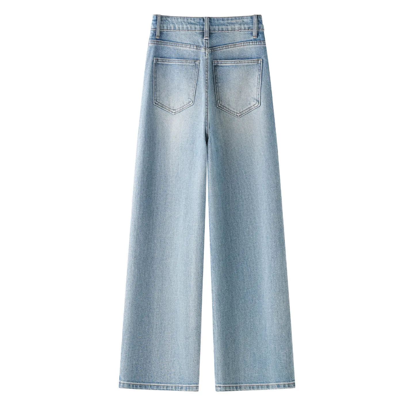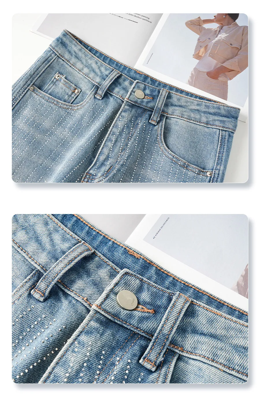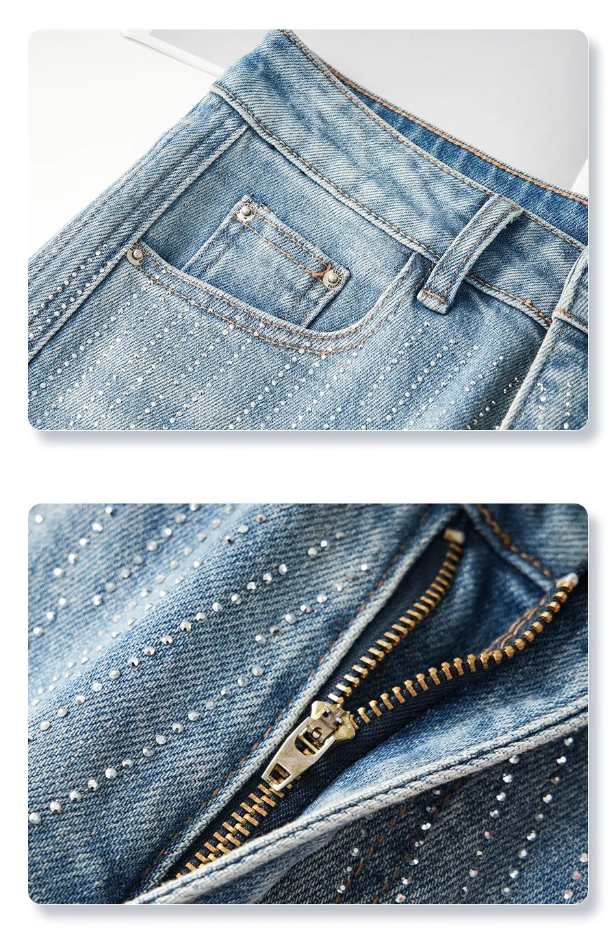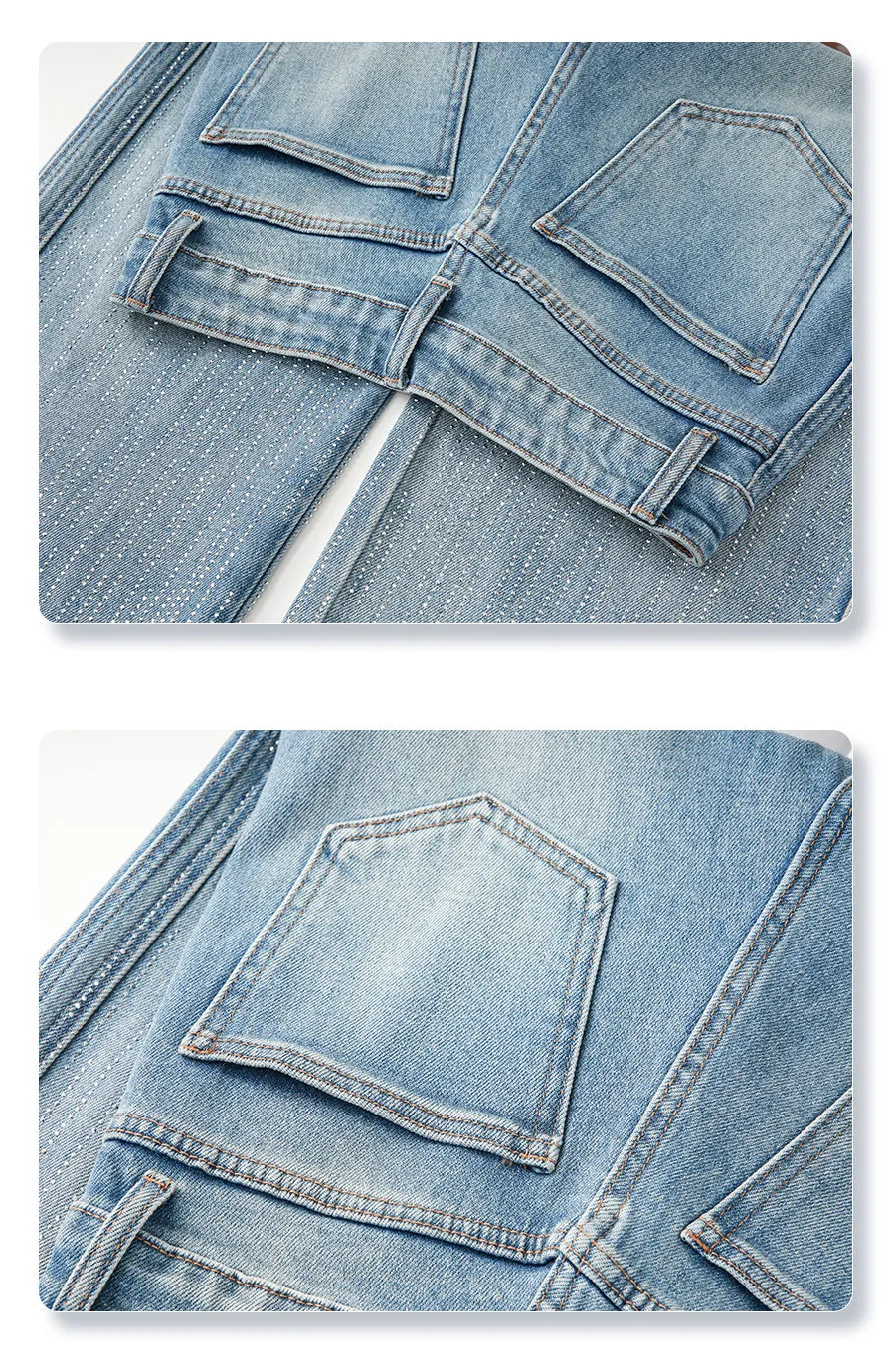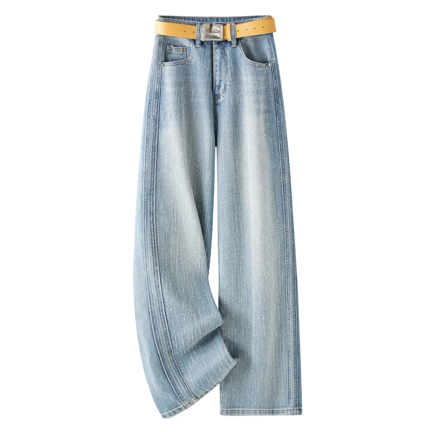 ZJYT Spring Diamonds Wide Leg Jeans for Women Fashion Street Style Denim Pants Blue Woman Clothes Trousers Female Bottoms Casual
