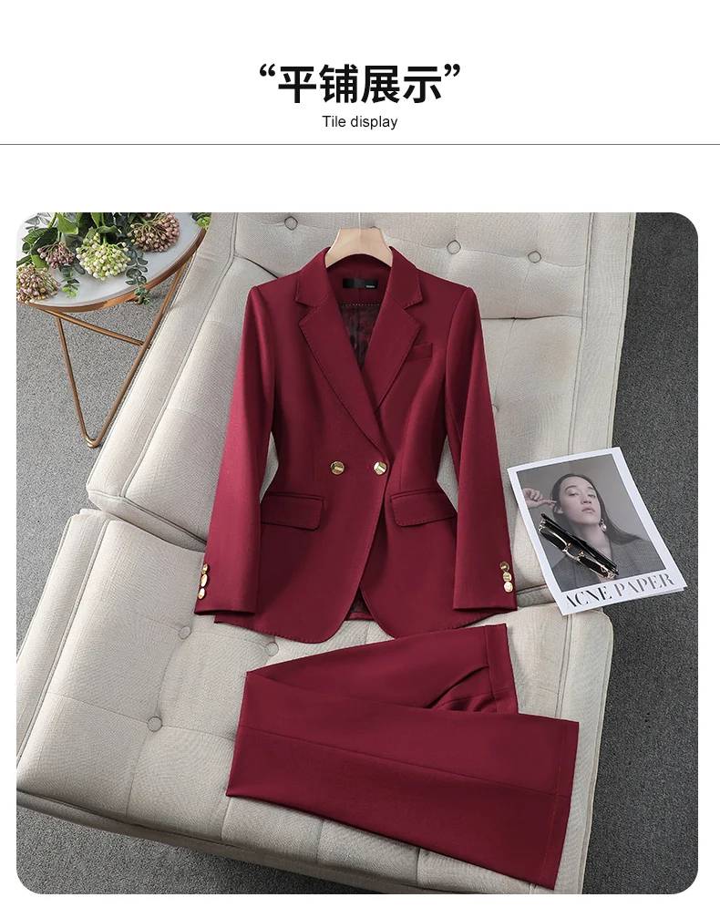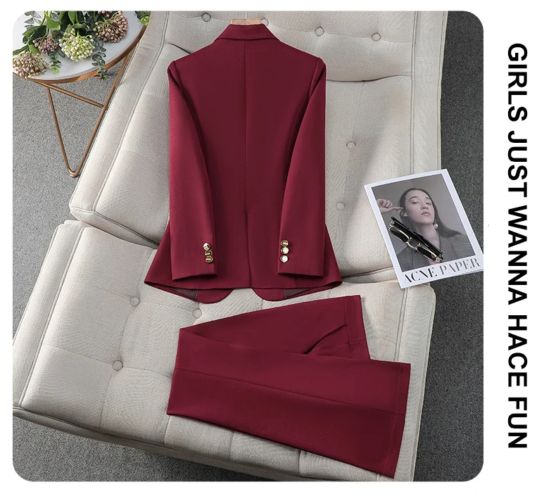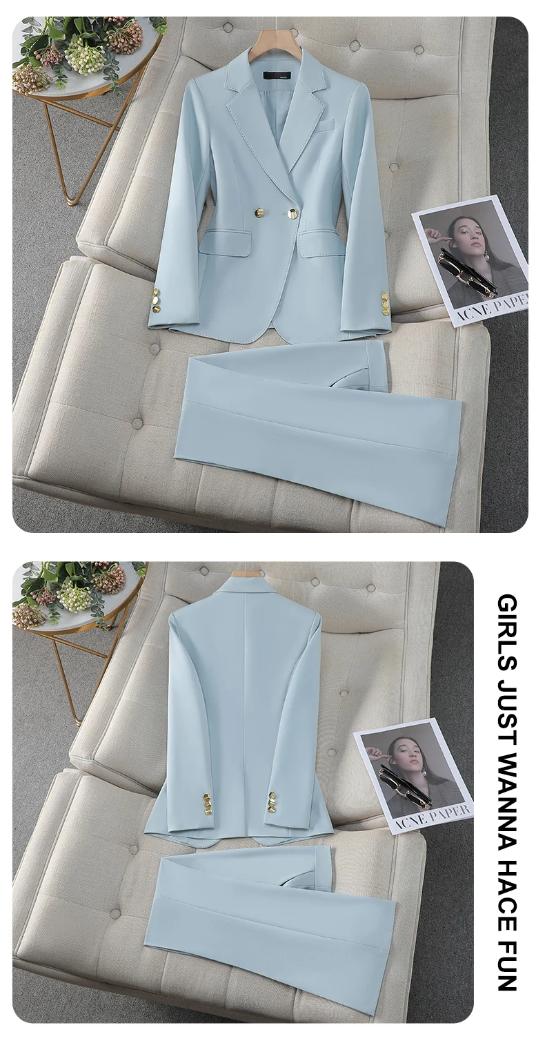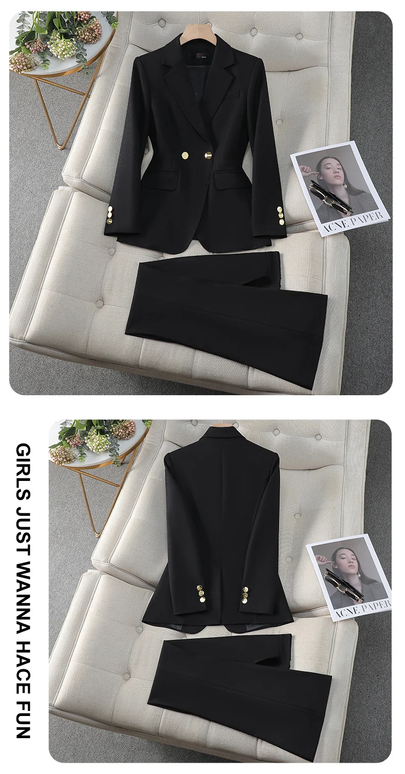 ZJYT Spring Lady Business Chic Formal Blazer Suit Set 2 Piece Woman Elegant New Outfit Pants Sets Trousers Office Wear Plus Size