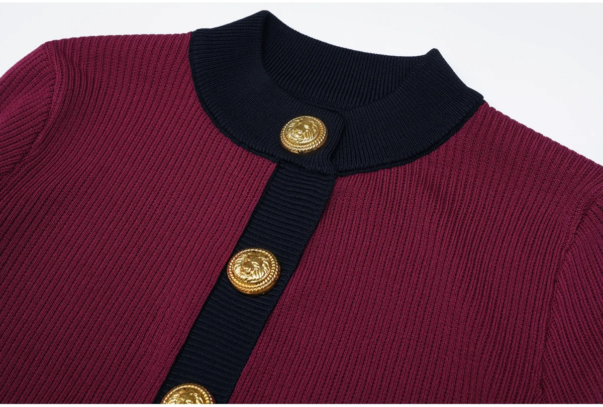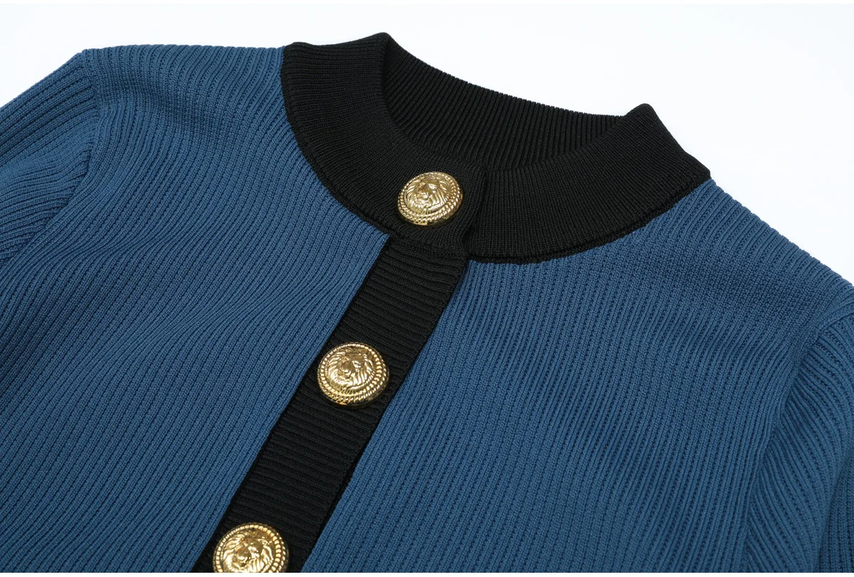 ZJYT Spring New Knit Tops Women Fashion Long Sleeve Hit Color Knitwear Cardigan Coat Sweaters Female Jersey Lady Jumper Red Blue