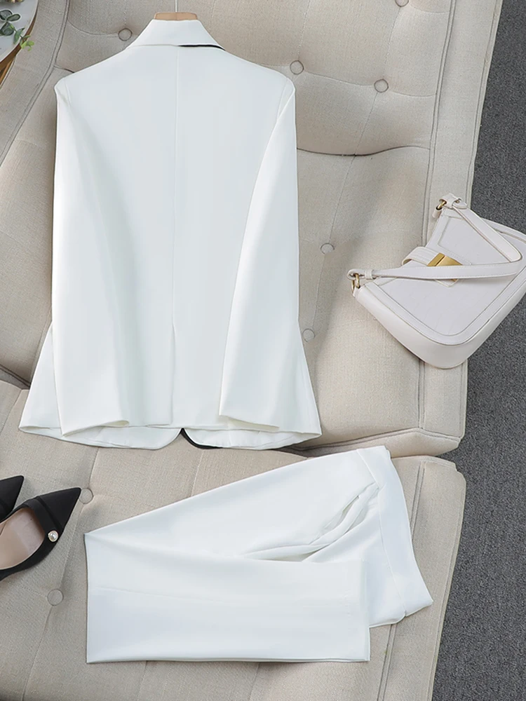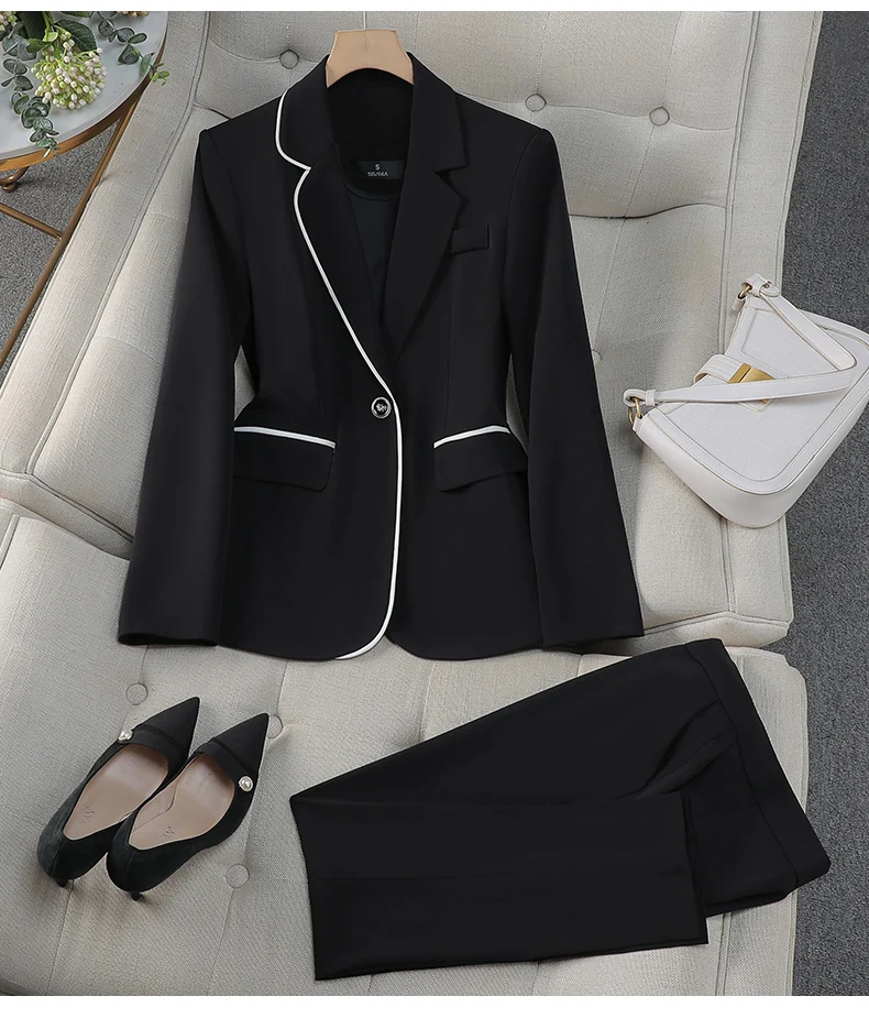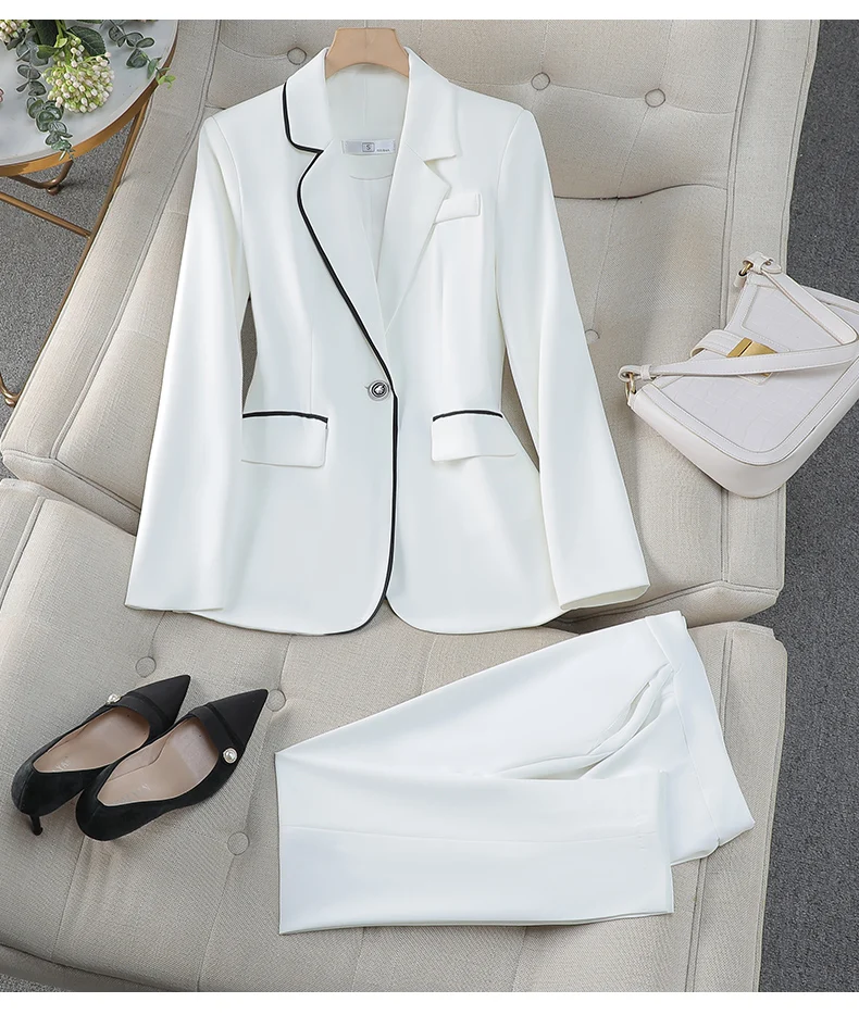 ZJYT Spring New Office Lady Blazer Trousers Sets Women’s Suit Pants Sets Elegant Conjuntos Para Mujeres 2 Piezas Business Outfit