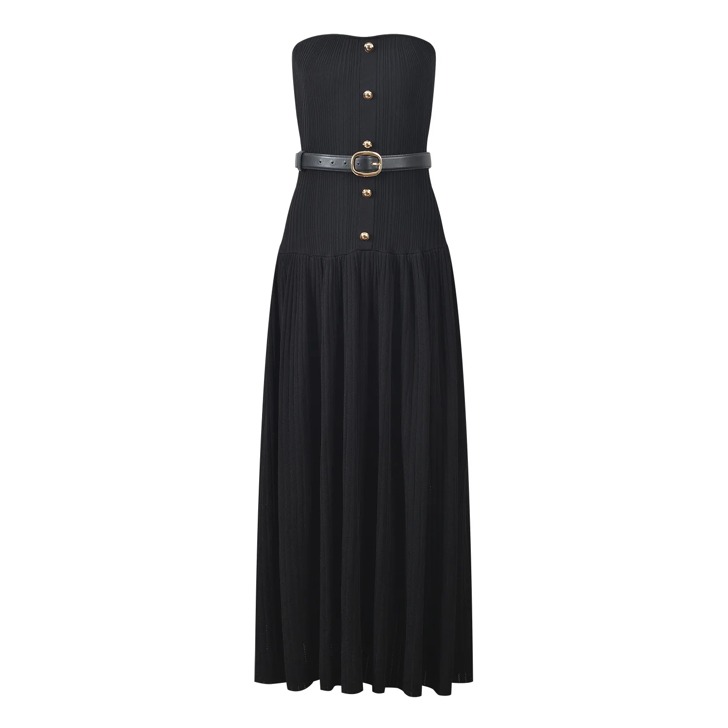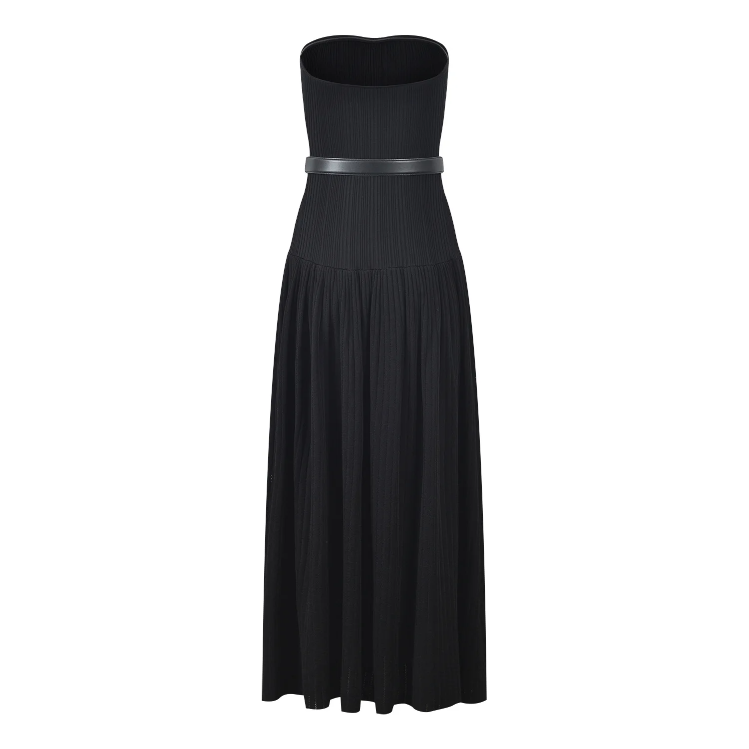 ZJYT Spring Summer Strapless Long Knitting Sweater Dresses for Women 2026 Fashion Elegant Sexy Party Dress Black Vestidos Female