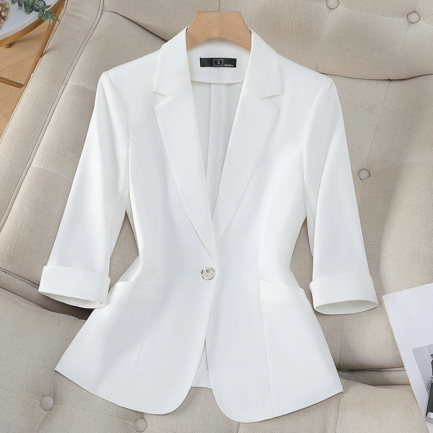 ZJYT Spring Summer White Blazers for Women New Outerwear Woman Coats and Jackets Casual Office Lady Female Suits Tops Plus Size