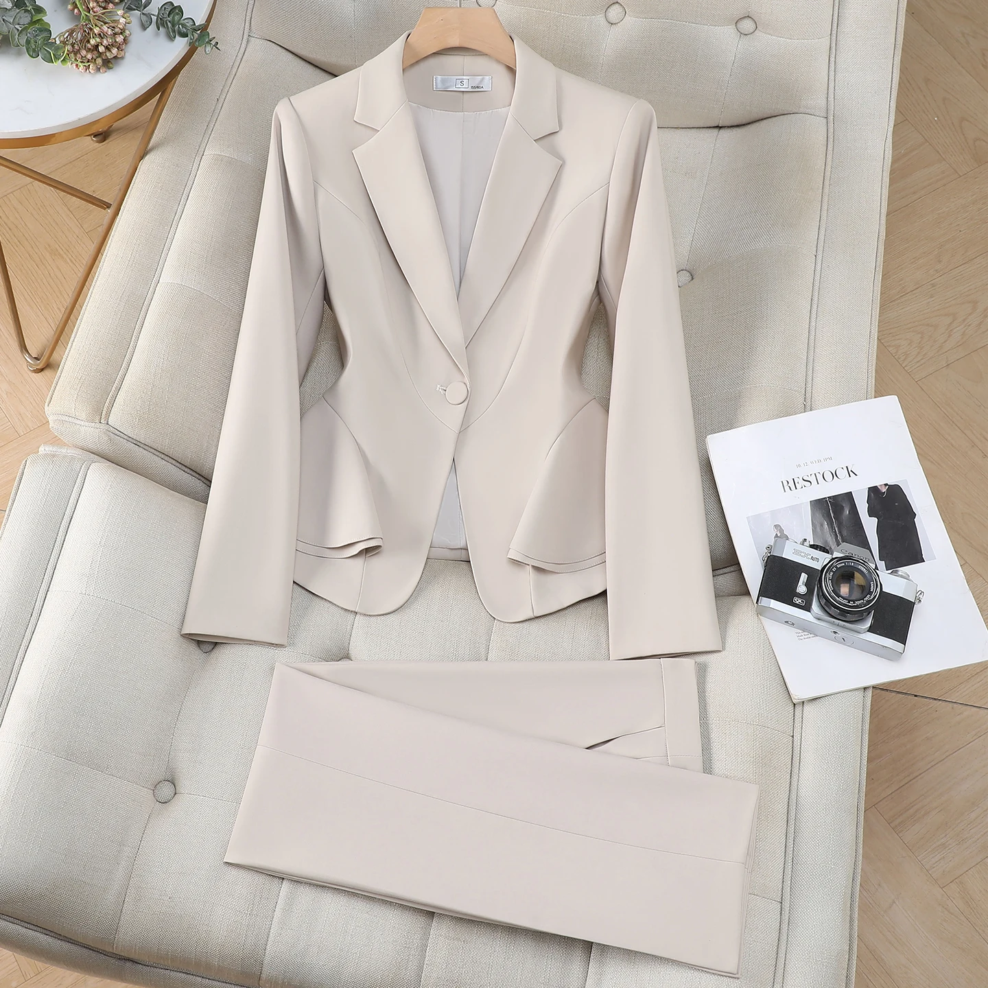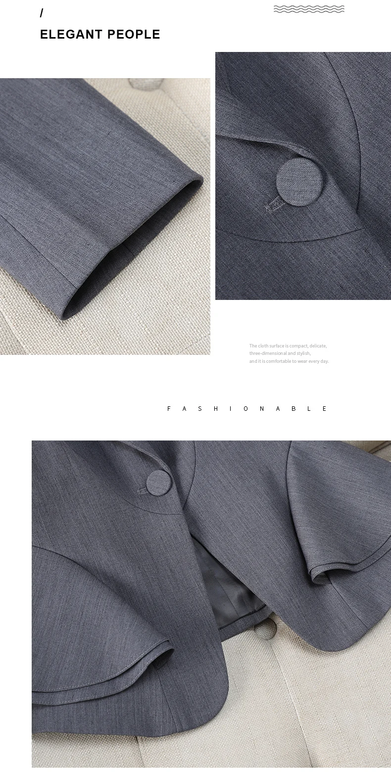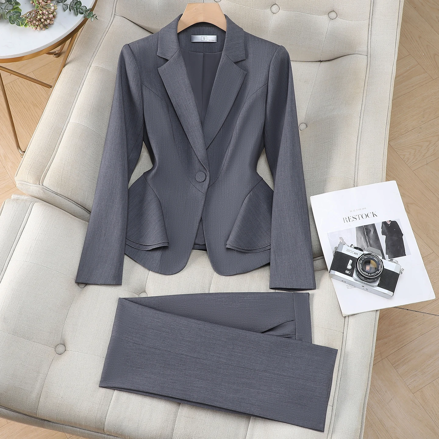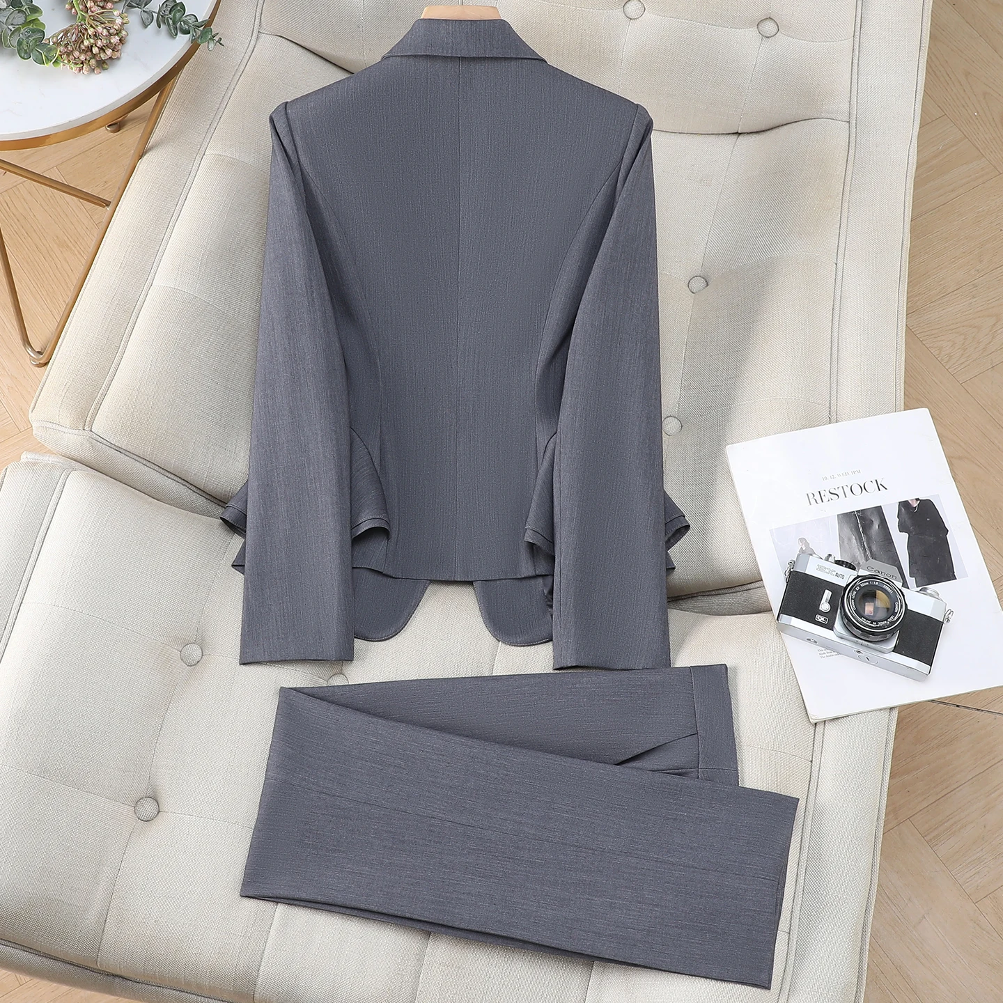 ZJYT Spring Women’s Formal Business Suits Blazer and Pants Set Two Piece Outfit Elegant Chic Lady Office Wear Trousers Sets Grey