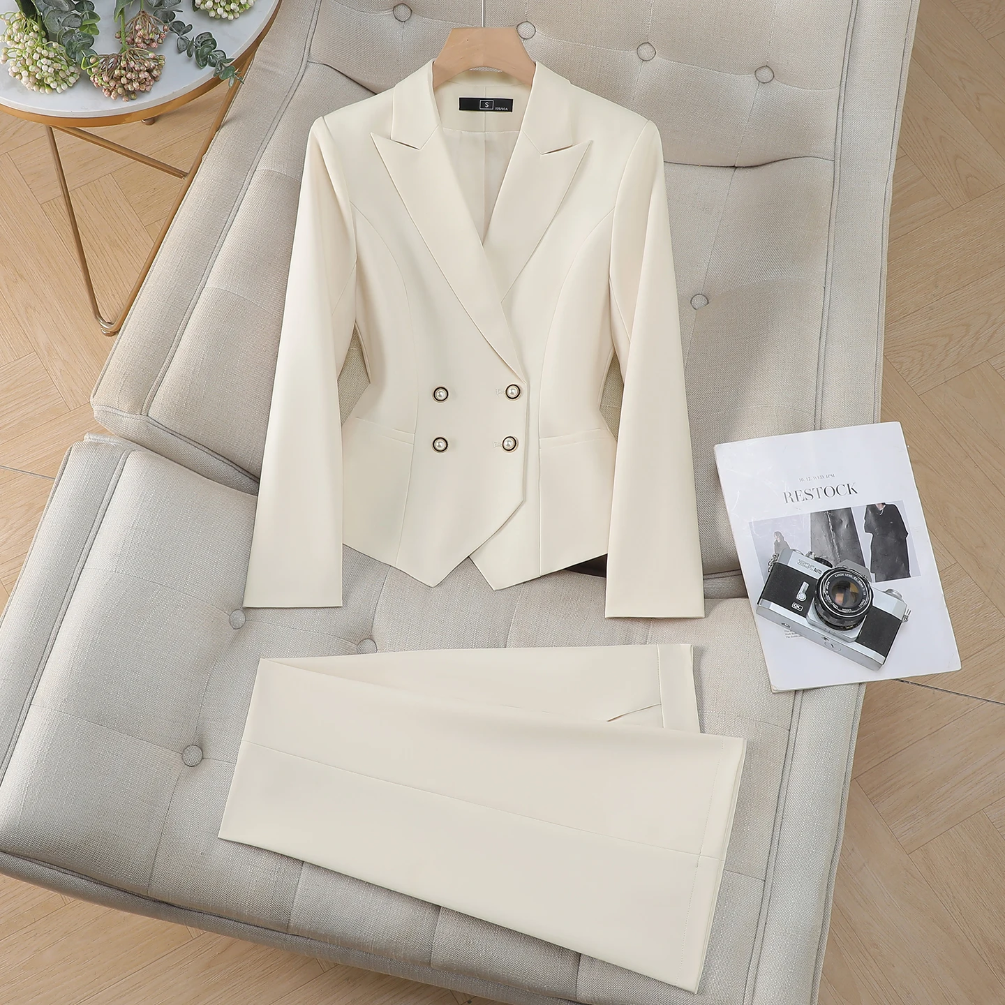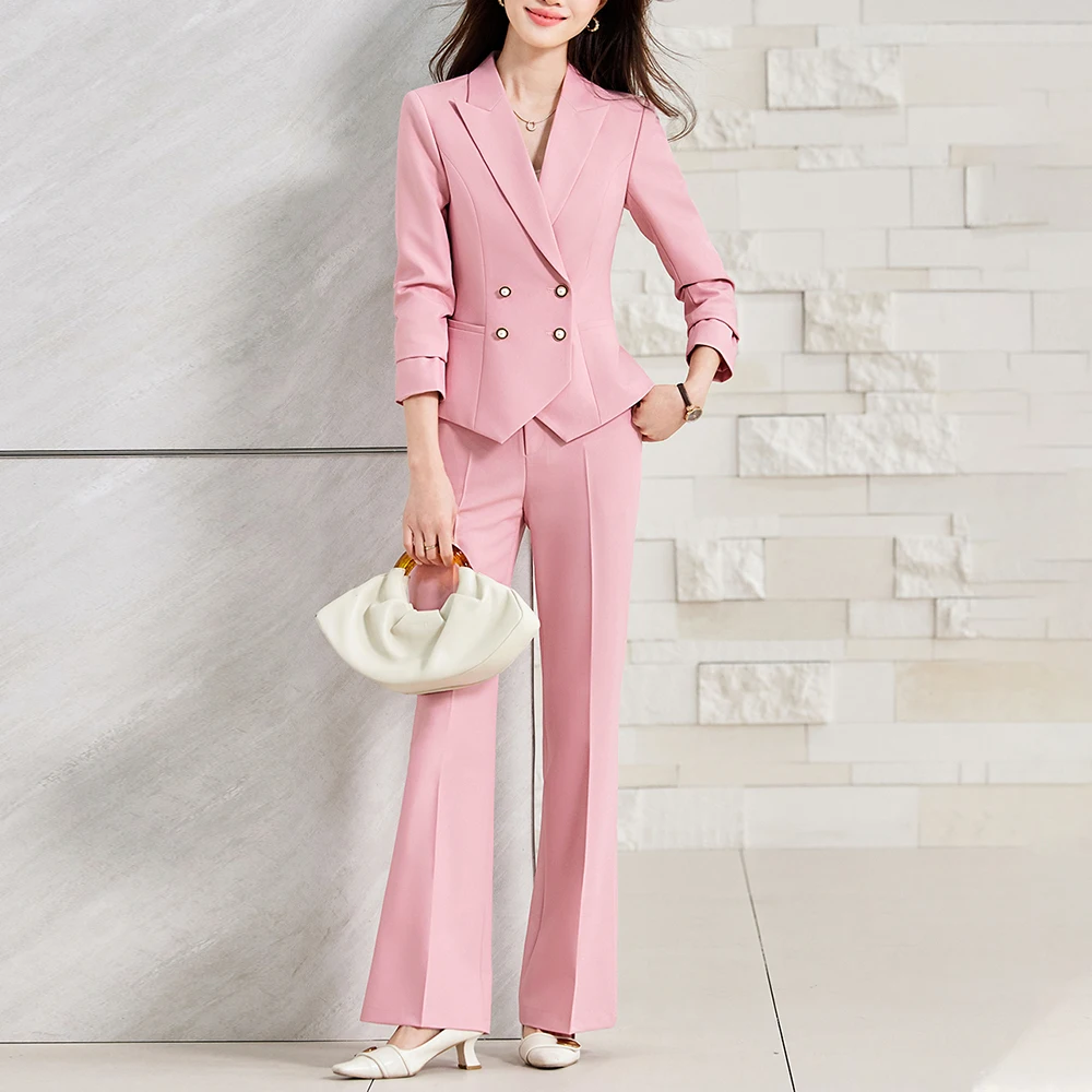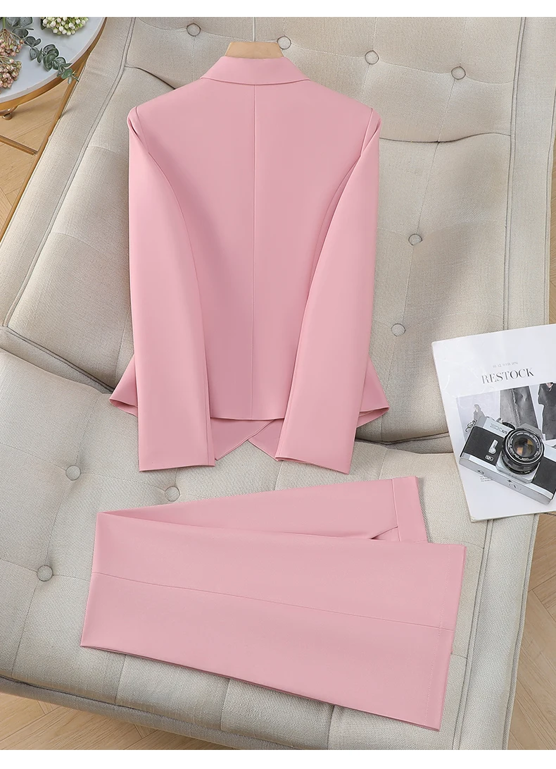ZJYT Spring Women’s Suit Pants Set 2 Piece Woman Elegant Chic Classic Pink Outfit New Fashion Lady Trousers Female Office Wear