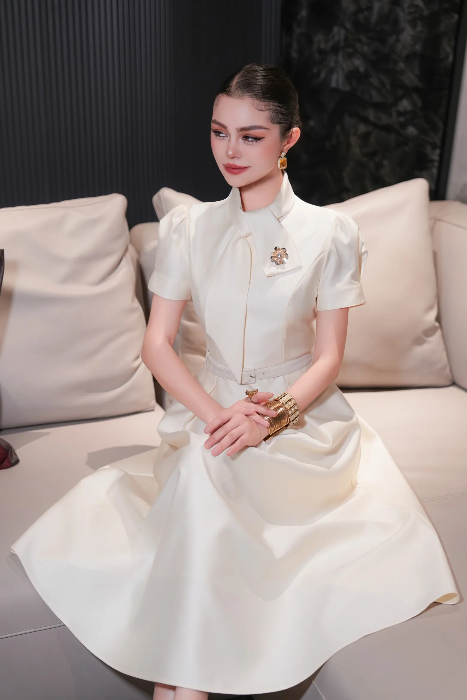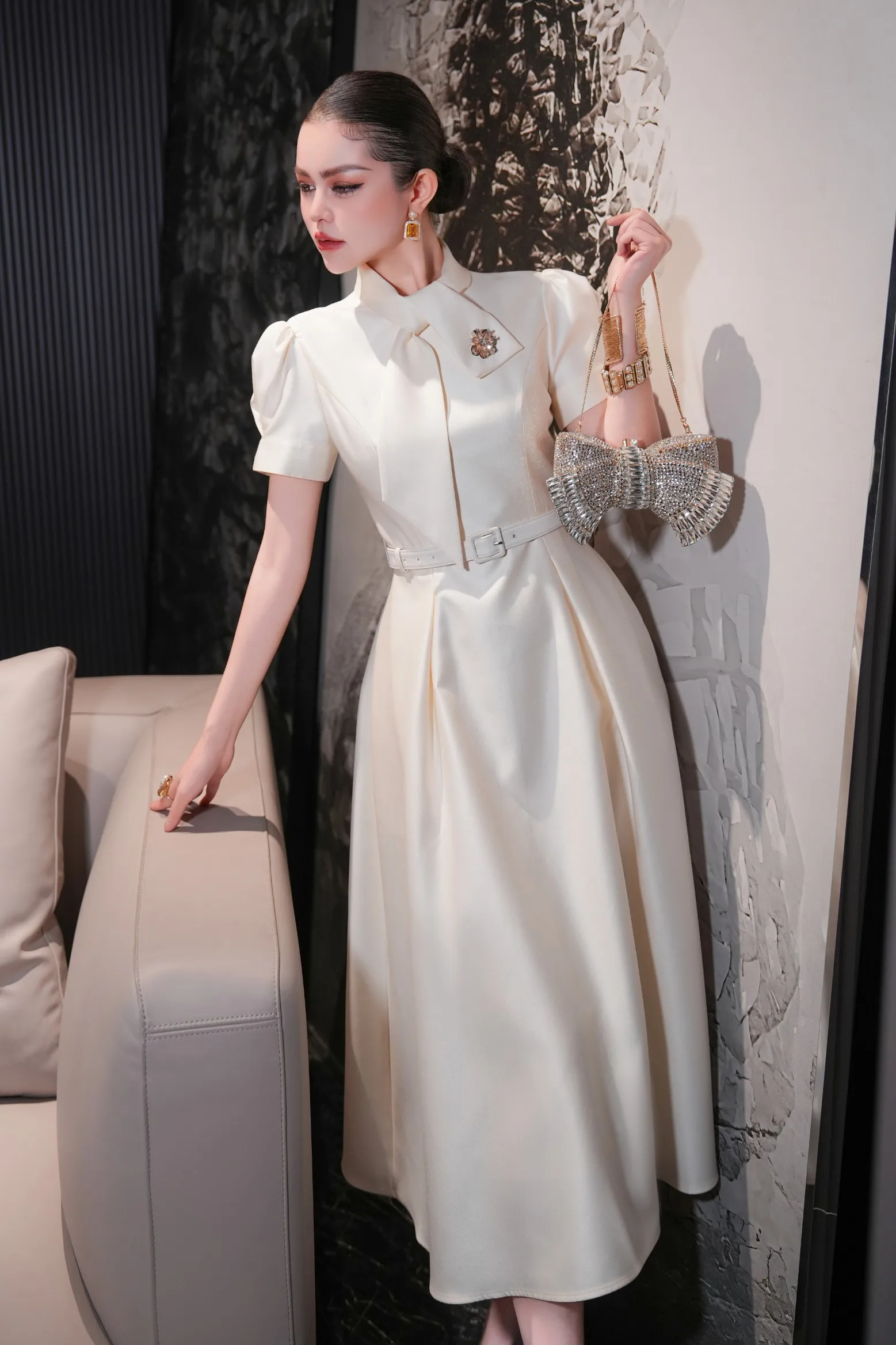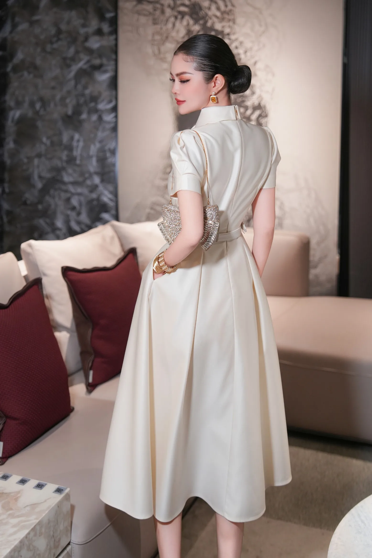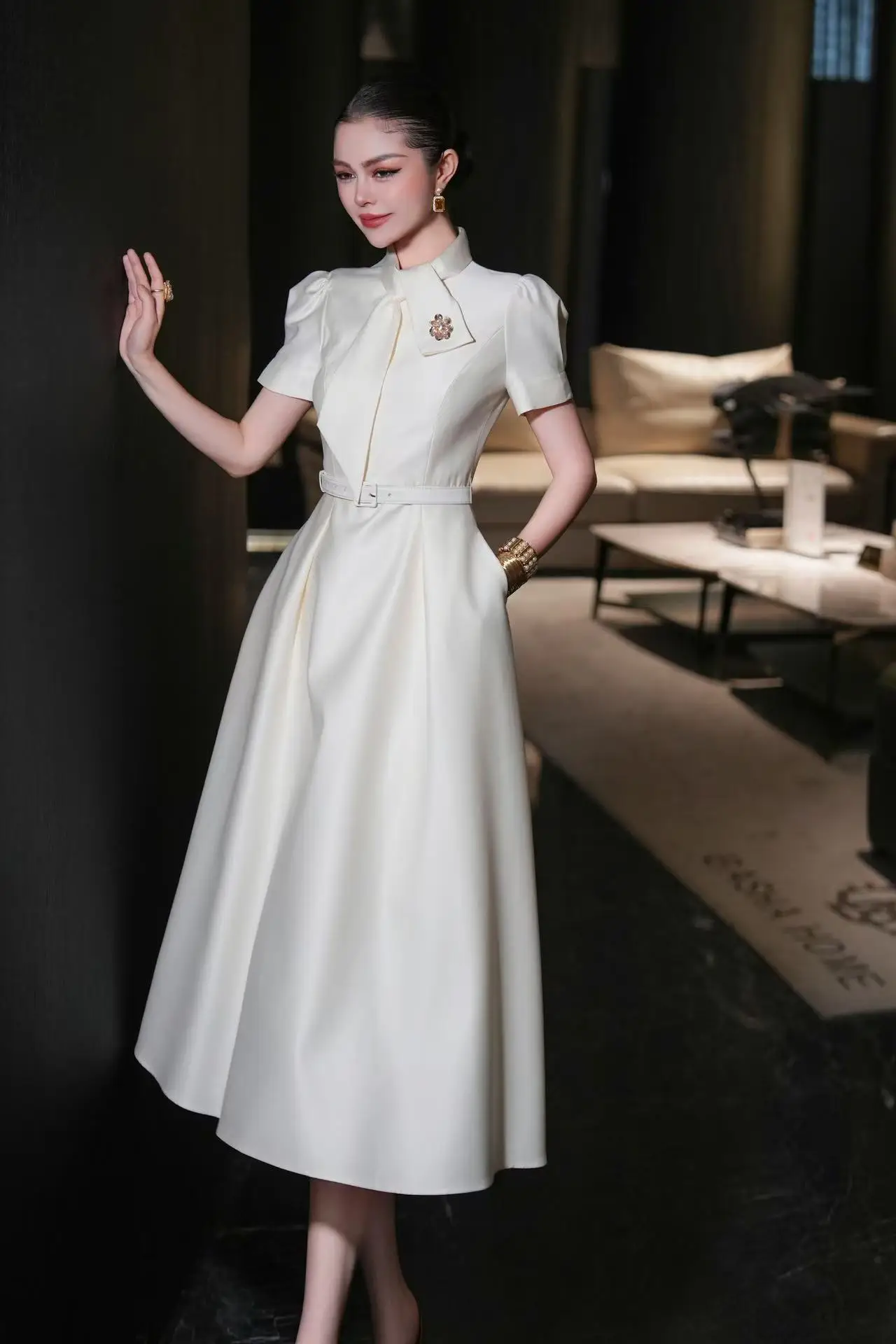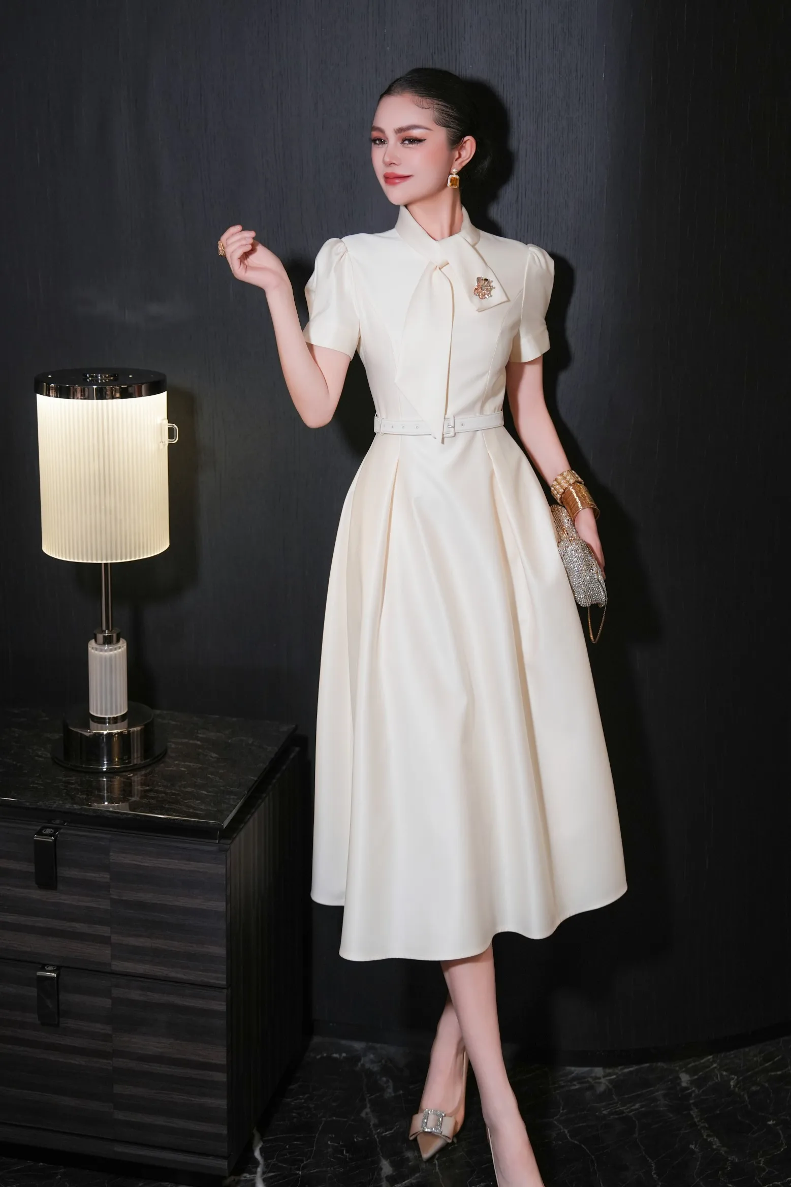 ZJYT Sweet Pink Bow Collar Dress for Women Short Sleeve Midi Formal Party Aline Vestidos Elegant Spring Summer Designer 2025 New