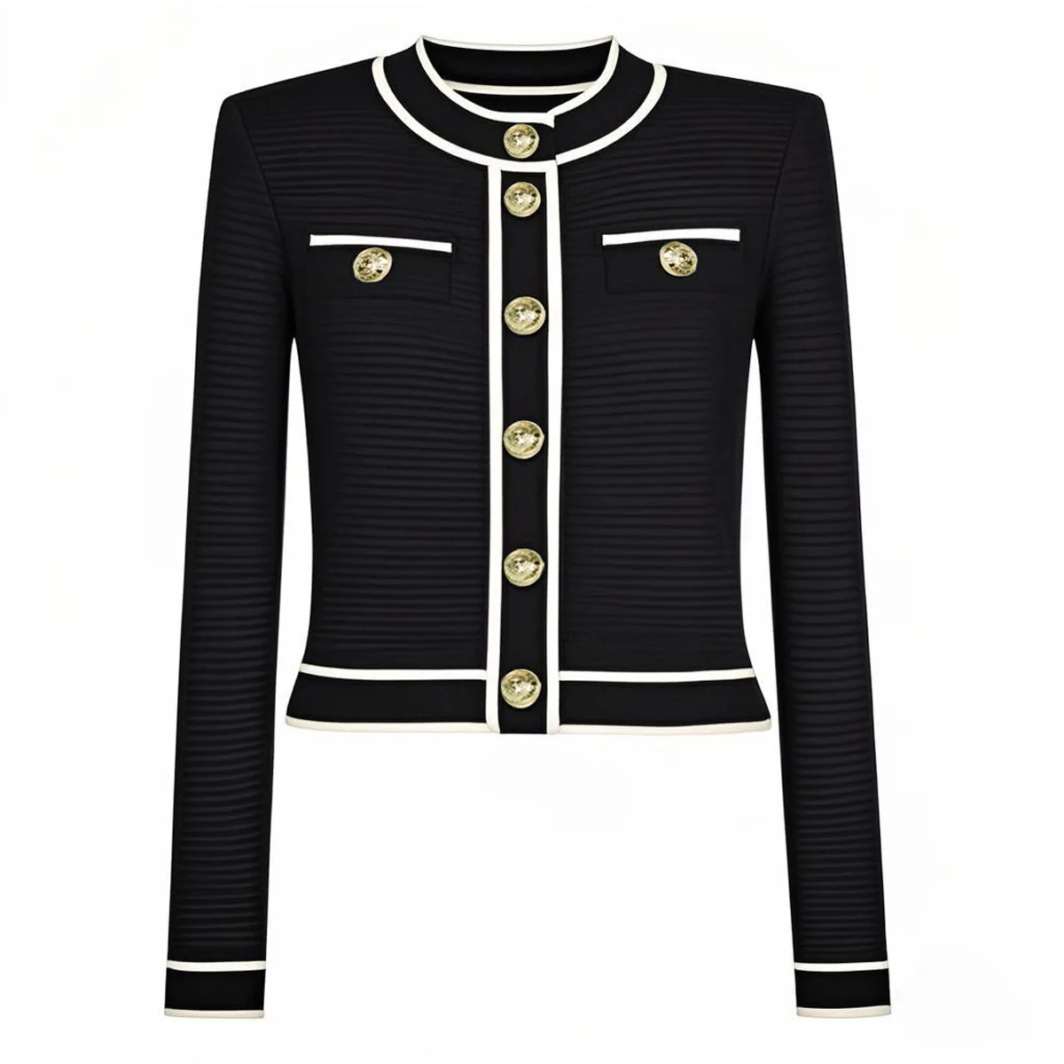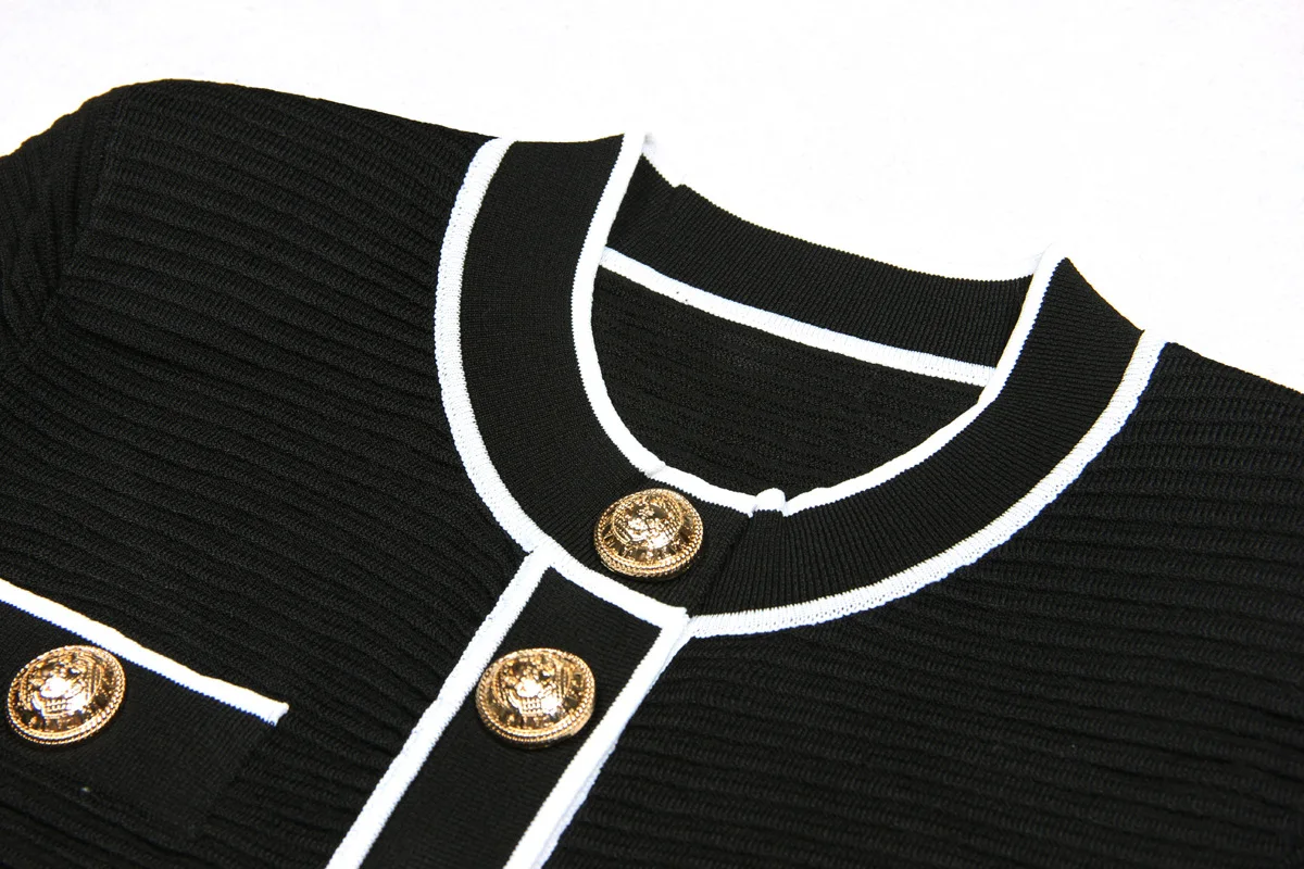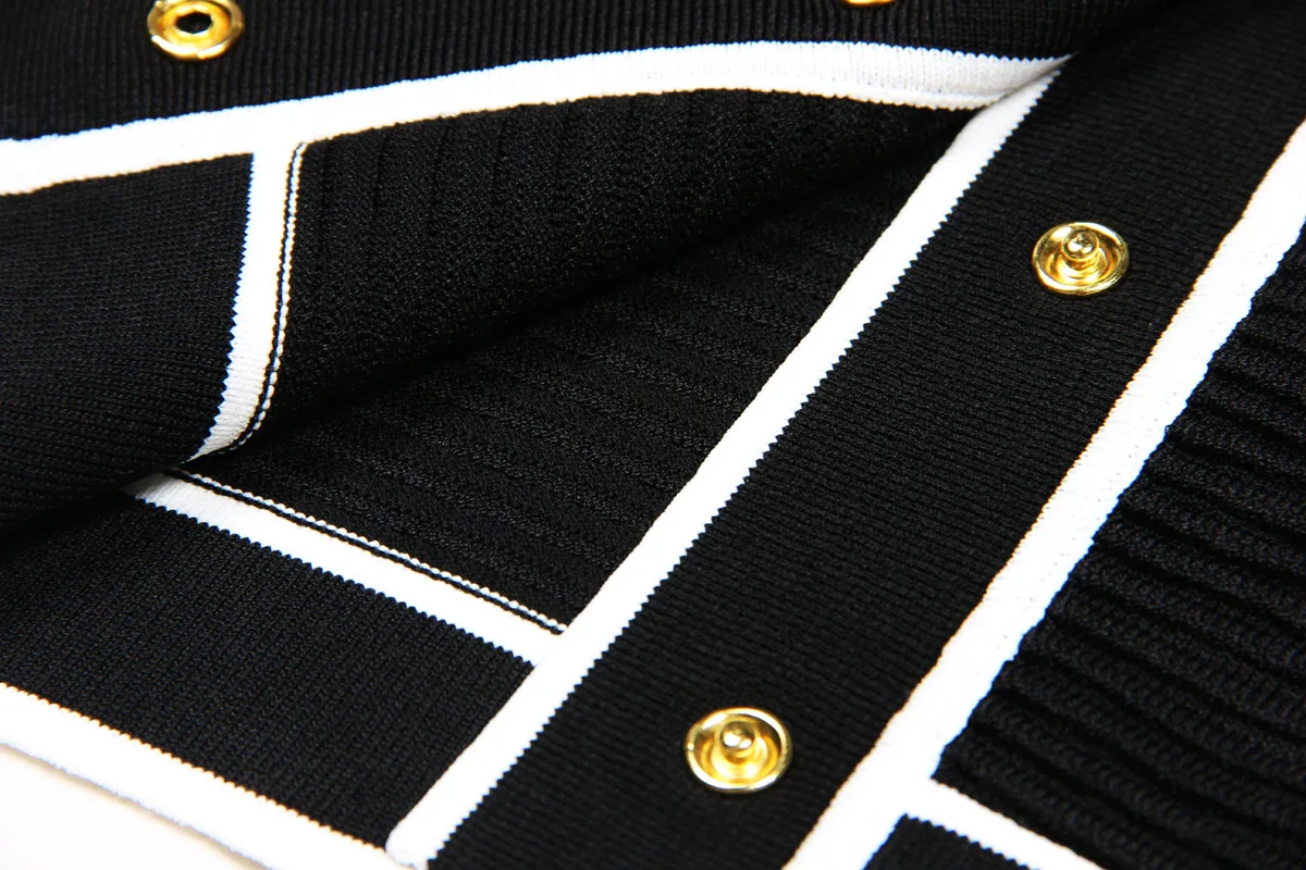 ZJYT Women Fashion Autumn Winter Knitted Sweaters O Neck Single Breasted Cardigans Coat Long Sleeve Color Block Knitwears Tops