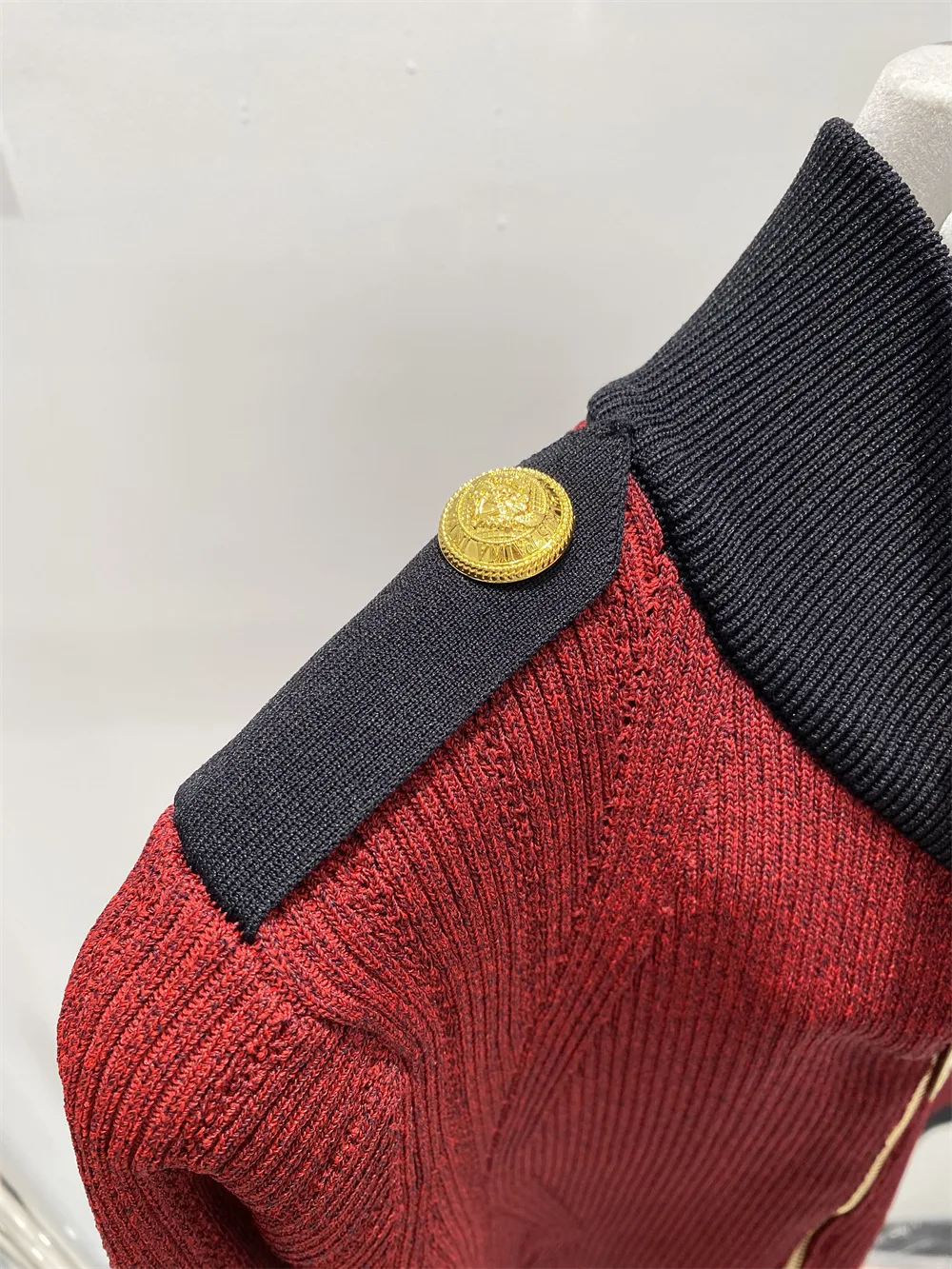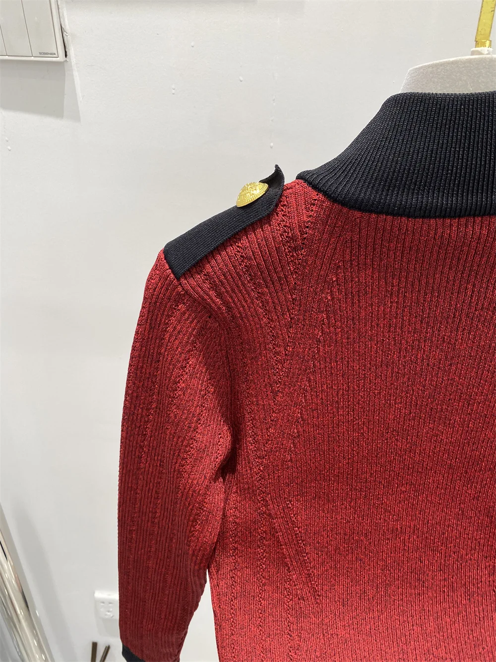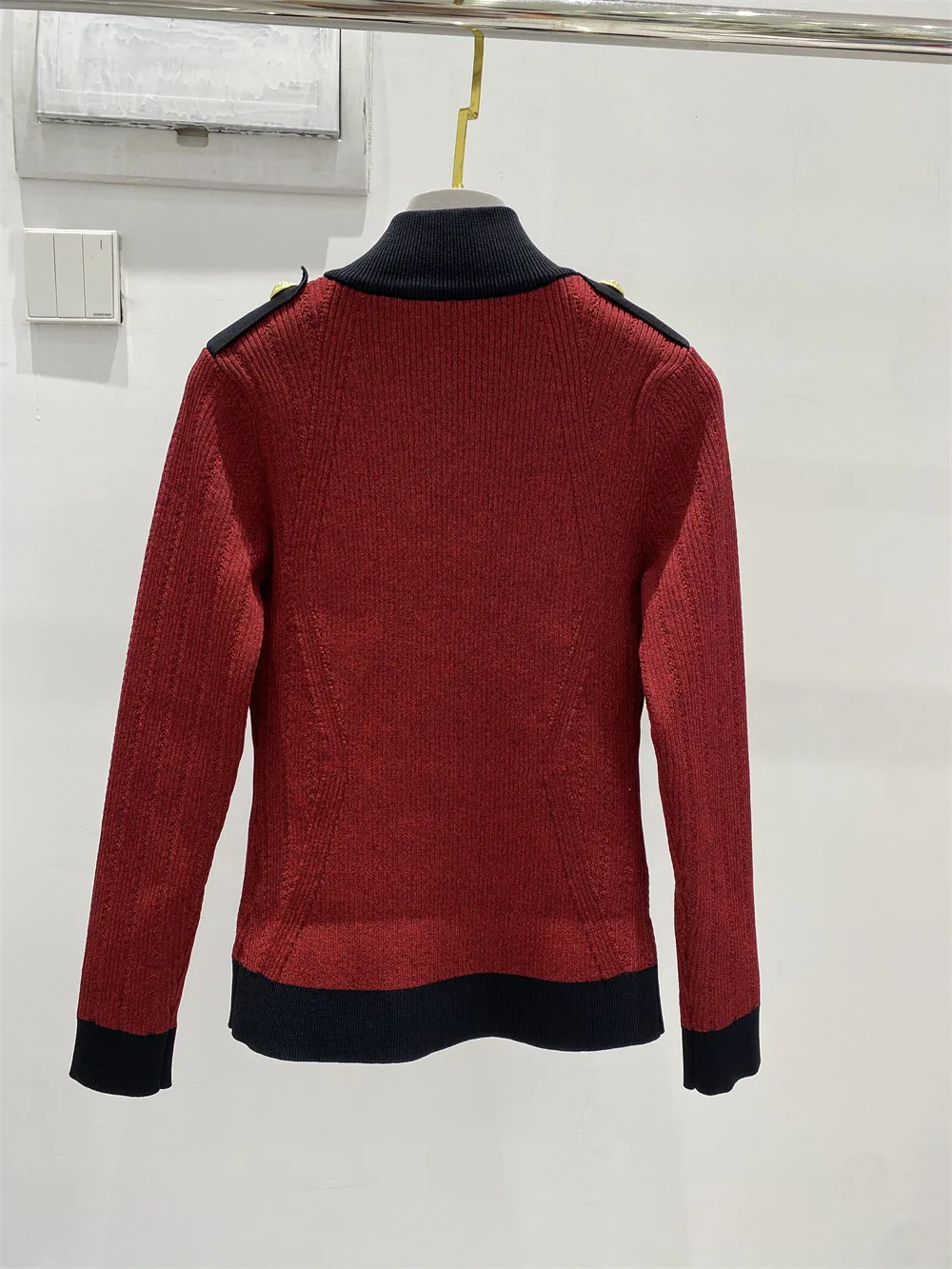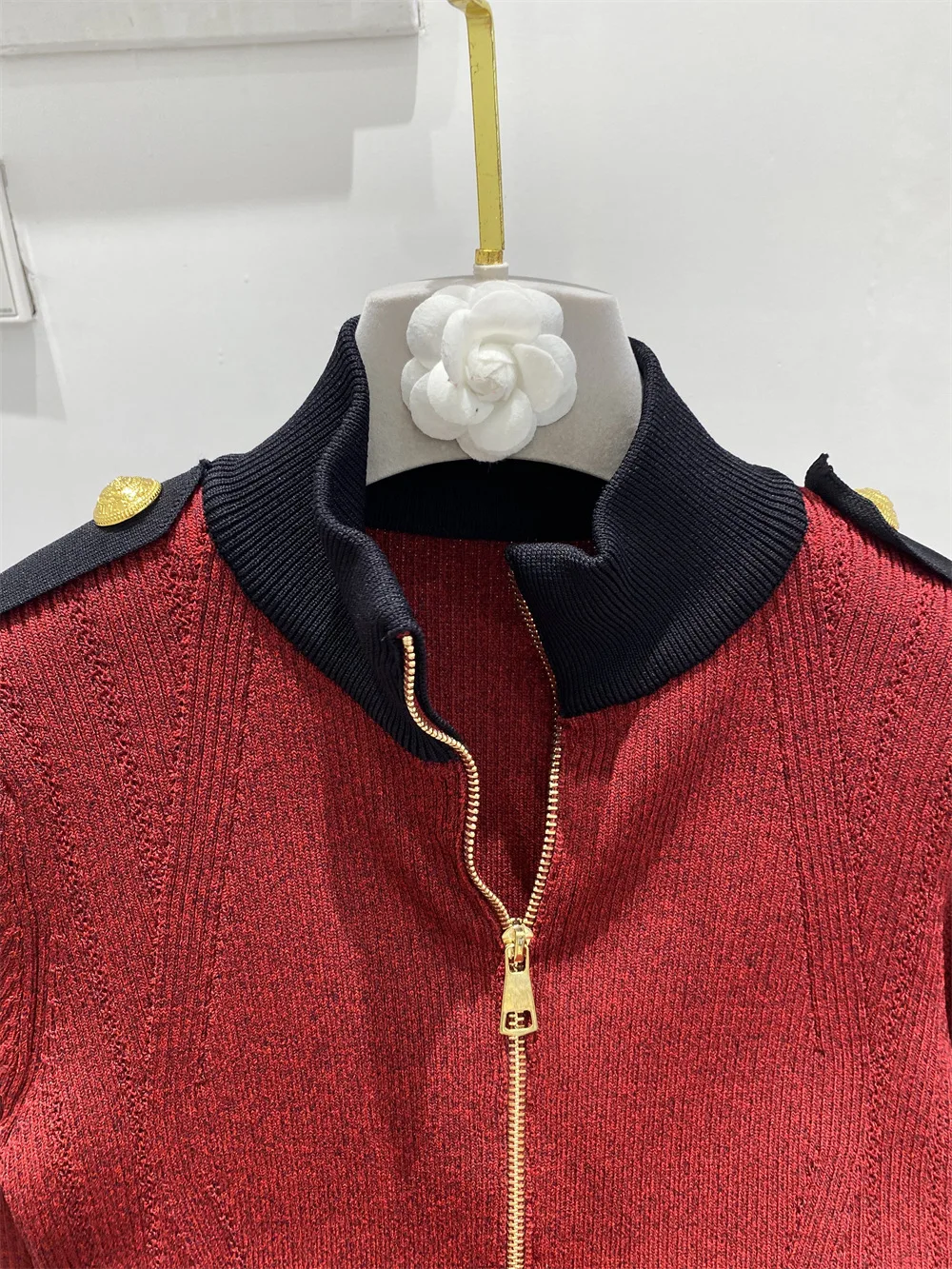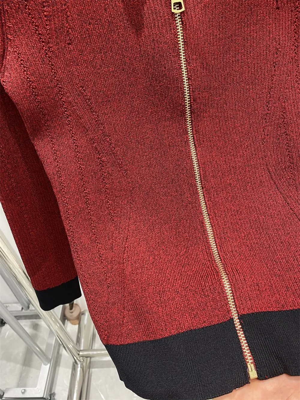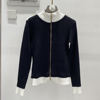 ZJYT Women Fashion Autumn Winter Knitted Sweaters Zipper Stand Collar Cardigans Coat Long Sleeve Color Block Knitwears Tops