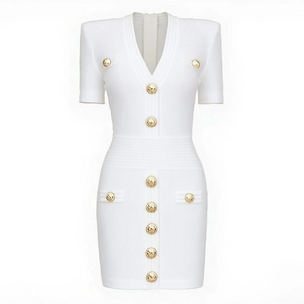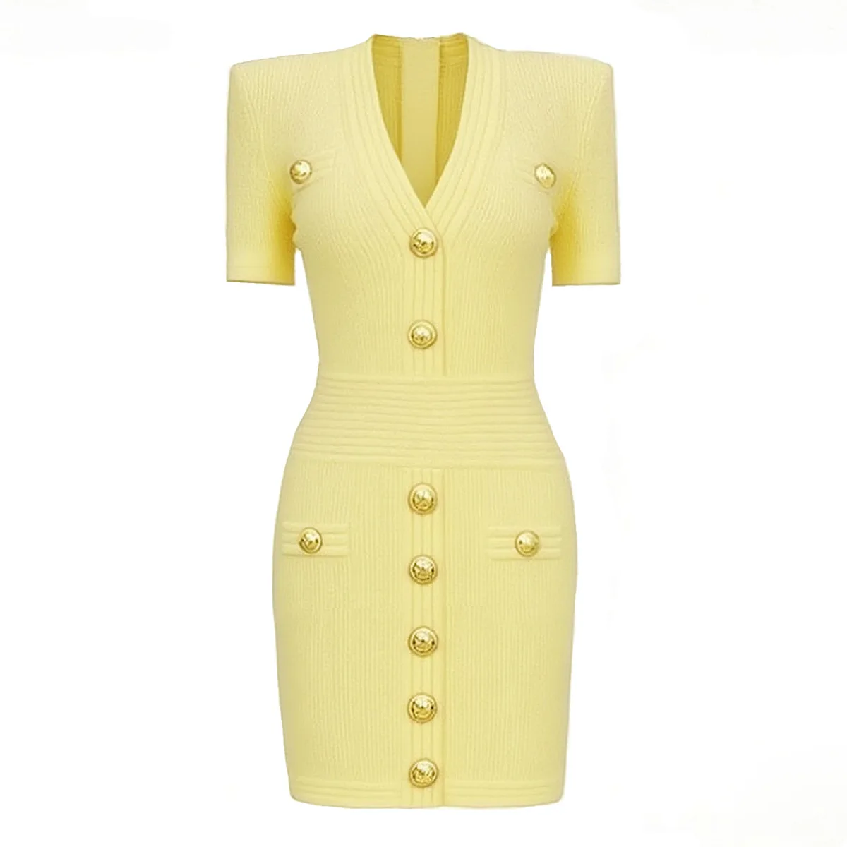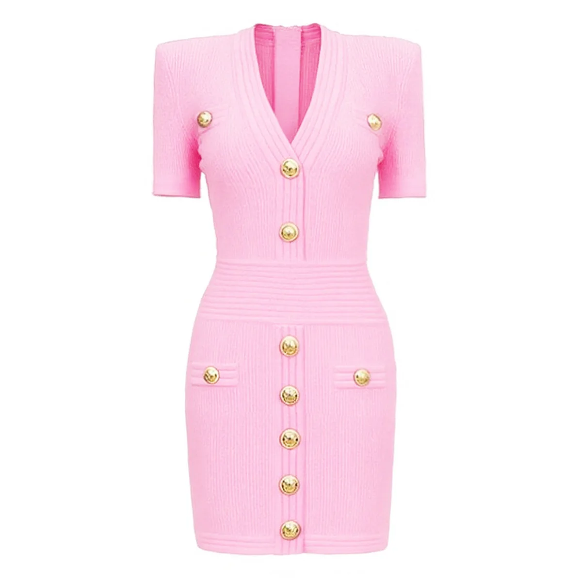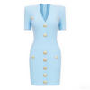 ZJYT Women Fashion Summer Sheath Bodycon Knitting Sweater Dress Short Sleeve V Neck Buttons Mini Party Dresses Female Vestidos