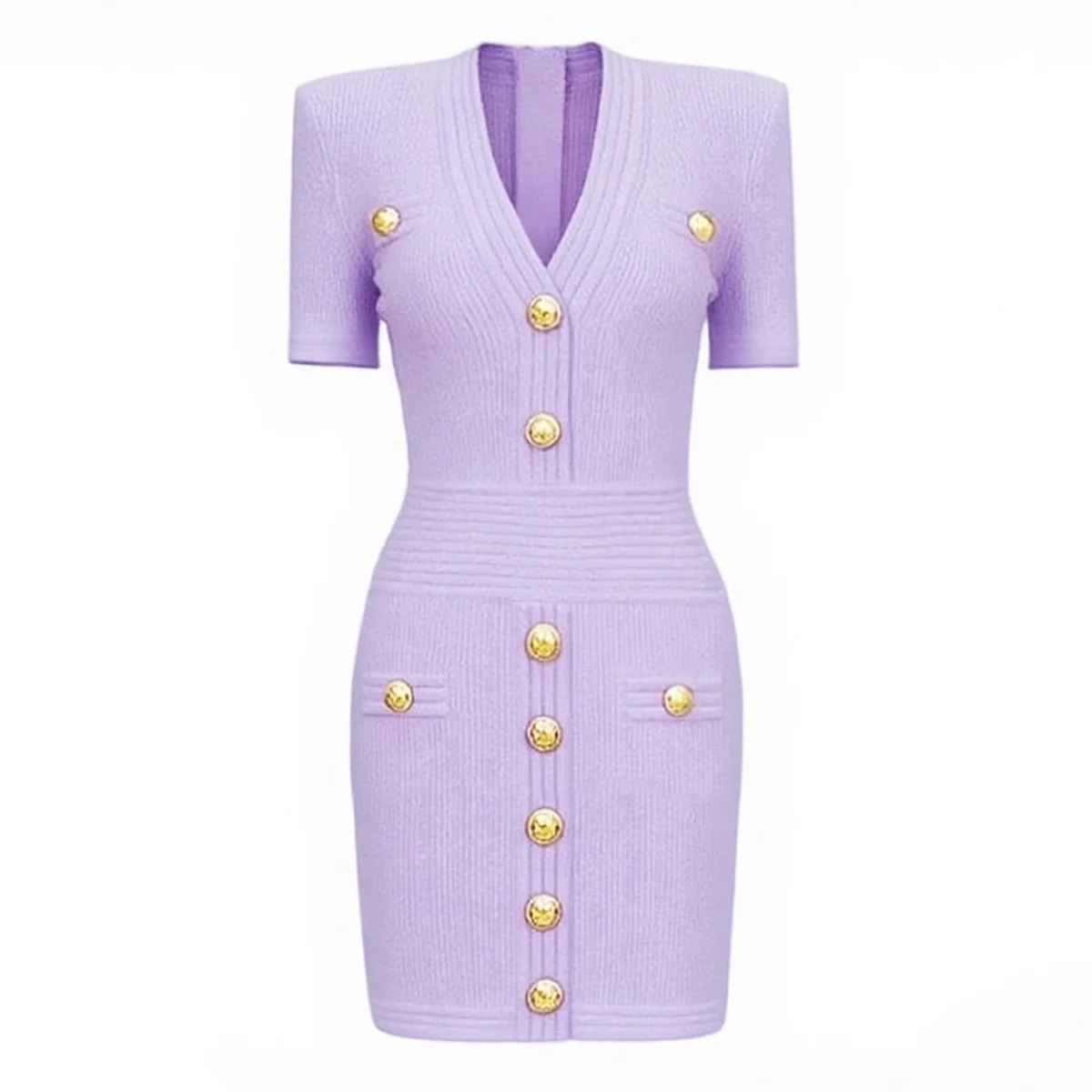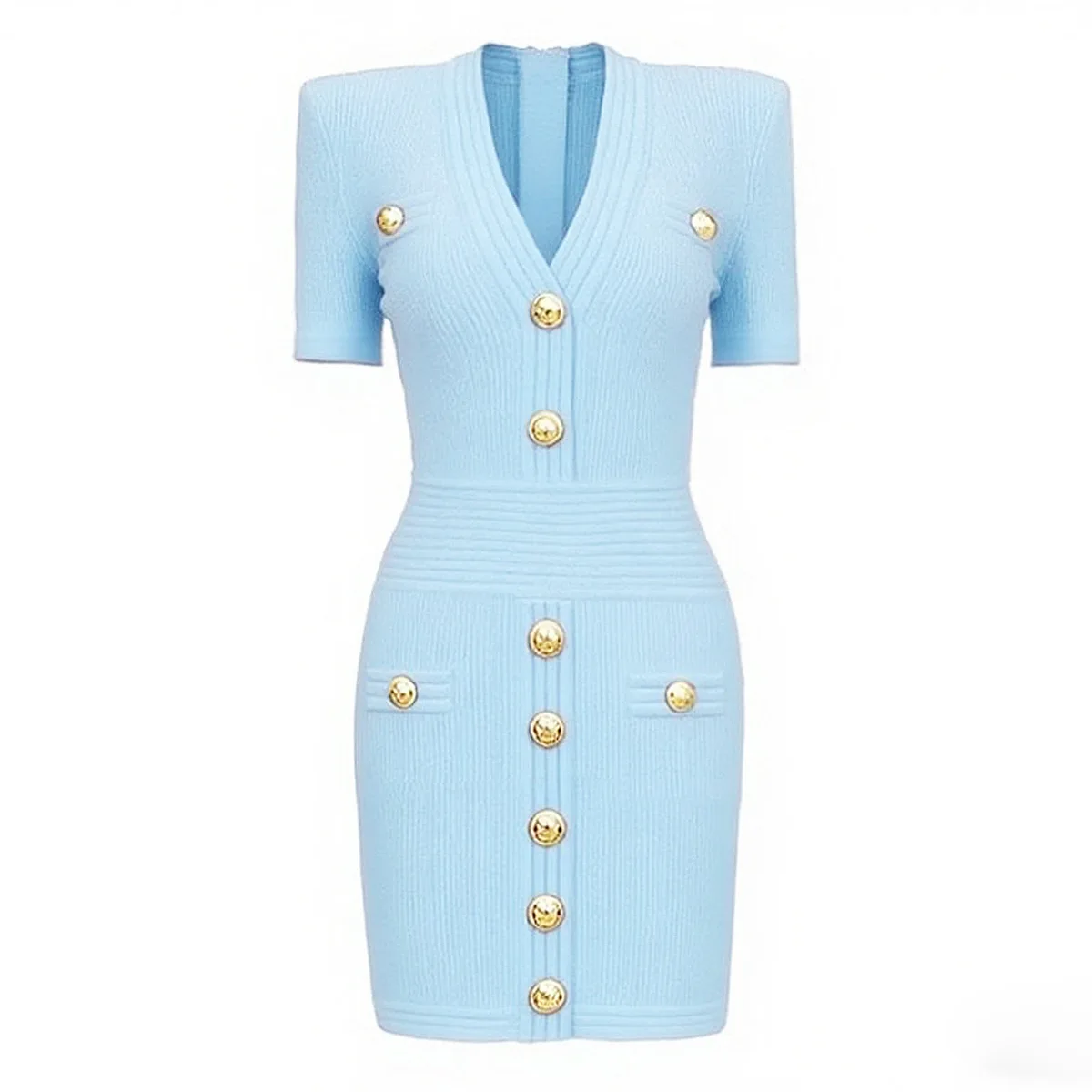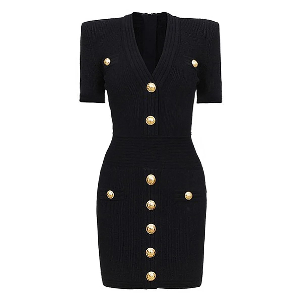 ZJYT Women Fashion Summer Sheath Bodycon Knitting Sweater Dress Short Sleeve V Neck Buttons Mini Party Dresses Female Vestidos