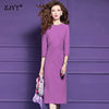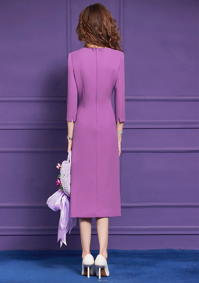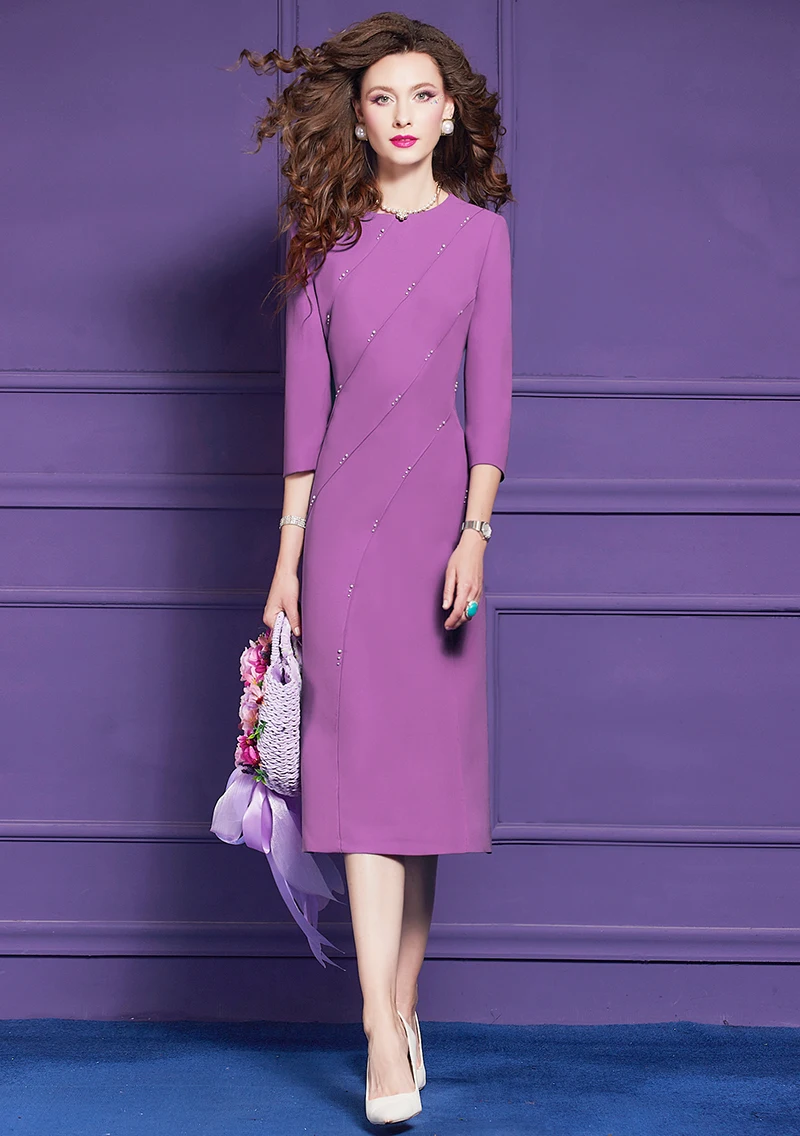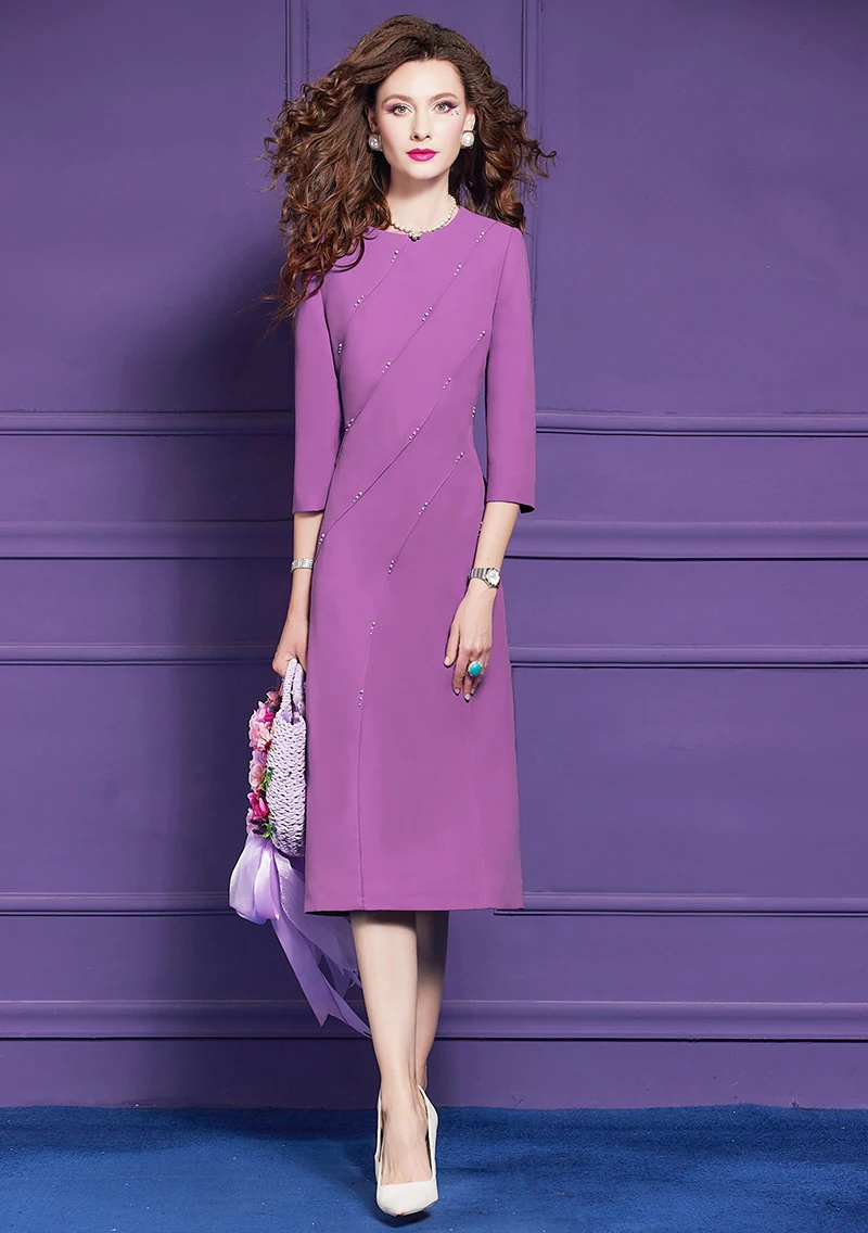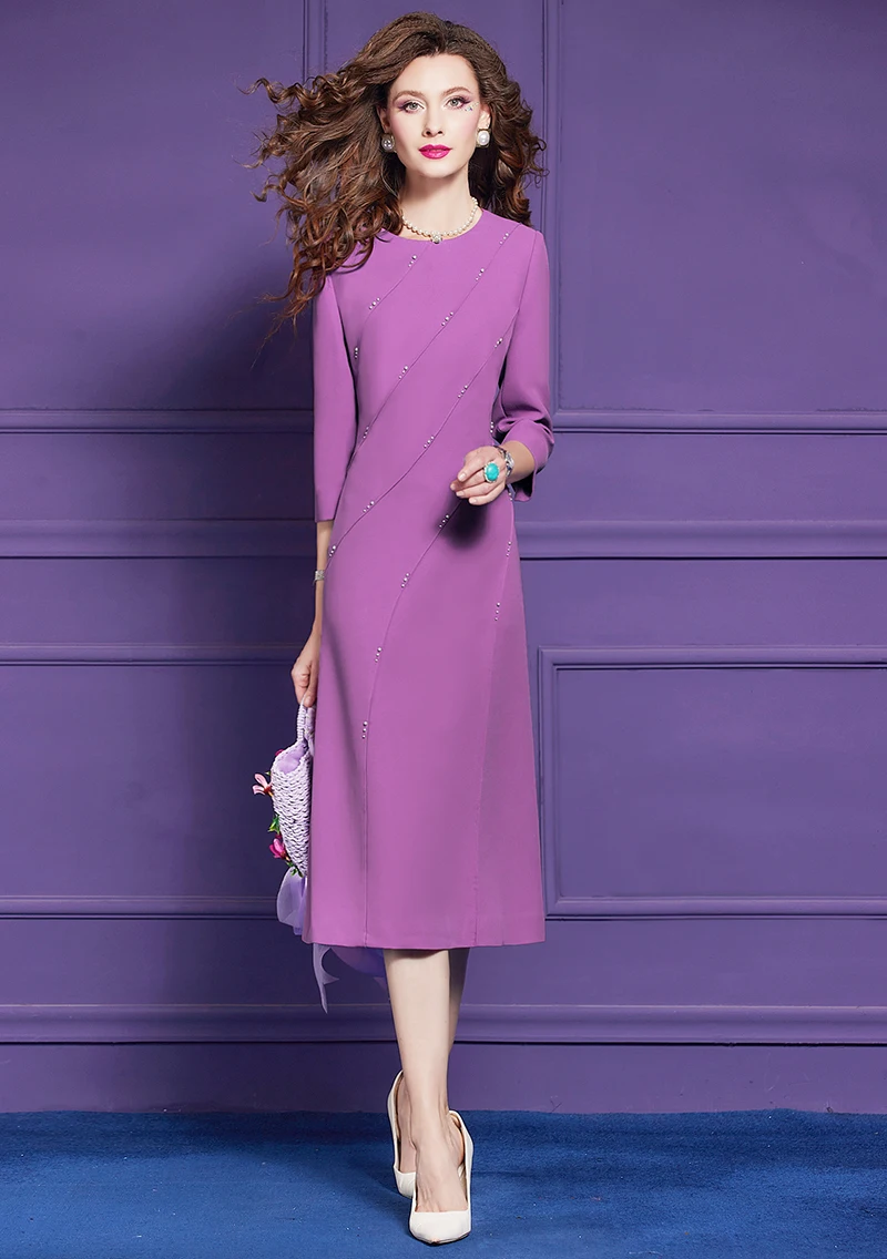 ZJYT Women’s Fashion Pearls Purple Midi Dress Three-Quarter Sleeve Plus Size Spring 2025 Designer Elegant Party Vestidos Lady