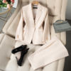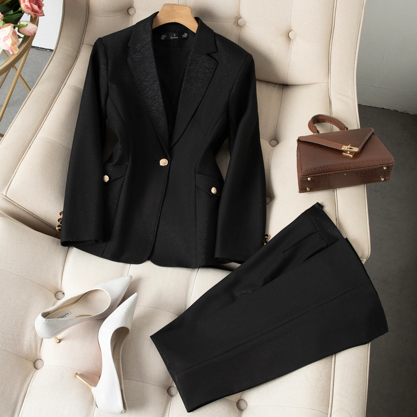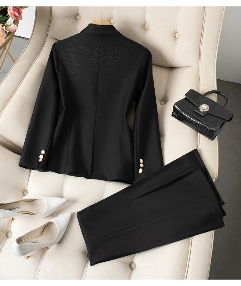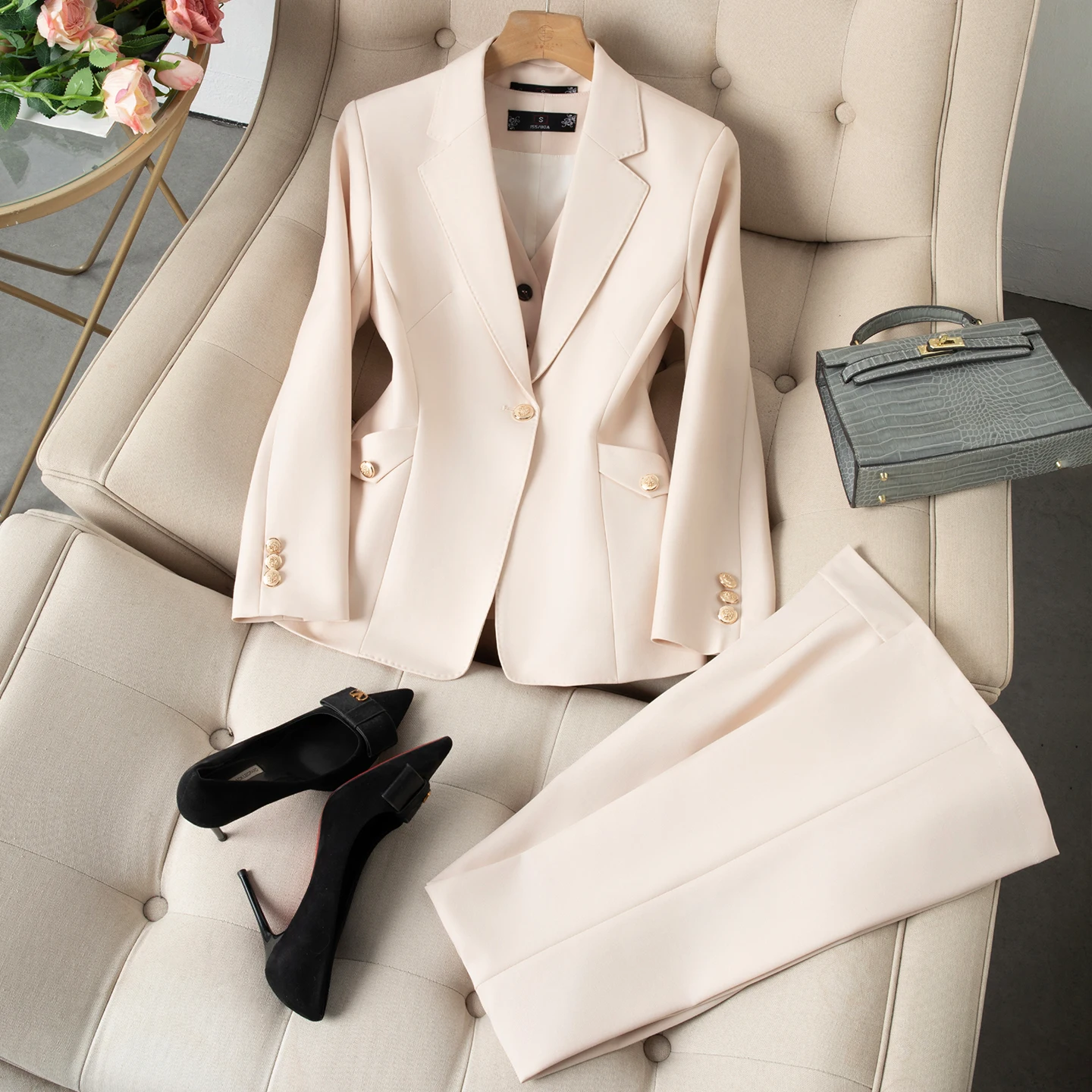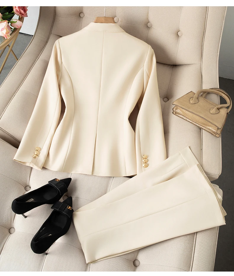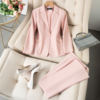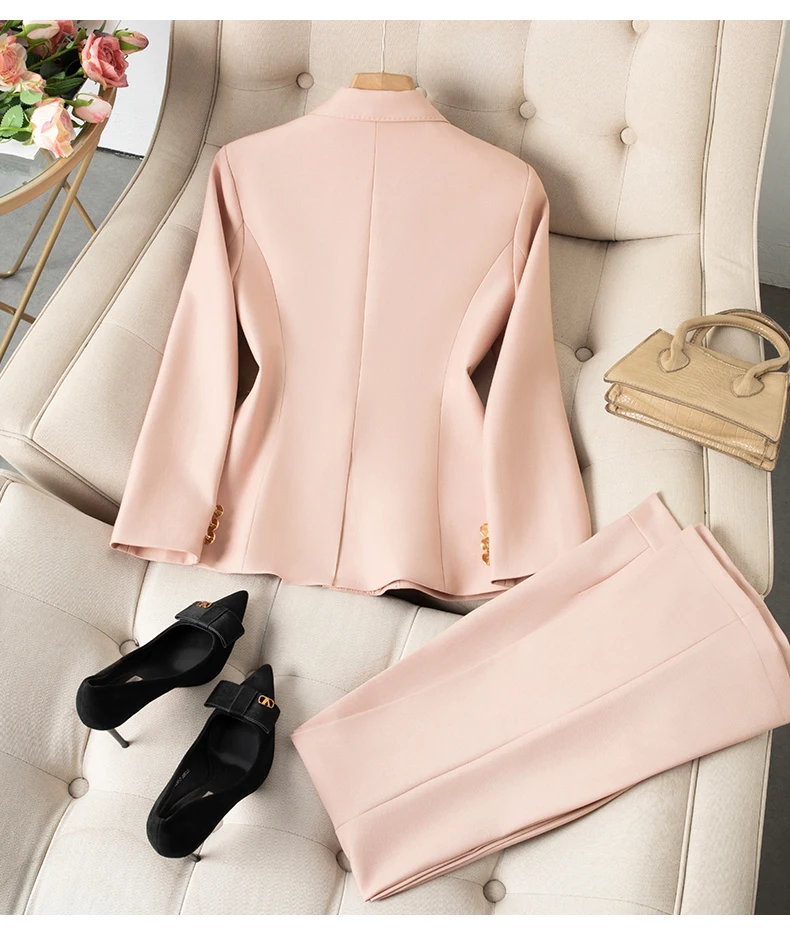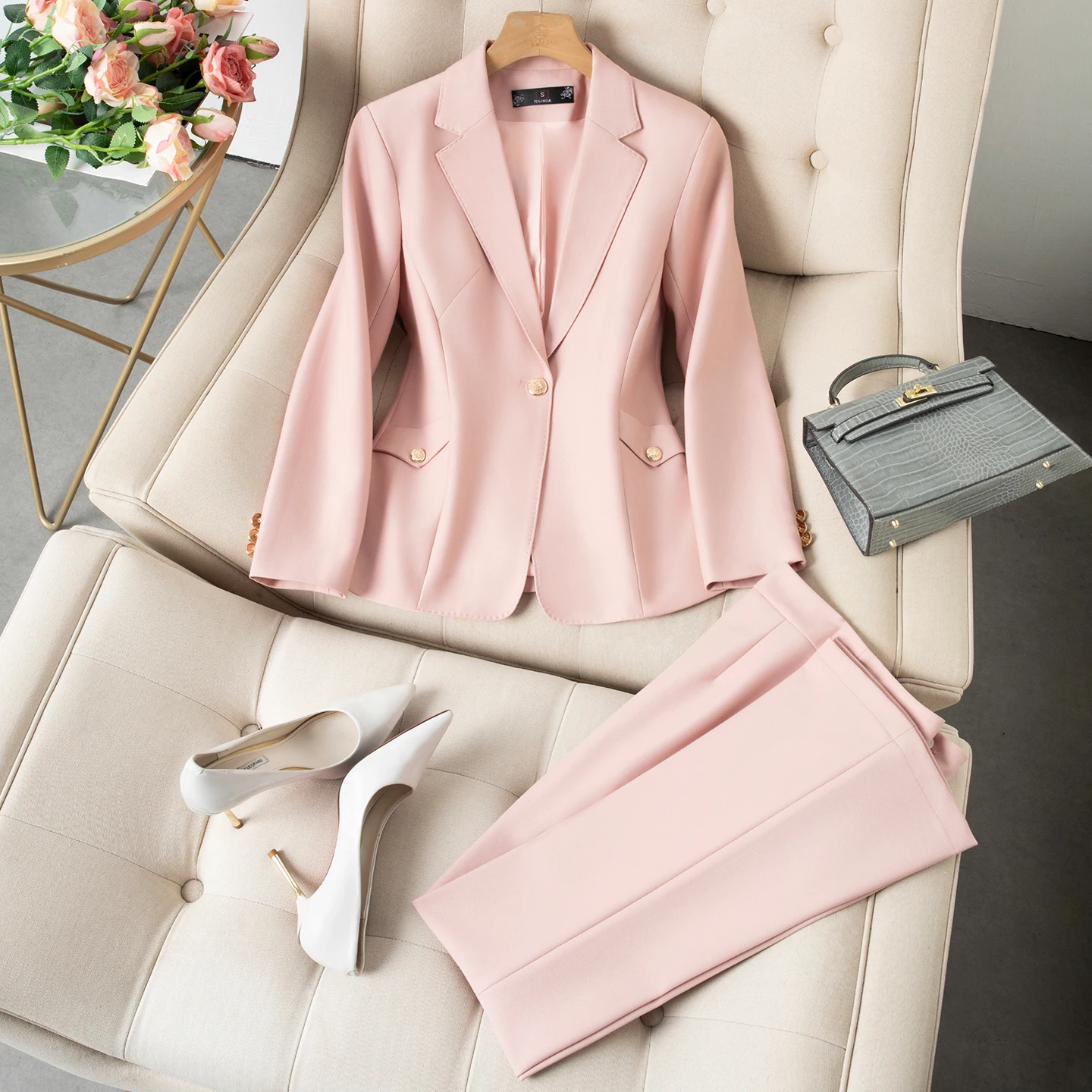 ZJYT Women’s Formal Classic Suit Clothes Woman Two Piece Outfit Elegant Chic Female Lady Blazer Pants Sets Pink Trousers Work