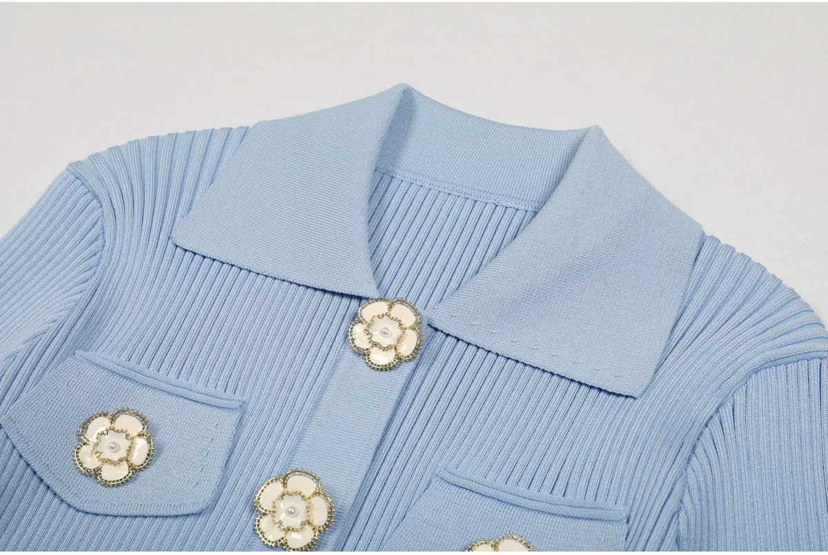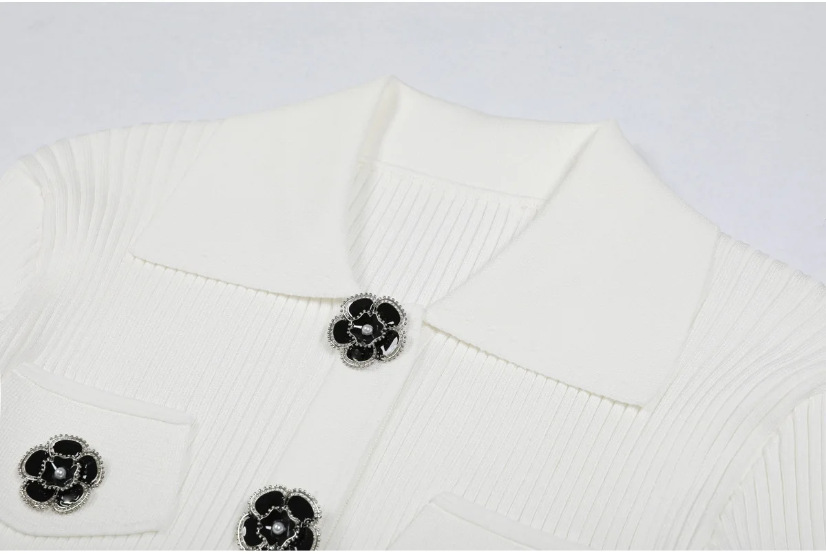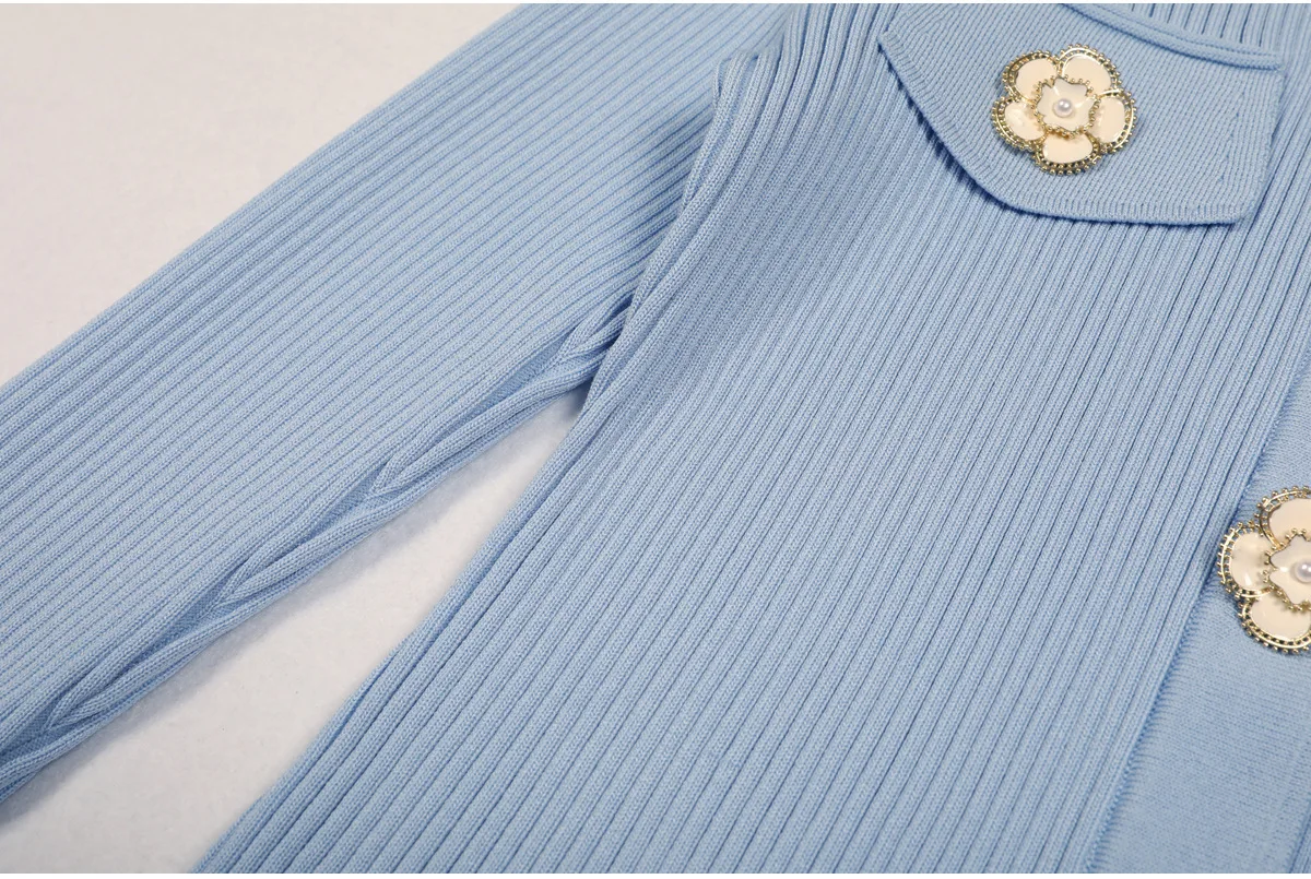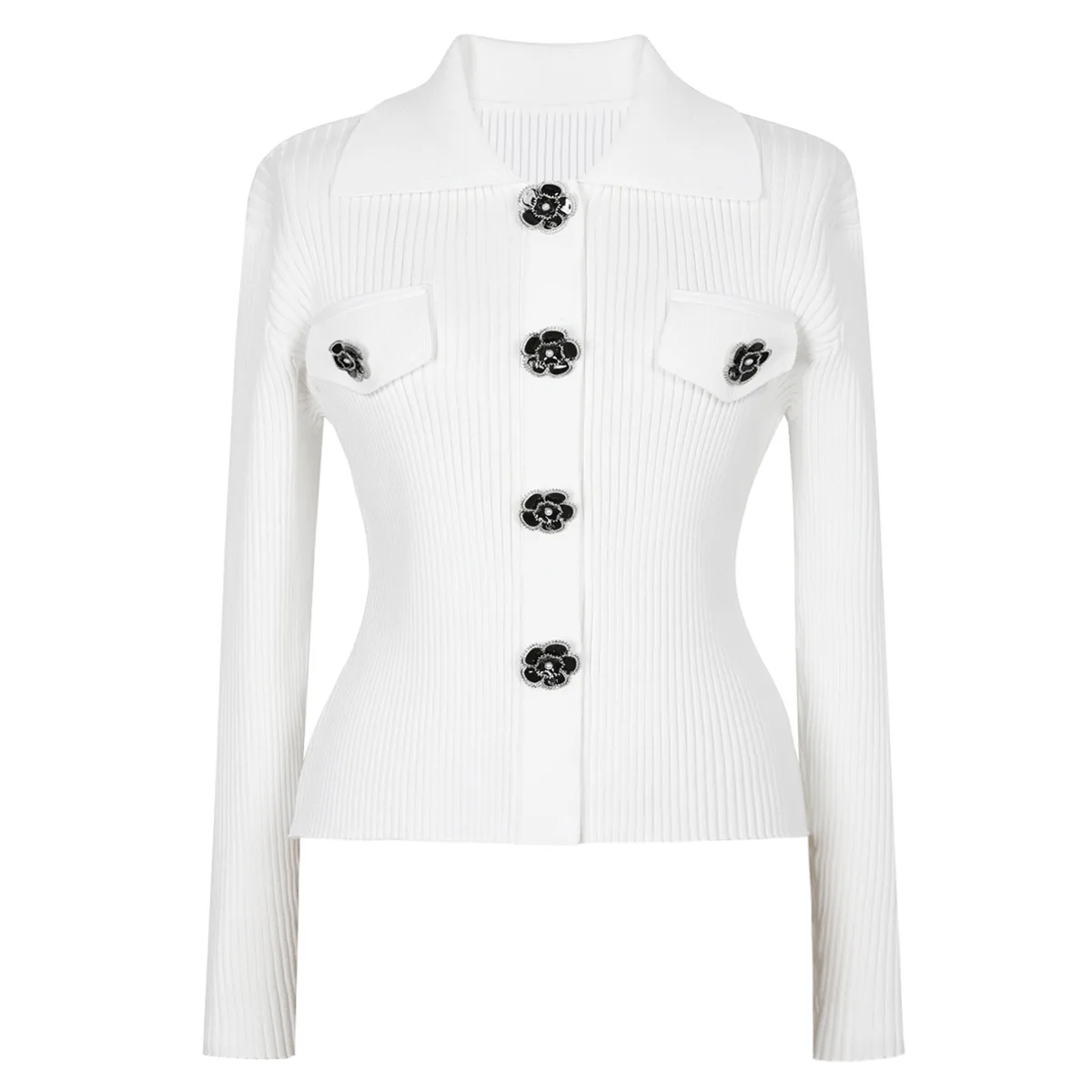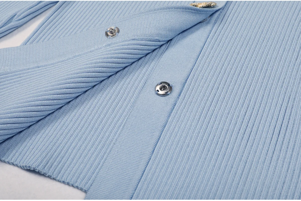ZJYT Women’s Long Sleeve Cardigan Sweater 2025 Spring Fashion Turn Down Collar Knitwear White Blue Jersey Tops Female