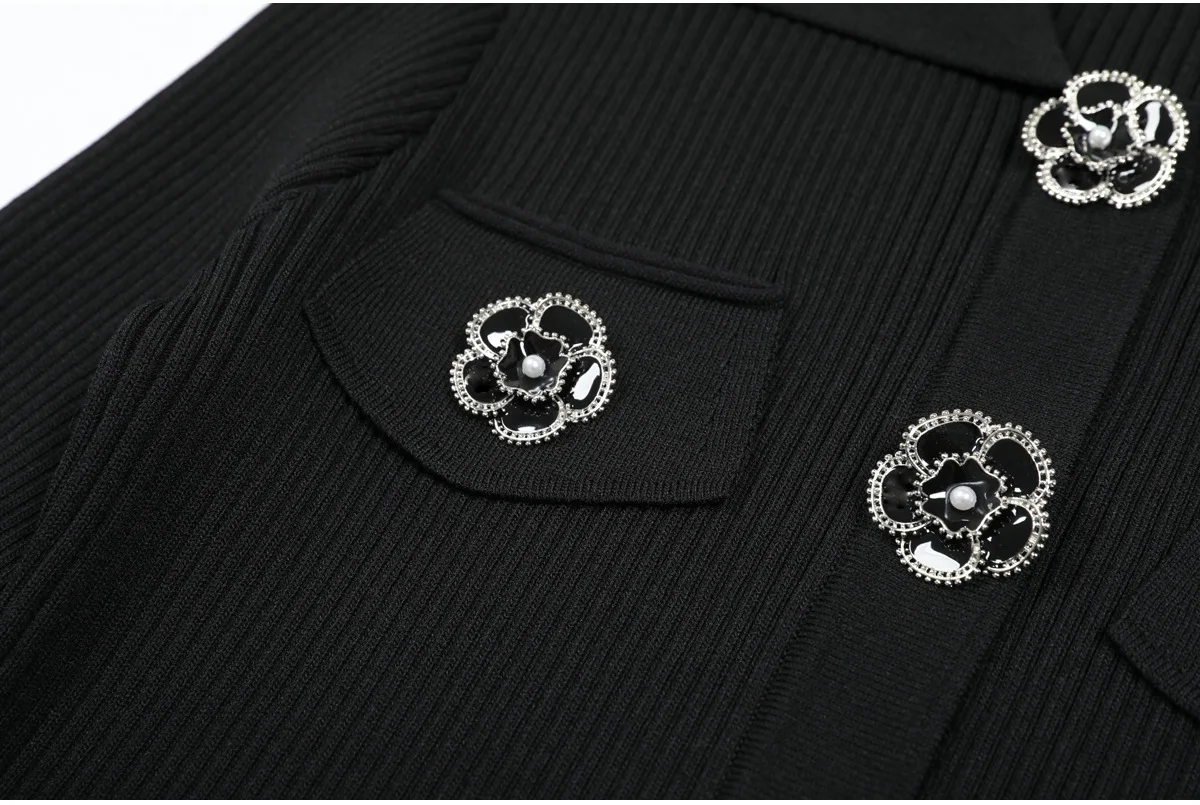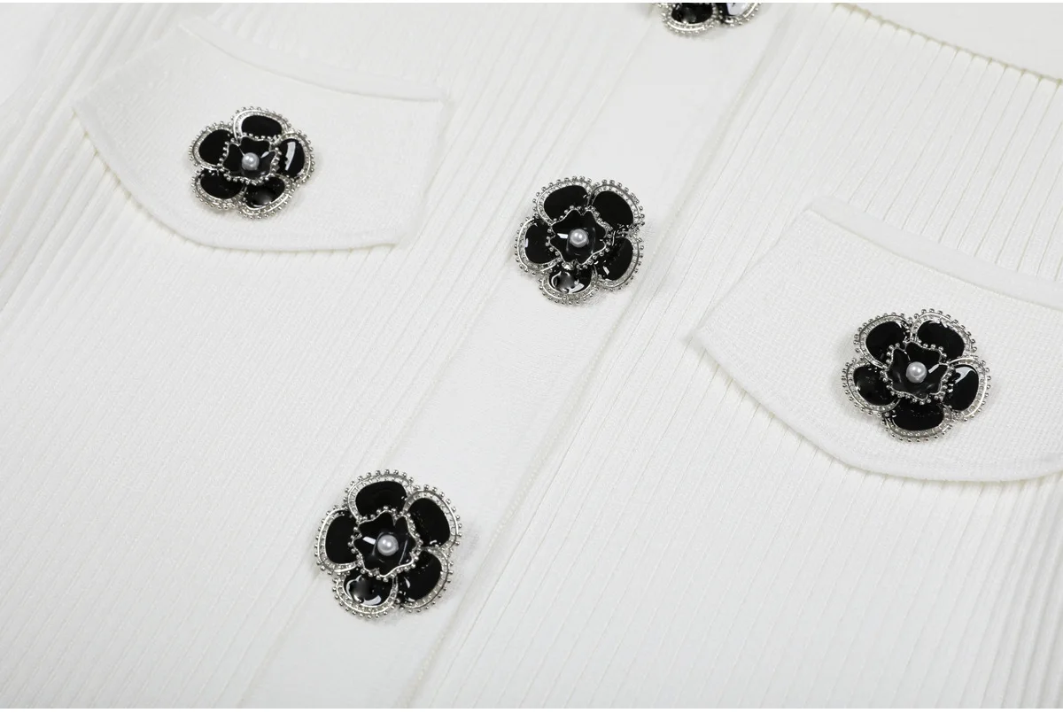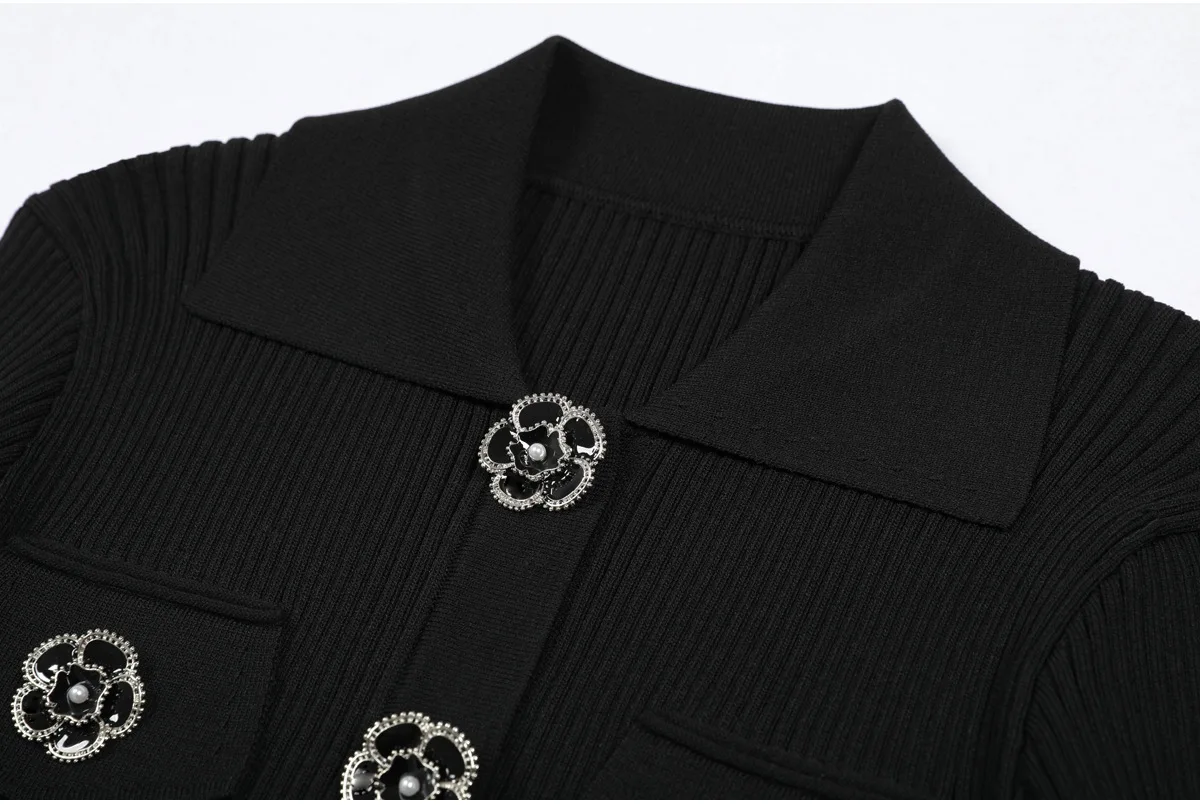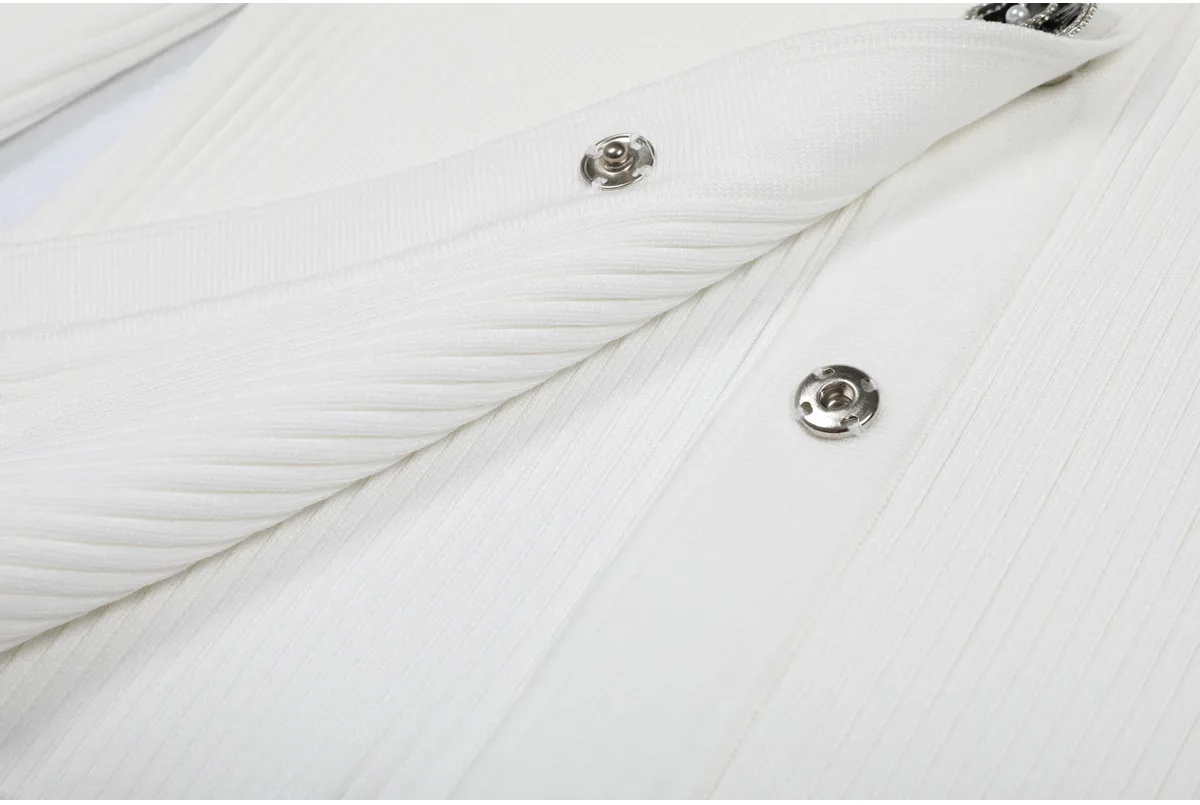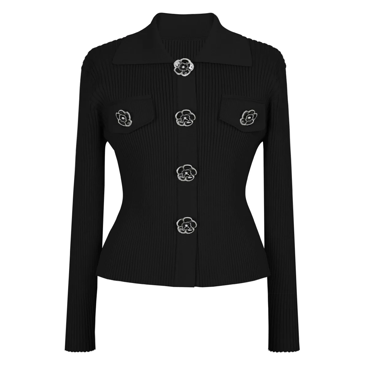 ZJYT Women’s Long Sleeve Cardigan Sweater 2025 Spring Fashion Turn Down Collar Knitwear White Blue Jersey Tops Female