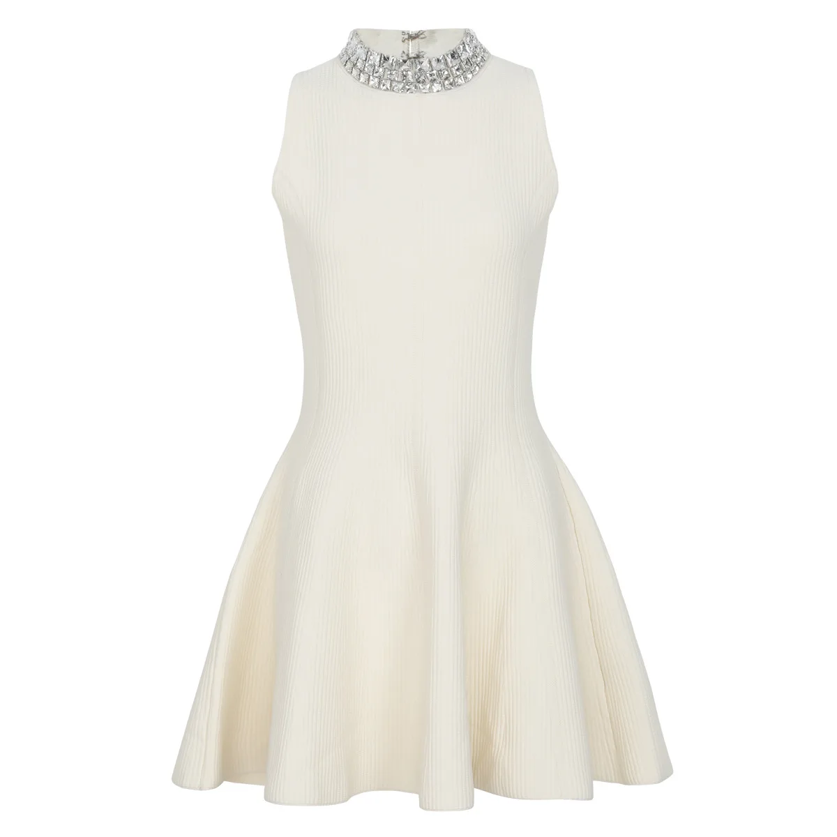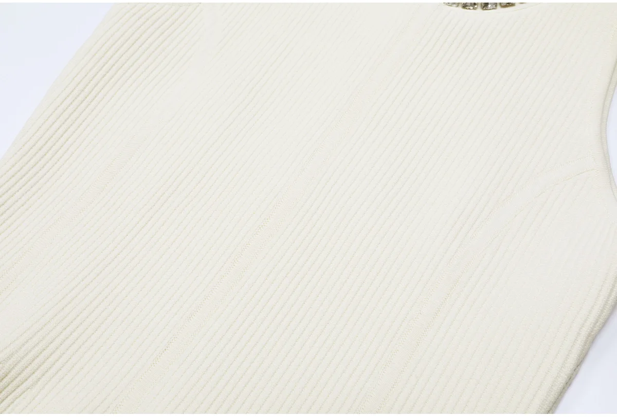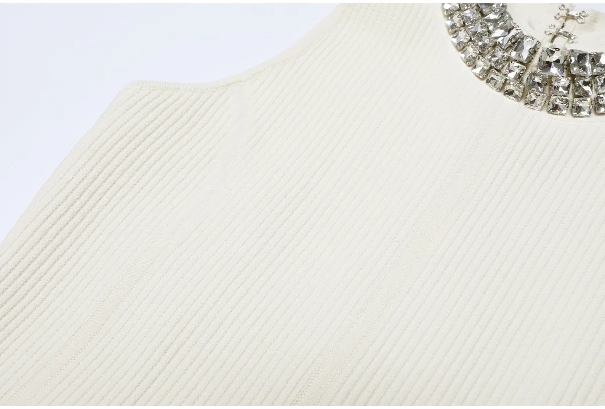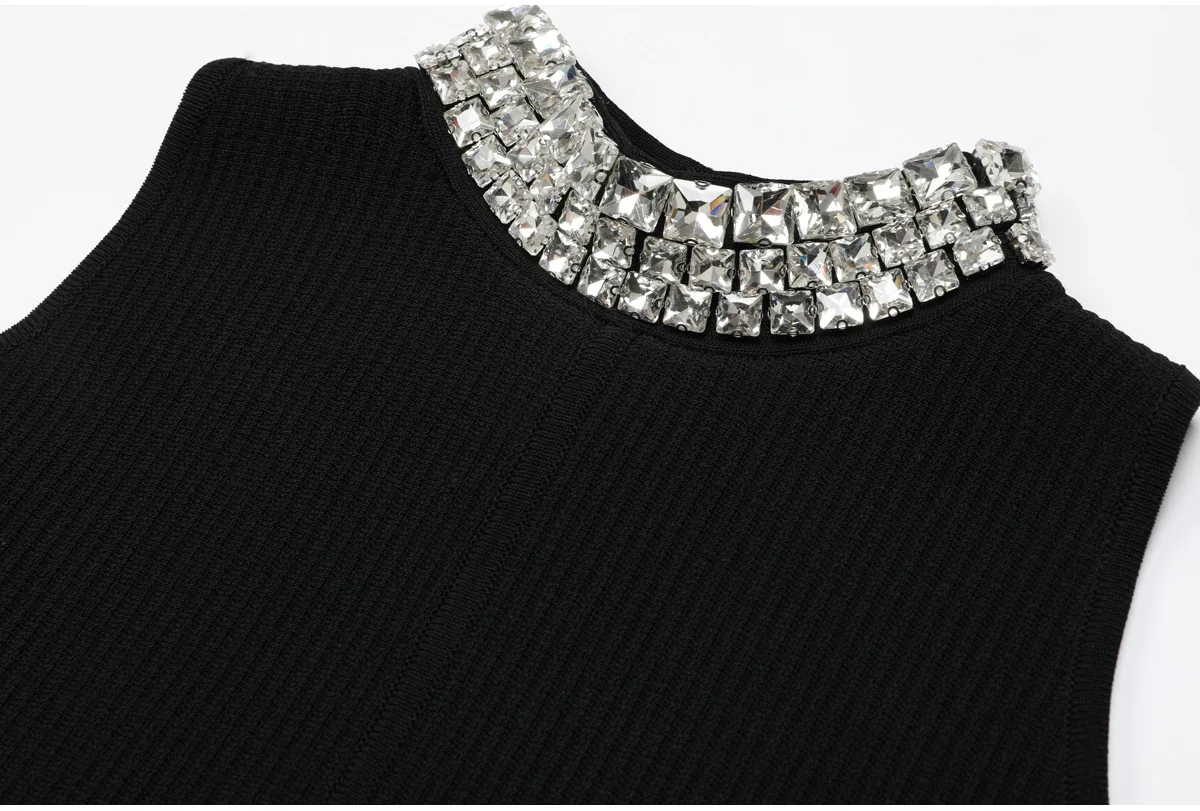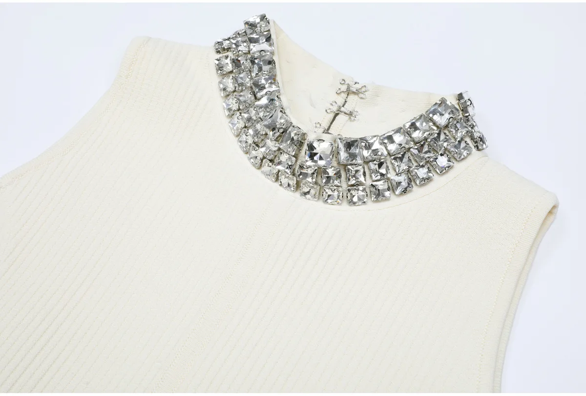 ZJYT Women’s Spring Summer Mini Knit Dress with Rinestone Elegant Sleeveless White Black Casual Cocktail Party Dresses Short